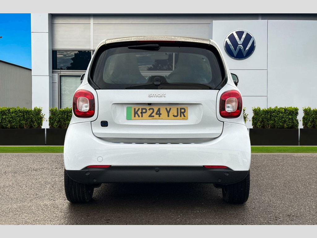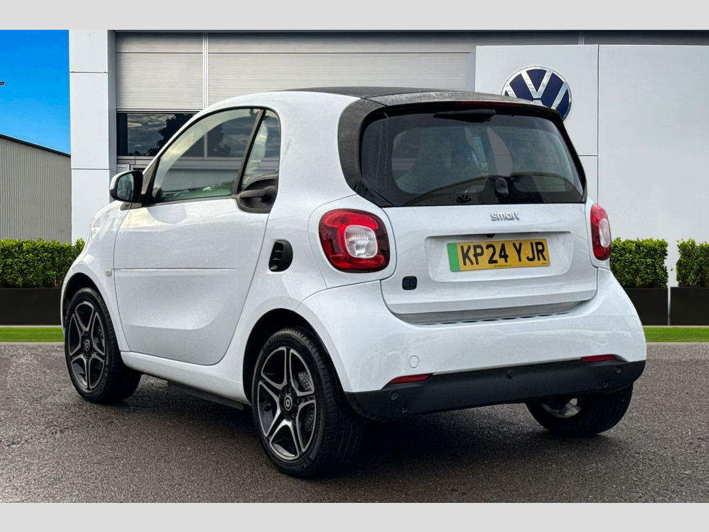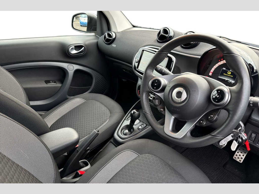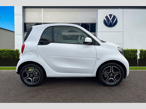 Have a look at this Smart Fortwo that is available to purchase at Wrexham Volkswagen. This Fortwo is finished in a white paintwork, which is complimented by the 16in alloy wheels to the side. Powering this Fortwo is a 17.6kWh battery that produces 81 BHP with automatic transmission, and has a battery range of up to 81 miles*. Charging is convenient, with a full charge at home using a 7kW charger taking approximately 3 hours and 46 minutes. Key features of this Fortwo include the halogen headlights that keep the roads well lit, cruise control for maintaining a steady speed, and rear parking sensors and camera that assist with maneuvering.