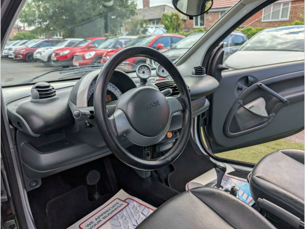 Smart fortwo 0.7 City Passion 3dr – Superb Condition | Low Mileage | Full Service HistoryCLICK & COLLECT AVAILABLE – Includes Fresh Service, A/C Regas, MOT, and WarrantyWe are delighted to offer this fantastic example of this SMART FORTWO LEFT HAND DRIVE!Great little runner - Automatic. Full Sunroof!Imported from Spain and shows Kilometres on the dashboard (hence mileage discrepancy)✅ Full Service History✅ Mechanical Inspection Report Included✅ Minimum 6 Months MOT✅ Warranty Included✅ HPI Clear✅ Fully Valeted✅ Engine & Gearbox Fully Inspected by On-Site MechanicsWhy Buy from Liv Motors?We’re a family-run business with a friendly, experienced team of customer service advisors and qualified mechanics on-site. When you purchase from us, you’re not just buying a car – you’re investing in peace of mind.We Offer:???? Part Exchange Welcome????️ Service Plans Available????️ Comprehensive WarrantyTest Drives Available | Contact Us Anytime with Your Queries – We’re Here 24/7!???? Direct Line: 07837 447 335???? Address: Liv Motors, Poppythorn Lane, Prestwich, Manchester, M25 3BS???? Opening Hours: 9:00 AM – 6:00 PM Daily???? After 6 PM – Appointments Only. Air Bag Driver, Air Bag Passenger, Air-Conditioning, Anti-Lock Brakes, Central Door Locking, Electric Windows (Front), Electronic Stability Programme, Head Restraints, Immobiliser, In Car Entertainment (Radio/Cassette), Mirrors External, Power Socket, Softouch, Speakers, Tridion Safety Cell in Silver, Upholstery Cloth. Full service history