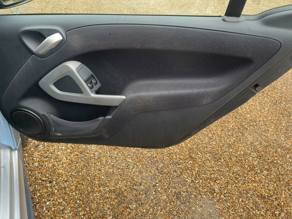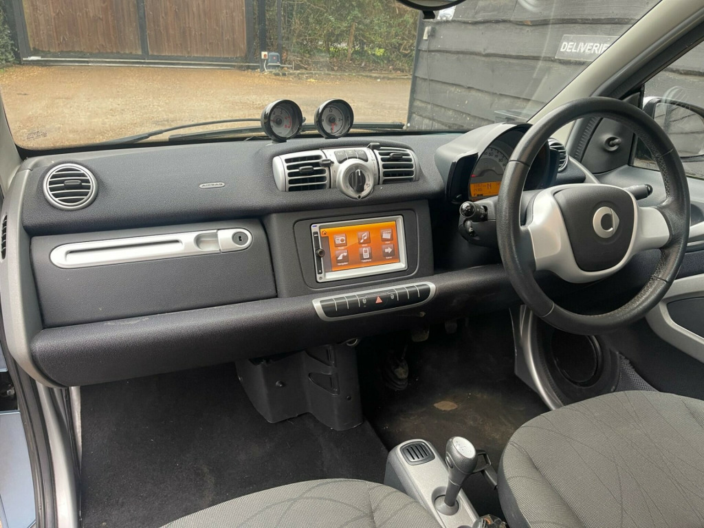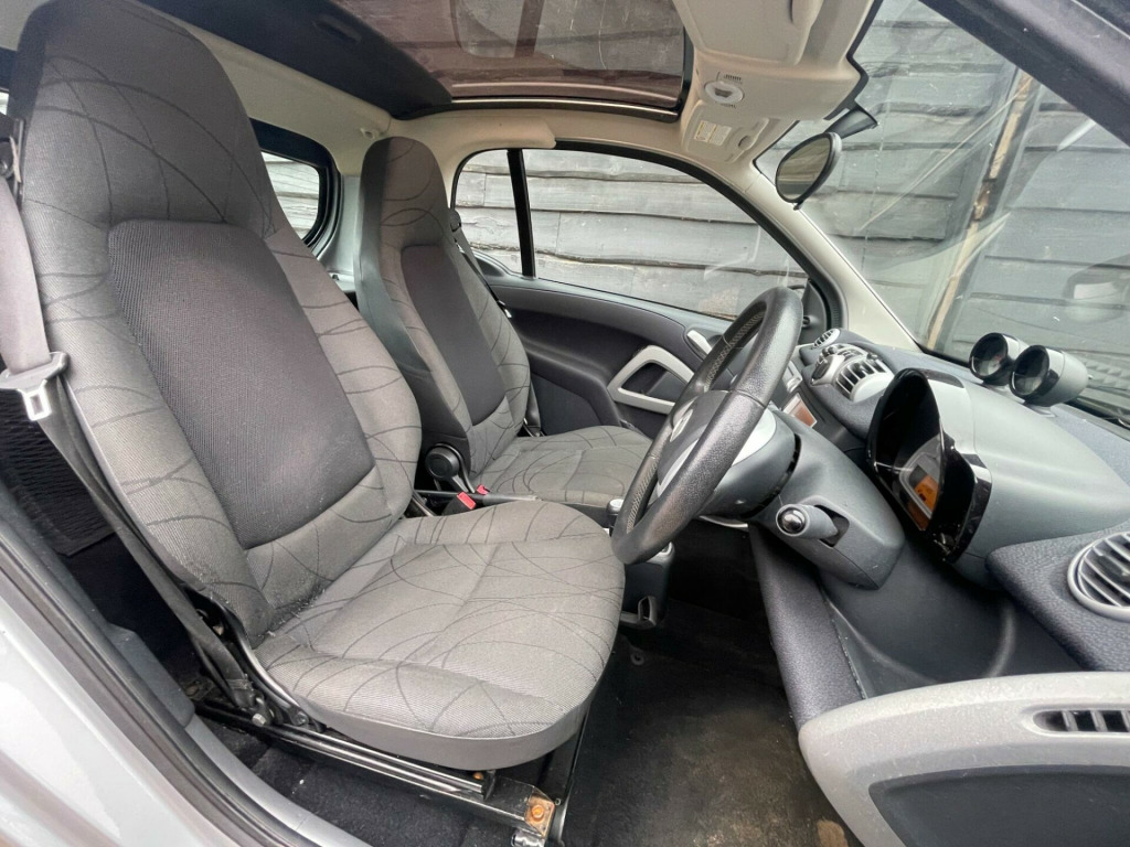Discover this exceptional 2013 Smart Fortwo CDI Passion, boasting incredibly low mileage of just 33,000 miles, a testament to its careful ownership by only two previous keepers. This compact city car is powered by an efficient 0.8L Diesel engine, offering remarkable fuel economy of up to 86 miles per gallon and low CO2 emissions, making it an environmentally conscious choice. The Passion trim level ensures a comfortable and convenient driving experience, featuring desirable amenities such as air conditioning with automatic temperature control, a Bluetooth hands-free system for seamless connectivity, and luxurious leather heated seats for those cooler journeys.Adding to its appeal, this Smart Fortwo includes a stunning panoramic glass roof with an integrated sunblind, allowing you to enjoy an open and airy cabin. Whether you prefer the fixed panoramic sunroof or the option for an opening panoramic roof, this car provides a delightful sense of space. These features, combined with its outstanding fuel efficiency and low running costs, clearly set this Smart Fortwo apart from other vehicles in its class, offering a unique blend of practicality, comfort, and economy for urban driving. volt socket with cover, 15in 12-spoke alloy wheels, 2 speakers, 2spoke leather steering wheel, air conditioning with automatic temperature control, airbag - full size driver, airbag - full size passenger, anti-lock braking system with electronic brake force distribution, audio system navigation-multimedia highline, automatic hill start assist on uphill slopes, aux-usb, bluetooth hands-free system, central locking with radio remote control, crash elements at front and rear, crash sensor auto switch-on of hazard warning lights, dashboard in leather optic black, esp - electronic stability programme with hill start assist, electric tailgate release, electric windows, heated rear window, leather heated seats, luggage compartment cover - retractable, paint- solid- solid roof, panoramic glass roof with sunblind, panoramic roof, pollen and dust filter, rds radio with 6.5 touchscreen display, tridion safety cell door mirror caps & front grille- black, tridion safety cell door mirror caps & front grille- silver, tridion safety cell, tridion safety cell in silver, ipod interface
