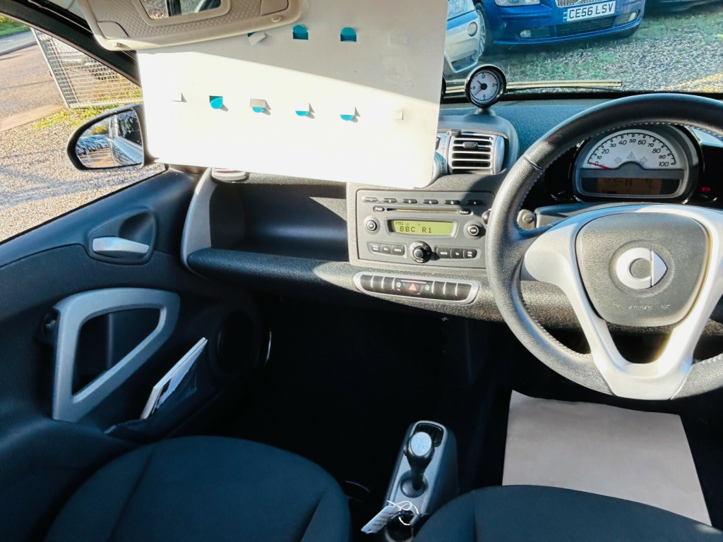 2010 Smart Fortwo CDI Auto- Very low mileage at just 52k with service history - Mot June 2026- Low tax very economical - Part Exchange Welcome in 6spoke alloy wheels, tridion safety cell door mirror caps & front grille- black, tridion safety cell door mirror caps & front grille- silver, 2 speakers, smart radio nine radio & cd player, paint- solid- solid roof