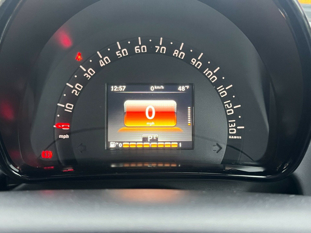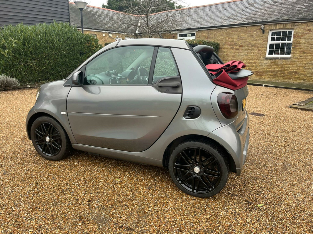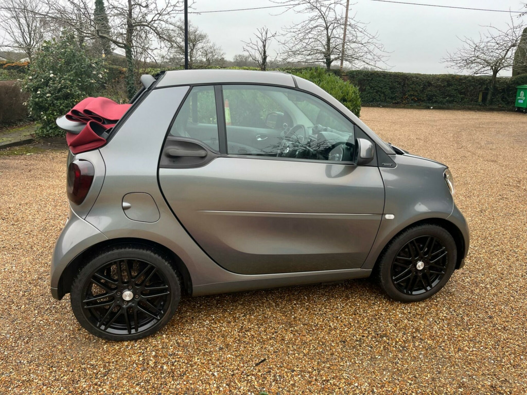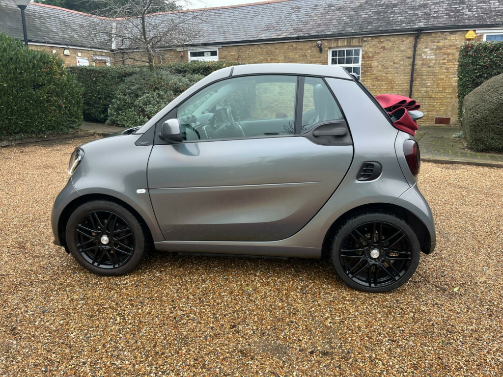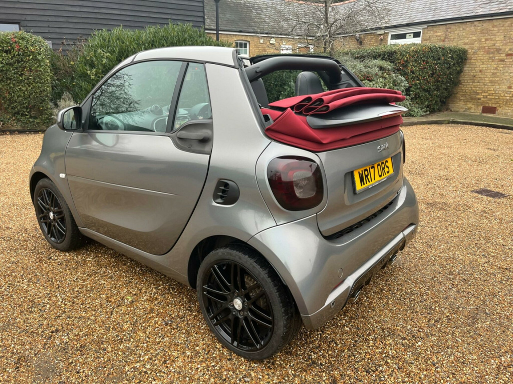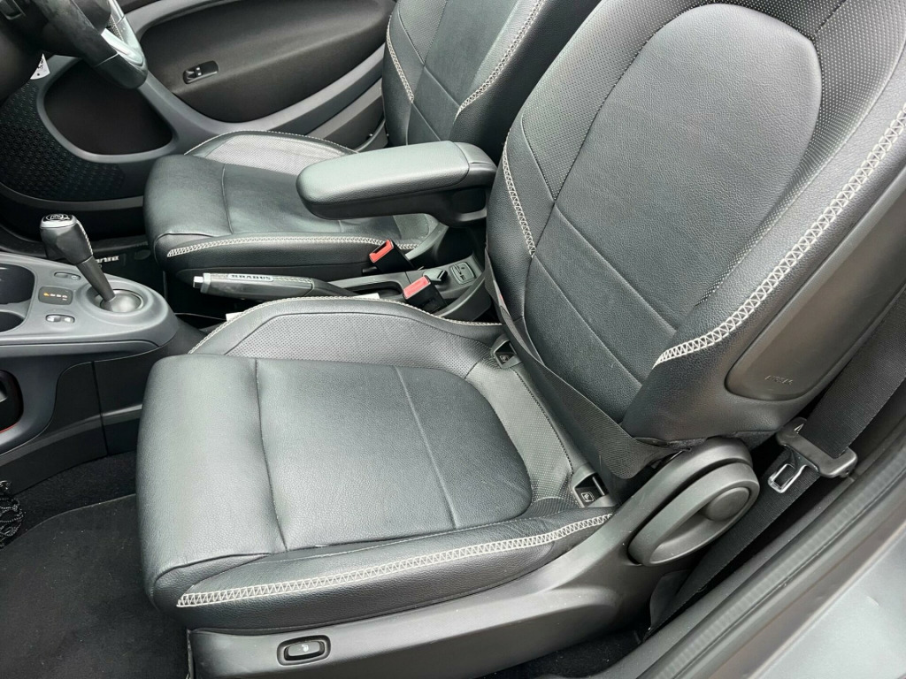 This 2017 Smart Fortwo T BRABUS Xclusive boasts a full service history and an MOT valid until August 2026, offering excellent peace of mind. This stylish model features a striking Graphite Grey Matt Paint Tridion Safety Cell and a vibrant Electric Tritop Fabric Soft Top in Red with a Grey lining. Under the bonnet, you'll find a 0.9L Petrol Engine compliant with Euro 6 emissions standards. The BRABUS Xclusive trim level ensures a premium experience, enhanced by the Cool and Audio Package with automatic climate control and Bluetooth connectivity. Further adding to its appeal are the Premium Plus Equipment Line, including automatic headlights, rear camera and parking sensors, and heated seats for both the driver and front passenger.This Smart Fortwo excels with a remarkable fuel economy of 61 mpg, demonstrating its efficiency compared to other vehicles. Its low CO2 emissions also contribute to its environmentally conscious design. You'll appreciate the surprisingly large boot space, making it practical for everyday use. With a clear vehicle history check and a 3 month warranty included, this vehicle represents a well maintained and thoughtfully equipped option.Please call 07976 200011 for further informationAppointment only, volt socket with cover, 16in front alloy wheels and 17in rear alloy wheels - brabus monoblock ix - painted in matt grey with high-sheen finish, abs - anti lock braking system, airbag - kneebag for driver, airbags - driver and passenger, airbags - sidebags for driver and front passenger - combined head and thorax, automatic climate control, brabus dashboard instrument with cockpit clock and rev counter with brabus lettering, brabus dashboard in leather look-black fabric - door centre panels in black fabric and accent trim parts in black-grey, brabus leather gearshift lever with grey topstitching, brabus velour floor mats - black - with brabus logo and lettering, black front grille, brake assist, breakdown kit with air compressor and sealant, central locking with convenience closing features and immobiliser, central locking with radio remote control - visual locking-verification signal and folding key, centre console with pull-out tray and double cup holder, cool and audio package with automatic climate control, crash sensor auto switch-on of hazard warning lights, crosswind assist, cruise control with speedtronic variable speed limiter, dab - digital radio, direct-steer system with speed sensitve power assistance and variable steering ratio, door mirror caps in tridion colour, door mirror with aspherically curved mirror glass on driver side, drive lock - automatic door locking when the vehicle is in motion, esp - electronic stability programme, electric tritop fabric soft top in black with inside roof lining in grey, electric windows, exterior temperature indicator with frost warning, heated seats for driver and front passenger, hill start assist, isofix child seat attachment point on passenger seat, instrument cluster with multi functional colour 3.5in display, interior door handle - matt chrome, interior lighting, led and sensor package, load-lashing eyes in luggage compartment, lockable glove compartment, lockable service bonnet, luggage compartment cover, luggage compartment lighting, map pocket - driver and passager seatbacks, passenger seat with through - loading function - flat-folding seatback, pedestrian impact protection front and side, premium plus equipment line, radiator trim - black, rear spoiler, rear windscreen - heated with timer control, seat belt reminder for driver and passenger, seat belts - three-point with seat belt tensioners and belt force limiters, steering wheel - 3- spoke multi-function - leather, storage compartment in front doors, storage compartment in tailgate, tail lights, third rear brake light, tridion safety cell in black solid paint, tyre pressure monitoring system, vanity mirror in sun visors with parking ticket holder for driver and passenger, white side indicators, xclusive lettering on the b-pillar, electric tritop fabric soft top in red with inside roof lining in grey, tridion safety cell in graphite grey matt paint, brabus sports - perforated nappa leather - black with specific topstitching in grey