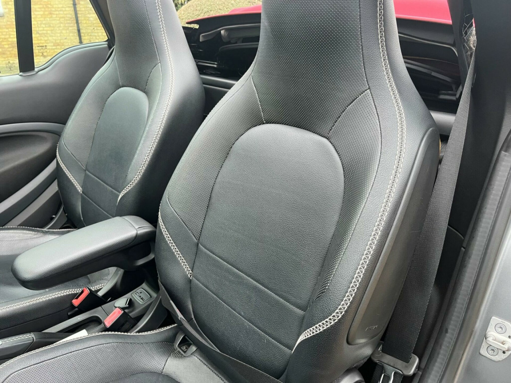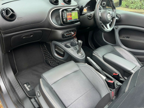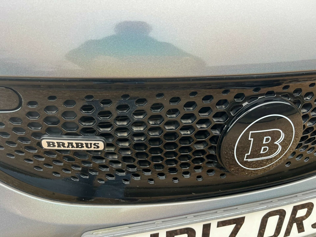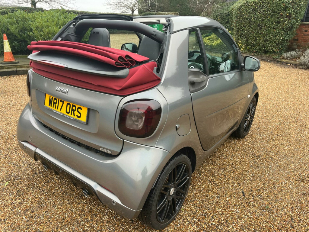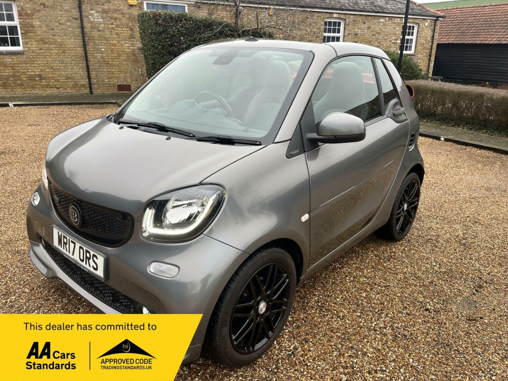 This 2017 Smart Fortwo T BRABUS Xclusive boasts a full service history and an MOT valid until August 2026, offering excellent peace of mind. This stylish model features a striking Graphite Grey Matt Paint Tridion Safety Cell and a vibrant Electric Tritop Fabric Soft Top in Red with a Grey lining. Under the bonnet, you'll find a 0.9L Petrol Engine compliant with Euro 6 emissions standards. The BRABUS Xclusive trim level ensures a premium experience, enhanced by the Cool and Audio Package with automatic climate control and Bluetooth connectivity. Further adding to its appeal are the Premium Plus Equipment Line, including automatic headlights, rear camera and parking sensors, and heated seats for both the driver and front passenger.This Smart Fortwo excels with a remarkable fuel economy of 61 mpg, demonstrating its efficiency compared to other vehicles. Its low CO2 emissions also contribute to its environmentally conscious design. You'll appreciate the surprisingly large boot space, making it practical for everyday use. With a clear vehicle history check and a 3 month warranty included, this vehicle represents a well maintained and thoughtfully equipped option.Please call 07976 200011 for further informationAppointment only, ectric tritop fabric soft top in red with inside roof lining in grey, tridion safety cell in graphite grey matt paint, brabus sports - perforated nappa leather - black with specific topstitching in grey, 12 volt socket with cover, 16in front alloy wheels and 17in rear alloy wheels - brabus monoblock ix - painted in matt grey with high-sheen finish, abs - anti lock braking system, airbag - kneebag for driver, airbags - driver and passenger, airbags - sidebags for driver and front passenger - combined head and thorax, automatic climate control, brabus dashboard instrument with cockpit clock and rev counter with brabus lettering, brabus dashboard in leather look-black fabric - door centre panels in black fabric and accent trim parts in black-grey, brabus leather gearshift lever with grey topstitching, brabus velour floor mats - black - with brabus logo and lettering, black front grille, brake assist, breakdown kit with air compressor and sealant, central locking with convenience closing features and immobiliser, central locking with radio remote control - visual locking-verification signal and folding key, centre console with pull-out tray and double cup holder, cool and audio package with automatic climate control, crash sensor auto switch-on of hazard warning lights, crosswind assist, cruise control with speedtronic variable speed limiter, dab - digital radio, direct-steer system with speed sensitve power assistance and variable steering ratio, door mirror caps in tridion colour, door mirror with aspherically curved mirror glass on driver side, drive lock - automatic door locking when the vehicle is in motion, esp - electronic stability programme, electric tritop fabric soft top in black with inside roof lining in grey, electric windows, exterior temperature indicator with frost warning, heated seats for driver and front passenger, hill start assist, isofix child seat attachment point on passenger seat, instrument cluster with multi functional colour 3.5in display, interior door handle - matt chrome, interior lighting, led and sensor package, load-lashing eyes in luggage compartment, lockable glove compartment, lockable service bonnet, luggage compartment cover, luggage compartment lighting, map pocket - driver and passager seatbacks, passenger seat with through - loading function - flat-folding seatback, pedestrian impact protection front and side, premium plus equipment line, radiator trim - black, rear spoiler, rear windscreen - heated with timer control, seat belt reminder for driver and passenger, seat belts - three-point with seat belt tensioners and belt force limiters, steering wheel - 3- spoke multi-function - leather, storage compartment in front doors, storage compartment in tailgate, tail lights, third rear brake light, tridion safety cell in black solid paint, tyre pressure monitoring system, vanity mirror in sun visors with parking ticket holder for driver and passenger, white side indicators, xclusive lettering on the b-pillar