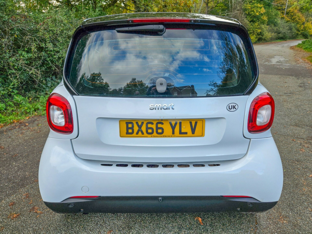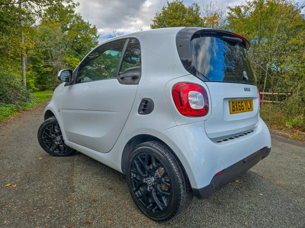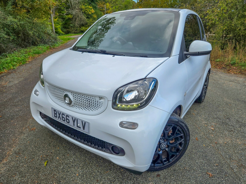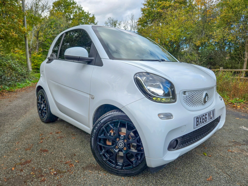 FULL SERVICE HISTORY,JUST SERVICED,NEW TYRES,NEW MOT,READY TO GO....This 2016 Smart ForTwo 0.9T Edition White Coupe with only 81000 miles on the clock is the perfect urban runaround. Powered by a petrol engine, this two-seater coupe is ULEZ compliant and comes with MOT until 26/10/2026. Its sleek design features 2 doors, 16in Alloy Wheels, and Body Panels in striking white, while the Door Mirror Caps add a pop of color in Tridion. Inside, you'll find a Smart Audio-System and a 12 Volt Socket with Cover. With its compact size and smooth Twinamic Euro 6 (s/s) engine delivering 90 ps, this Smart ForTwo is the ideal choice for city driving and stylish commuting., volt socket with cover, smart audio-system, 16in alloy wheels - 8-y-spoke painted black, body panels - white, door mirror caps in tridion colour, door mirror with aspherically curved mirror glass on driver side, electric windows, exhaust system with chrome plated tailpipe, painted front grille, panoramic roof with sun protection, radiator trim - white, rear spoiler, rear windscreen - heated with timer control, tridion safety cell in white solid paint, wheel arch extensions with smart lettering, edition badging on tailgate, 3-spoke multi-function sports steering wheel in perforated leather, automatic climate control, breakdown kit, brushed stainless steel sports pedals with rubber studs, central locking with convenience closing features, centre console with pull-out tray, comfort package, dashboard instruments with cockpit clock and rev counter, dashboard and door centre panel - black fabric, dashboard and door centre panel highlights in contrast colour, gearshift lever - trimmed leather, grab handle for front passenger, instrument cluster with multi functional colour 3.5in display, interior door handle - matt chrome, interior lighting, load-lashing eyes in luggage compartment, lockable glove compartment, lockable service bonnet, luggage compartment cover, luggage compartment lighting, map pocket - driver and passager seatbacks, passenger seat backrest foldable down for through loading, premium package, seats - heated front, smartphone cradle, storage compartment in front doors, storage compartment in tailgate, sunglasses holder, vanity mirror in sunvisor, white side indicators, abs - anti lock braking system, airbag - driver and passenger, airbag - kneebag for driver, airbags - sidebags for driver and front passenger - combined head and thorax, brake assist, central locking with radio remote control, crash sensor auto switch-on of hazard warning lights, crosswind assist, drive lock - automatic door locking when the vehicle is in motion, esp - electronic stability programme, hill start assist, isofix child seat attachment point on passenger seat, pedestrian impact protection front and side, seat belt reminder for driver and passenger, seat belts with belt tensioners and belt force limiters, traction control, tridion safety cell, cruise control with speedtronic variable speed limiter, direct-steer system with speed sensitve power assistance and variable steering ratio, exterior temperature indicator with frost warning, lowered sports suspension - 10mm, onboard computer, tyre pressure monitoring system, headlights - h4 halogen, led daytime running lights, third rear brake light