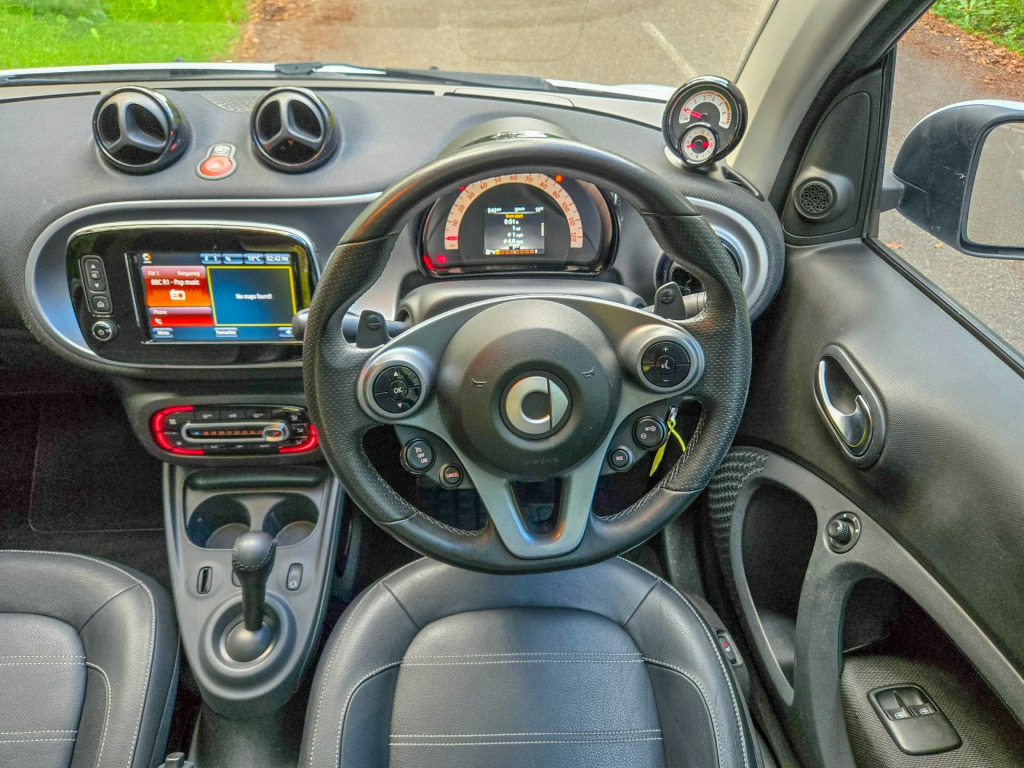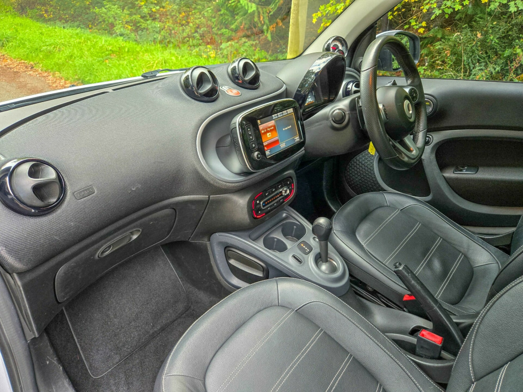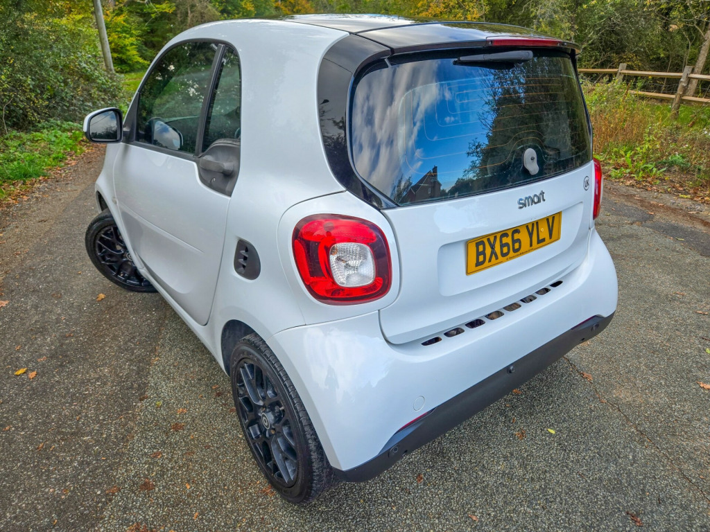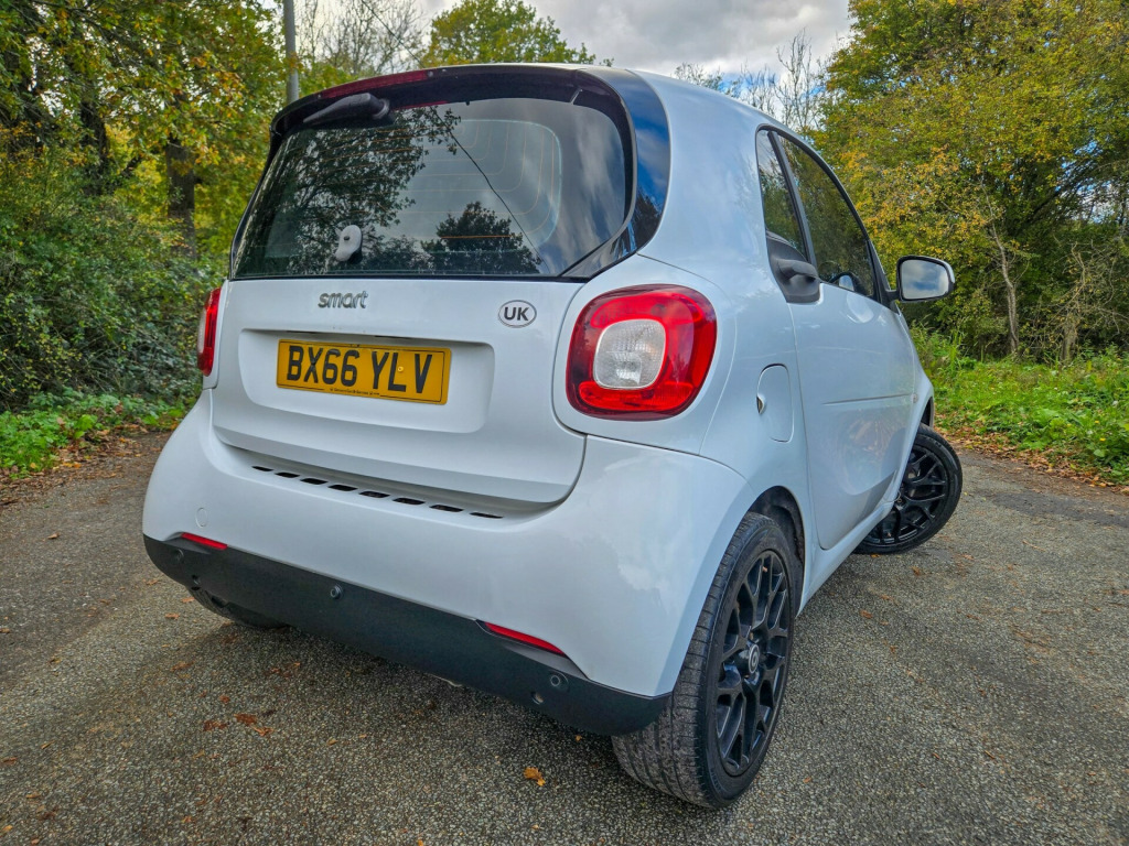 FULL SERVICE HISTORY,JUST SERVICED,NEW TYRES,NEW MOT,READY TO GO....This 2016 Smart ForTwo 0.9T Edition White Coupe with only 81000 miles on the clock is the perfect urban runaround. Powered by a petrol engine, this two-seater coupe is ULEZ compliant and comes with MOT until 26/10/2026. Its sleek design features 2 doors, 16in Alloy Wheels, and Body Panels in striking white, while the Door Mirror Caps add a pop of color in Tridion. Inside, you'll find a Smart Audio-System and a 12 Volt Socket with Cover. With its compact size and smooth Twinamic Euro 6 (s/s) engine delivering 90 ps, this Smart ForTwo is the ideal choice for city driving and stylish commuting., volt socket with cover, smart audio-system, 16in alloy wheels - 8-y-spoke painted black, body panels - white, door mirror caps in tridion colour, door mirror with aspherically curved mirror glass on driver side, electric windows, exhaust system with chrome plated tailpipe, painted front grille, panoramic roof with sun protection, radiator trim - white, rear spoiler, rear windscreen - heated with timer control, tridion safety cell in white solid paint, wheel arch extensions with smart lettering, edition badging on tailgate, 3-spoke multi-function sports steering wheel in perforated leather, automatic climate control, breakdown kit, brushed stainless steel sports pedals with rubber studs, central locking with convenience closing features, centre console with pull-out tray, comfort package, dashboard instruments with cockpit clock and rev counter, dashboard and door centre panel - black fabric, dashboard and door centre panel highlights in contrast colour, gearshift lever - trimmed leather, grab handle for front passenger, instrument cluster with multi functional colour 3.5in display, interior door handle - matt chrome, interior lighting, load-lashing eyes in luggage compartment, lockable glove compartment, lockable service bonnet, luggage compartment cover, luggage compartment lighting, map pocket - driver and passager seatbacks, passenger seat backrest foldable down for through loading, premium package, seats - heated front, smartphone cradle, storage compartment in front doors, storage compartment in tailgate, sunglasses holder, vanity mirror in sunvisor, white side indicators, abs - anti lock braking system, airbag - driver and passenger, airbag - kneebag for driver, airbags - sidebags for driver and front passenger - combined head and thorax, brake assist, central locking with radio remote control, crash sensor auto switch-on of hazard warning lights, crosswind assist, drive lock - automatic door locking when the vehicle is in motion, esp - electronic stability programme, hill start assist, isofix child seat attachment point on passenger seat, pedestrian impact protection front and side, seat belt reminder for driver and passenger, seat belts with belt tensioners and belt force limiters, traction control, tridion safety cell, cruise control with speedtronic variable speed limiter, direct-steer system with speed sensitve power assistance and variable steering ratio, exterior temperature indicator with frost warning, lowered sports suspension - 10mm, onboard computer, tyre pressure monitoring system, headlights - h4 halogen, led daytime running lights, third rear brake light