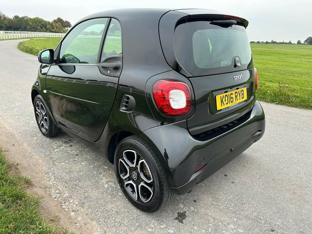 2016 Smart Fortwo 0.9T Prime (Premium Plus) Coupe Auto Petrol Automatic ULEZ Compliant 20 Road Tax Panoramic Roof Heated Leather NavigationA superb example of the Smart Fortwo 0.9T Prime (Premium Plus) finished in gloss black with matching black heated leather interior and stylish 15-inch diamond-cut alloy wheels.This car combines premium comfort with outstanding practicality and renowned Mercedes-Benz build quality.With 86,000 miles,good service history,3 previous keepers,This car has been well cared for and is in lovely condition throughout. It's the perfect choice for anyone looking for a reliable, economical, and stylish city car.Specification 0.9 Turbo Petrol Engine (90PS)Automatic (Twinamic) gearbox86,000 miles3 previous keepersMOT Until 25/11/2025 (will come with a new full year's MOT)Good Service HistoryULEZ CompliantRoad Tax Only 20 per yearFeatures Touchscreen Multimedia System with Bluetooth, AUX, and Built-in Navigation Panoramic Glass Roof Heated Leather Seats Cruise Control Air Conditioning Electric Windows Remote Central Locking Heated Rear Windscreen 15'' Diamond-Cut Alloy Wheels Spacious Boot for a Compact Car The Smart Fortwo has long been celebrated for its ingenious design, maneuverability, and reliability. Built under the Mercedes-Benz umbrella, it delivers impressive engineering quality in a compact, stylish package. Its short wheelbase and tight turning circle make city driving and parking effortless, while the turbocharged 0.9 engine offers a lively yet economical performance. Inside, you'll find surprising comfort and a high quality finish that rivals much larger cars. Perfect as a first car, daily commuter, or urban runabout, the Fortwo offers low insurance, cheap road tax, and excellent fuel economy 2016 Smart Fortwo Prime Premium Plus 0.9 Turbo Petrol (90PS) Automatic 86,000 miles Full heated leather interior Panoramic glass roof Touchscreen multimedia with navigation Cruise control & Bluetooth 20 annual road tax ULEZ compliant This Smart Fortwo offers premium features, excellent economy, and unbeatable practicality in one stylish package. Warranty options available of up to 48 months. Part exchange welcome. Up to 30 other cars with low insurance groups on site.For any additional information or to arrange a viewing at our Epsom based forecourt please call or text. volt socket with cover, 7in capacitive multi-touch display, audio streaming via bluetooth module, audio streaming for music transfer, aux-usb, bluetooth hands-free system, mirrorlink, radio - am-fm, satellite navigation - whole of europe including 3 live services - individually extendable thereafter, smart media-system, speakers x4, 15in alloy wheels - 5-twin-spoke painted in black with a high-sheen finish, door mirror caps in tridion colour, door mirror with aspherically curved mirror glass on driver side, door mirrors - electrically adjustable and heated, electric windows, painted front grille, panoramic roof with sun protection, radiator trim - black, rear spoiler, rear windscreen - heated with timer control, tridion safety cell in black solid paint, abs - anti lock braking system, airbag - full size driver, airbag - full size passenger, airbag - kneebag for driver, airbag - side for head-thorax, anti-theft alarm system, automatic hill start assist on uphill slopes, central locking with radio remote control, crash sensor auto switch-on of hazard warning lights, crosswind assist, drive lock - automatic door locking when the vehicle is in motion, esp - electronic stability programme, hydraulic brake assist, isofix child seat fastener, immobiliser, pedestrian impact protection front and side, rear windscreen wiper with intermittent wiper and automatic wipe - wash function, seat belt reminder for driver and passenger, traction control, ambient lighting - door pockets - footwell - instrument panel - overhead console, ambient lighting - footwell, armrest - front centre, automatic climate control, breakdown kit, centre console with pull-out tray, comfort pack, cup holder x 2, dashboard instruments with cockpit clock and rev counter, dashboard and door centre panel - black fabric - grey highlights, drivers seat - height adjustable, gearshift lever - trimmed in leather, grab handle for front passenger, instrument cluster with multi functional colour 3.5in display, interior door handle - matt chrome, key - folding, load-lashing eyes in luggage compartment, lockable glove compartment, lockable service bonnet, luggage compartment cover, luggage compartment lighting, map pocket - driver and passager seatbacks, passenger seat backrest foldable down for through loading, pollen filter, premium package, premium plus package, rain sensing windscreen wipers, reading light for driver and passenger, rear window wiper with interval wiping and automatic wipe/wash function, seats - heated front, smartphone cradle, steering wheel - 3- spoke multi-function - leather, steering wheel - height adjustable, steering wheel - multifunction, storage compartment in front doors, storage compartment in tailgate, sunglasses holder, ticket holder, vanity mirror in sunvisor, white side indicators, coming home function, front fog lights, headlight - automatic, headlights - h4 halogen, led daytime running lights, tail lights - led, third rear brake light, cruise control, direct-steer system with speed sensitve power assistance and variable steering ratio, exterior temperature indicator with frost warning, parking assistance - rear, parking assistance - rear view camera, speedtronic variable speed limiter, trip computer, tyre pressure monitoring system, voice control