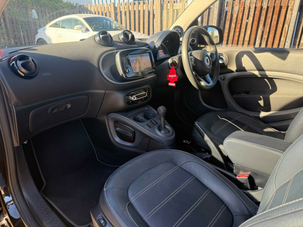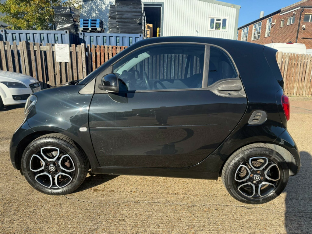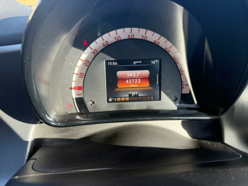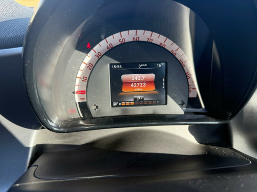 This 2015 Smart Fortwo T Prime (Premium Plus) boasts exceptionally low mileage for its age, having covered just 41,000 miles, and comes with a clear vehicle history check. This Euro 6 compliant 0.9L petrol model offers a comfortable and convenient driving experience, featuring a panoramic roof with sun protection, a Bluetooth hands free system for seamless connectivity, and heated front seats for those colder journeys. You'll also appreciate the automatic climate control to maintain your ideal cabin temperature and rear parking assistance to make manoeuvring effortless.The Smart Fortwo T Prime (Premium Plus) stands out with its impressive fuel economy, achieving a remarkable 69 miles per gallon, which is significantly better than many other vehicles in its class. This, combined with its low CO2 emissions, makes it an economical and environmentally conscious choice. The Prime trim level ensures you benefit from a well equipped and refined interior, making this Smart Fortwo a practical and enjoyable option for city driving and beyond. volt socket with cover, 15in alloy wheels - 5-twin-spoke painted in black with a high-sheen finish, 7in capacitive multi-touch display, abs - anti lock braking system, airbag - full size driver, airbag - full size passenger, airbag - kneebag for driver, airbag - side for head-thorax, ambient lighting - door pockets - footwell - instrument panel - overhead console, anti-theft alarm system, audio streaming via bluetooth module, audio streaming for music transfer, automatic climate control, automatic hill start assist on uphill slopes, aux-usb, bluetooth hands-free system, breakdown kit, central locking with radio remote control, centre console with pull-out tray, comfort pack, coming home function, crash sensor auto switch-on of hazard warning lights, cruise control, cup holder x 2, dashboard instruments with cockpit clock and rev counter, dashboard and door centre panel - black fabric - grey highlights, direct-steer system with speed sensitve power assistance and variable steering ratio, door mirror caps in tridion colour, door mirror with aspherically curved mirror glass on driver side, door mirrors - electrically adjustable and heated, drive lock - automatic door locking when the vehicle is in motion, drivers seat - height adjustable, esp - electronic stability programme, electric windows, front fog lights, gearshift lever - trimmed in leather, grab handle for front passenger, headlight - automatic, headlights - h4 halogen, hydraulic brake assist, isofix child seat fastener, immobiliser, instrument cluster with multi functional colour 3.5in display, interior door handle - matt chrome, led daytime running lights, lane-keeping assist with acoustic and optical warning, load-lashing eyes in luggage compartment, lockable glove compartment, lockable service bonnet, luggage compartment cover, luggage compartment lighting, map pocket - driver and passager seatbacks, outside temperature display, painted door handles, painted front grille, panoramic roof with sun protection, parking assistance - rear, parking assistance - rear view camera, passenger seat backrest foldable down for through loading, pedestrian impact protection front and side, pollen filter, premium package, premium plus package, radiator trim - black, radio - am-fm, rain sensing windscreen wipers, reading light for driver and passenger, rear spoiler, rear window wiper with interval wiping and automatic wipe/wash function, rear windscreen - heated with timer control, satellite navigation - whole of europe including 3 live services - individually extendable thereafter, seat belt reminder for driver and passenger, seats - heated front, smart media-system, speakers x4, speedtronic variable speed limiter, steering wheel - 3- spoke multi-function - leather, steering wheel - height adjustable, steering wheel - multifunction, storage compartment in front doors, storage compartment in tailgate, sunglasses holder, tail lights - led, third rear brake light, ticket holder, traction control, tridion safety cell in black solid paint, trip computer, tyre pressure monitoring system, vanity mirror in sunvisor, voice control, white side indicators