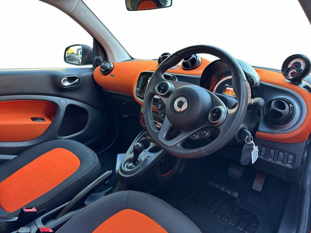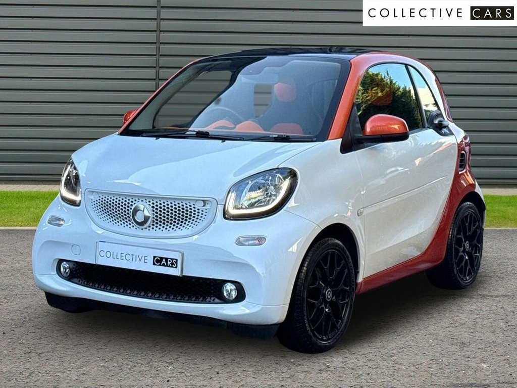 Smart Fortwo 1.0 Edition 1 Coupe Automatic. 2015/15. A one previously owned Smart Coupe Edition 1 finished in Pure White with Lava Orange and Charcoal and Lava Orange Interior. Super Low Mileage of just 14k is fully supported by a Smart/Specialist Service History. An immaculate example throughout that comes with Smart Navigation System with Bluetooth/Multimedia System. Panoramic Roof with Sunblind. PDC. Cruise Control. Two Keys and Smart Bookpack. Nationwide Delivery Direct to your chosen destination. Further details available on request. 12 Volt Socket with Cover, 16in Alloy Wheels - 8-Y-Spoke Painted Bl, 7in Capacitive Multi-Touch Display, ABS - Anti Lock Braking System, Airbag - Full Size Driver, Airbag - Full Size Passenger, Airbag - Kneebag for Driver, Airbag - Side for Head-Thorax, Ambient Lighting - Door Pockets - Footwe, Anti-Theft Alarm System, Audio Streaming Via Bluetooth Module, Audio Streaming for Music Transfer, Automatic Climate Control, Automatic Hill Start Assist on Uphill Sl, Aux-USB, Badge in Mirror Triangle - Edition #1, Bluetooth Hands-Free System, Breakdown Kit, Brushed Stainless Steel Sports Pedals wi, Central Locking with Radio Remote Contro, Centre Console with Pull-Out Tray, Comfort Pack, Coming Home
