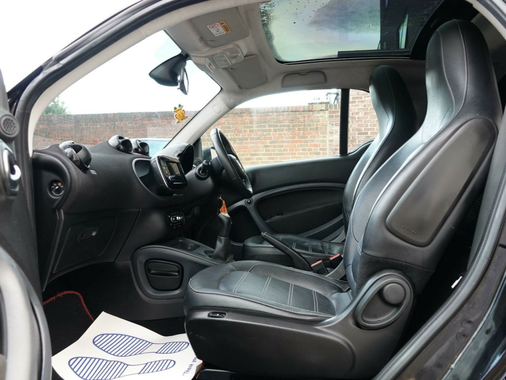 This 2016 Smart Fortwo Edition Black boasts an MOT valid until June 2026, offering peace of mind for the coming years. This stylish vehicle is powered by a 1.0L Euro 6 petrol engine, ensuring efficient performance. With a clear vehicle history check and a recent service completed on 12th June 2025 at 57,896 miles, this Smart Fortwo has been well maintained. The Edition Black trim includes desirable features such as the Smart Audio System with Bluetooth connectivity, a panoramic roof with sun protection, automatic climate control, and heated front seats. The Premium Package further enhances the driving experience with rear parking assistance sensors.This Smart Fortwo Edition Black stands out with its impressive fuel economy, achieving a remarkable 69 mpg, which indicates it is more economical than many similar vehicles. Its low CO2 emissions also contribute to its appeal, suggesting lower running costs and environmental benefits. A 3 month warranty is included, providing an extra layer of confidence for the new owner. This combination of efficient running, desirable features, and solid provenance makes this Smart Fortwo a compelling choice. ather - black with grey stitching, 12 volt socket with cover, 16in alloy wheels - 8-y-spoke painted black, 3-spoke multi-function sports steering wheel in perforated leather, abs - anti lock braking system, airbag - driver and passenger, airbag - kneebag for driver, airbags - sidebags for driver and front passenger - combined head and thorax, automatic climate control, body panels - black, brake assist, breakdown kit, brushed stainless steel sports pedals with rubber studs, central locking with convenience closing features, central locking with radio remote control, centre console with pull-out tray, comfort package, crash sensor auto switch-on of hazard warning lights, crosswind assist, cruise control with speedtronic variable speed limiter, dashboard instruments with cockpit clock and rev counter, dashboard and door centre panel - black fabric, dashboard and door centre panel highlights in contrast colour, direct-steer system with speed sensitve power assistance and variable steering ratio, door mirror caps in tridion colour, door mirror with aspherically curved mirror glass on driver side, drive lock - automatic door locking when the vehicle is in motion, esp - electronic stability programme, electric windows, exhaust system with chrome plated tailpipe, exterior temperature indicator with frost warning, gearshift lever - trimmed leather, grab handle for front passenger, headlights - h4 halogen, hill start assist, isofix child seat attachment point on passenger seat, instrument cluster with multi functional colour 3.5in display, interior door handle - matt chrome, interior lighting, led daytime running lights, load-lashing eyes in luggage compartment, lockable glove compartment, lockable service bonnet, lowered sports suspension - 10mm, luggage compartment cover, luggage compartment lighting, map pocket - driver and passager seatbacks, onboard computer, painted front grille, panoramic roof with sun protection, passenger seat backrest foldable down for through loading, pedestrian impact protection front and side, premium package, radiator trim - black, rear spoiler, rear windscreen - heated with timer control, seat belt reminder for driver and passenger, seat belts with belt tensioners and belt force limiters, seats - heated front, smart audio-system, smartphone cradle, storage compartment in front doors, storage compartment in tailgate, sunglasses holder, third rear brake light, traction control, tridion safety cell, tridion safety cell in black solid paint, tyre pressure monitoring system, vanity mirror in sunvisor, wheel arch extensions with smart lettering, white side indicators, edition badging on tailgate