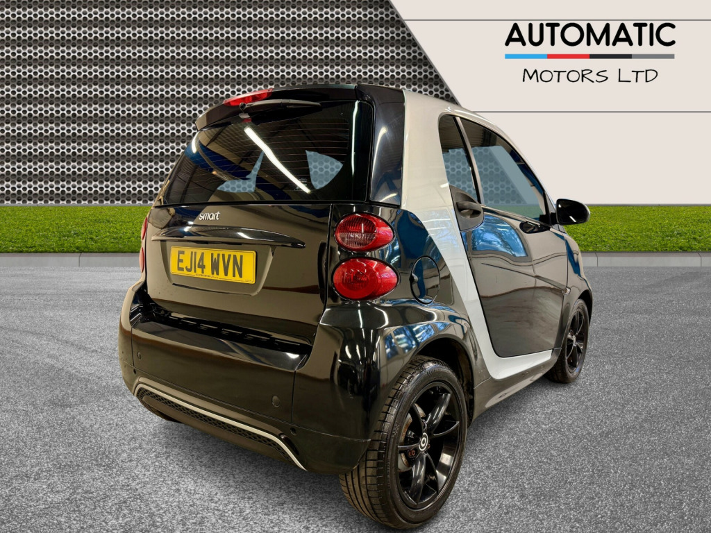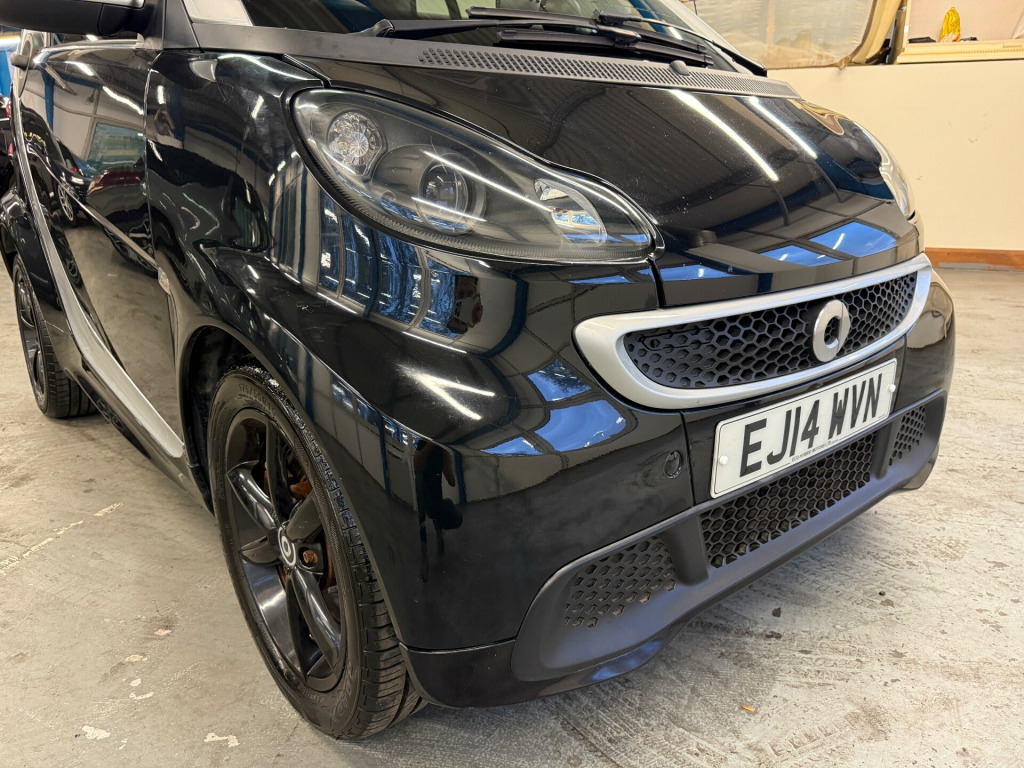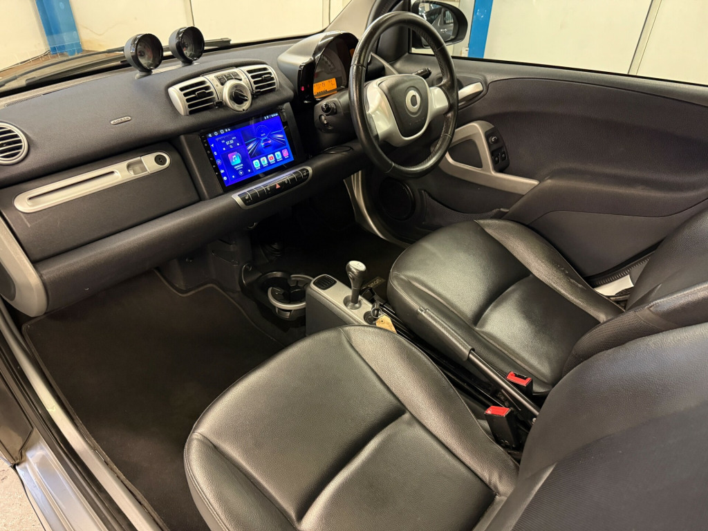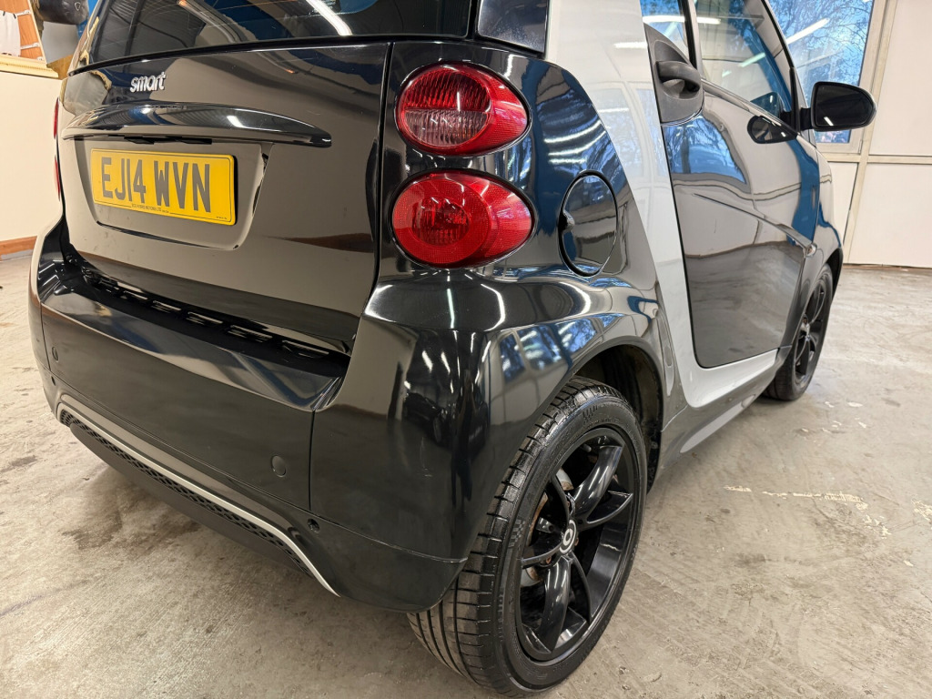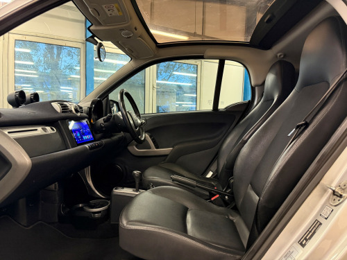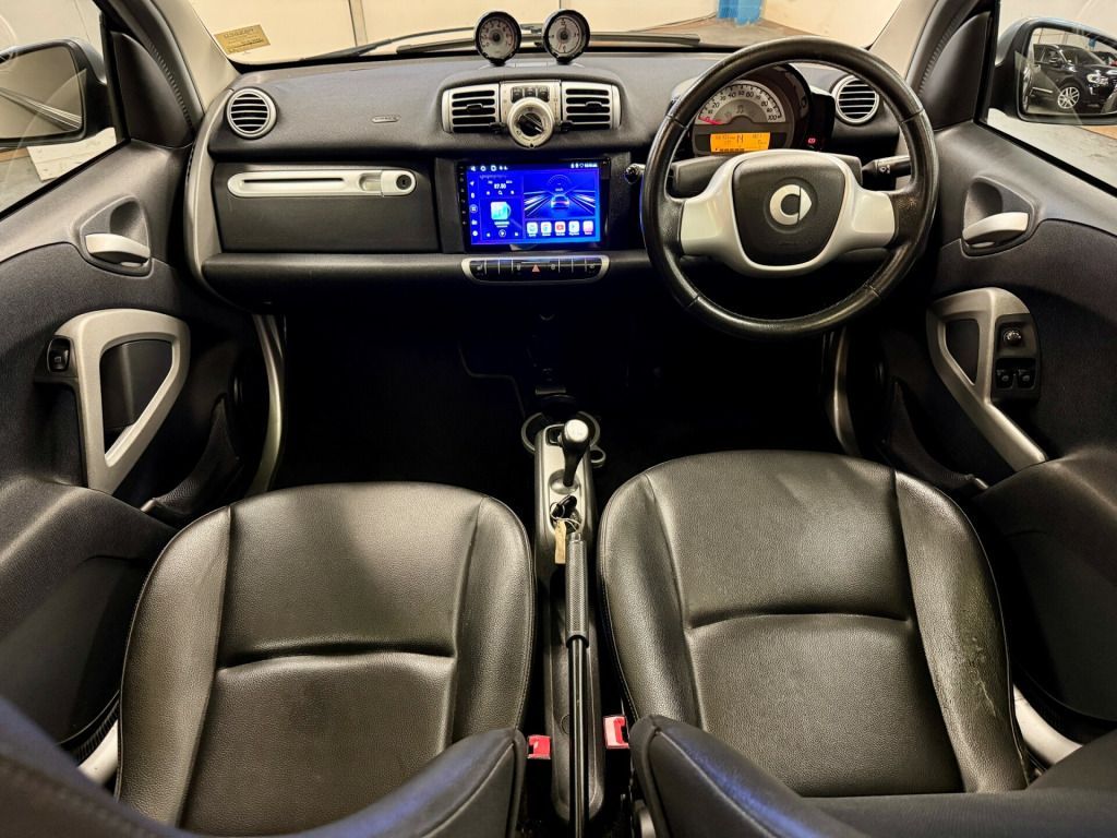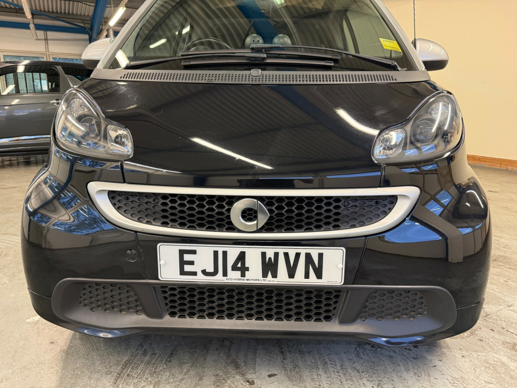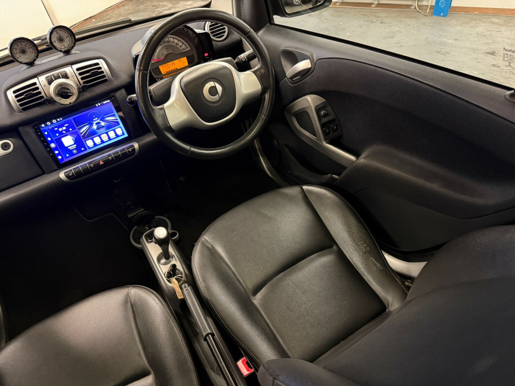2 KEYS, ULEZ FREE, FRESH SERVICE (TOTAL 5 SERVICES), MOT 05/08/2026, NAVIGATION, BLUETOOTH, PANORAMIC ROOFThis sleek 2014 Smart ForTwo 1.0 Grandstyle Coupe has only 66700 miles on the clock and is powered by a reliable petrol engine, making it ULEZ compliant and with an MOT that expires on 08/05/2026. With its compact size, 2 seats, and 2 doors, this coupe is perfect for city driving. The SoftTouch Euro 5 engine delivers 84 bhp, and the car also boasts modern features such as a 6.5in Touchscreen Display, Audio System Navigation-Multimedia Highline, and Bluetooth Hands-Free System. Additionally, the 12 Volt Socket with Cover and Aux-USB connectivity make it practical and convenient for everyday use. Don't miss out on the opportunity to own this stylish and efficient Smart ForTwo. volt socket with cover, 6.5in touchscreen display, audio system navigation-multimedia highline, aux-usb, bluetooth hands-free system, cd-dvd-sd player, rds radio, speakers x2, ipod interface, 15in alloy wheels - 3-double-spoke gleaming black, body panel plus package - front-rear apron and side skirts in body panel colour, door mirrors - caps in silver, electric windows, fuel filler cap finished in body panel colour, grandstyle logo in mirror triangle, headlight range adjustment, headlights - brabus titanium coloured background, headlights - h7 projection, heated rear window, one hand operation of tailgate with electric rear window release, panoramic roof, rear window release, silver grille surround, abs - anti lock braking system, airbag - full size driver, airbag - full size passenger, automatic hill start assist on uphill slopes, central locking with radio remote control, crash elements at front and rear, crash sensor auto switch-on of hazard warning lights, drive lock - automatic door locking when the vehicle is in motion, ebd - electronic brake force distribution, esp - electronic stability programme with hill start assist, hydraulic brake assist, hydraulic dual-circuit brake system with servo assistance, immobiliser, safety seats with integral seat belts, seat belts with belt tensioners and belt force limiters, tank cap integrated in the central locking system, tridion safety cell in silver, air conditioning with automatic temperature control, coin holder, comfort windscreen wipers with speed sensitive interval wiping and automatic wipe-wash, contrast components in pearl black, cup holder, electric tailgate release, fabric elements on instrument panel-door trim-knee pad, gear knob - leather, indicators with lane-changer function, instrument cluster with multi functional display, interior lighting, lockable glove compartment with terminal strip, luggage compartment cover - retractable, net bags in doors and sides of seat backrests, passenger seat backrest foldable down for through loading, pollen and dust filter, rear window wiper with interval wiping and automatic wipe/wash function, steering wheel - 2-spoke-leather, storage compartment in tailgate, storage compartments on passenger side and next to steering wheel, sunblind, white side indicators, exterior temperature indicator with frost warning, led daytime running lights, third rear brake light