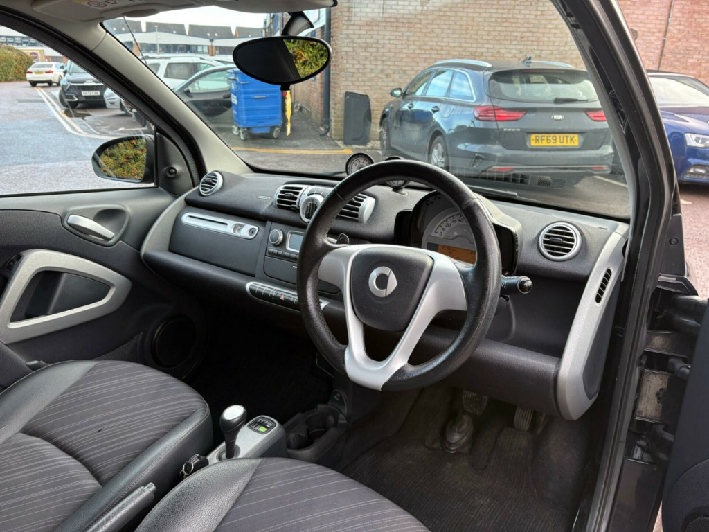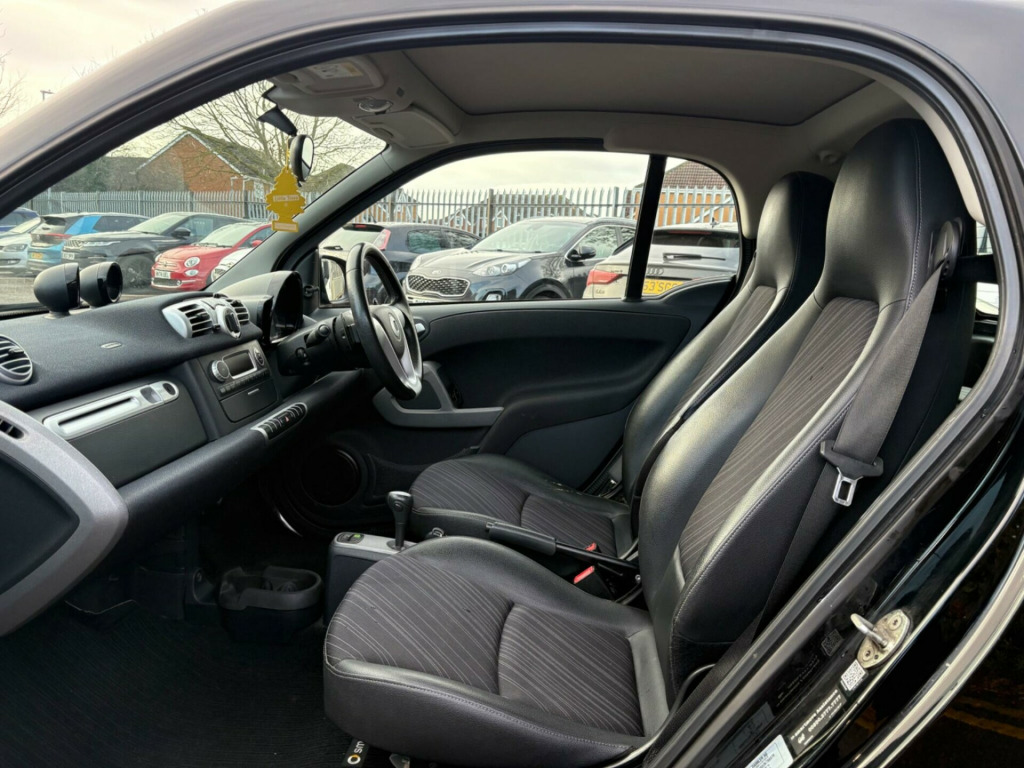 This Smart fortwo MHD Edition21 from 2014 boasts an exceptional history, having had only two owners and a clear vehicle history check. Powered by an efficient 1.0L petrol engine, this Edition21 trim model is equipped with Air Conditioning featuring automatic temperature control, ensuring a comfortable cabin environment regardless of the weather.With an impressive fuel economy of 66 miles per gallon, this Smart fortwo stands out for its cost effectiveness. Its low CO2 emissions also contribute to its appeal, indicating a more environmentally conscious choice compared to many other vehicles. This combination of low running costs and responsible emissions makes it a sensible option for urban driving and beyond., volt socket with cover, 15in 3-double-spoke alloy wheels, 2 loudspeakers and drawer, abs - anti lock braking system, acceleration skid control, air conditioning with automatic temperature control, airbag - full size driver, airbag - full size passenger, audio system lowline - rds radio, aux-usb, body panel plus package - front-rear apron and side skirts in body panel colour, central locking with radio remote control, coin holder, collaspsible steering column, comfort windscreen wipers with speed sensitive interval wiping and automatic wipe-wash, crash elements at front and rear, crash sensor auto switch-on of hazard warning lights, cup holder, drive lock - automatic door locking when the vehicle is in motion, esp - electronic stability programme with hill start assist, electric tailgate release, electric windows, exterior temperature indicator with frost warning, fabric elements on instrument panel-door trim-knee pad, fuel filler cap finished in body panel colour, gear knob - leather, headlight range adjustment, headlights - h7 projection, heated rear window, hydraulic brake assist, hydraulic dual-circuit brake system with servo assistance, immobiliser, indicators with lane-changer function, instrument cluster with multi functional display, interior lighting, led daytime running lights, lockable glove compartment with terminal strip, make up mirror in passenger sun visor, net bags in doors and sides of seat backrests, one hand operation of tailgate with electric rear window release, passenger seat backrest foldable down for through loading, pollen and dust filter, rear window release, rear window wiper with interval wiping and automatic wipe/wash function, safety seats with integral seat belts, seat belts with belt tensioners and belt force limiters, steering wheel - 3-spoke-leather-sports-paddle shift, storage compartment in tailgate, storage compartments on passenger side and next to steering wheel, tank cap integrated in the central locking system, third rear brake light, tridion safety cell in black solid paint, white side indicators, edition21 logo in mirror triangles