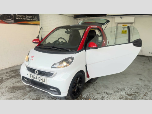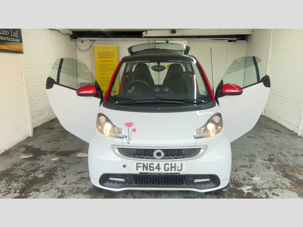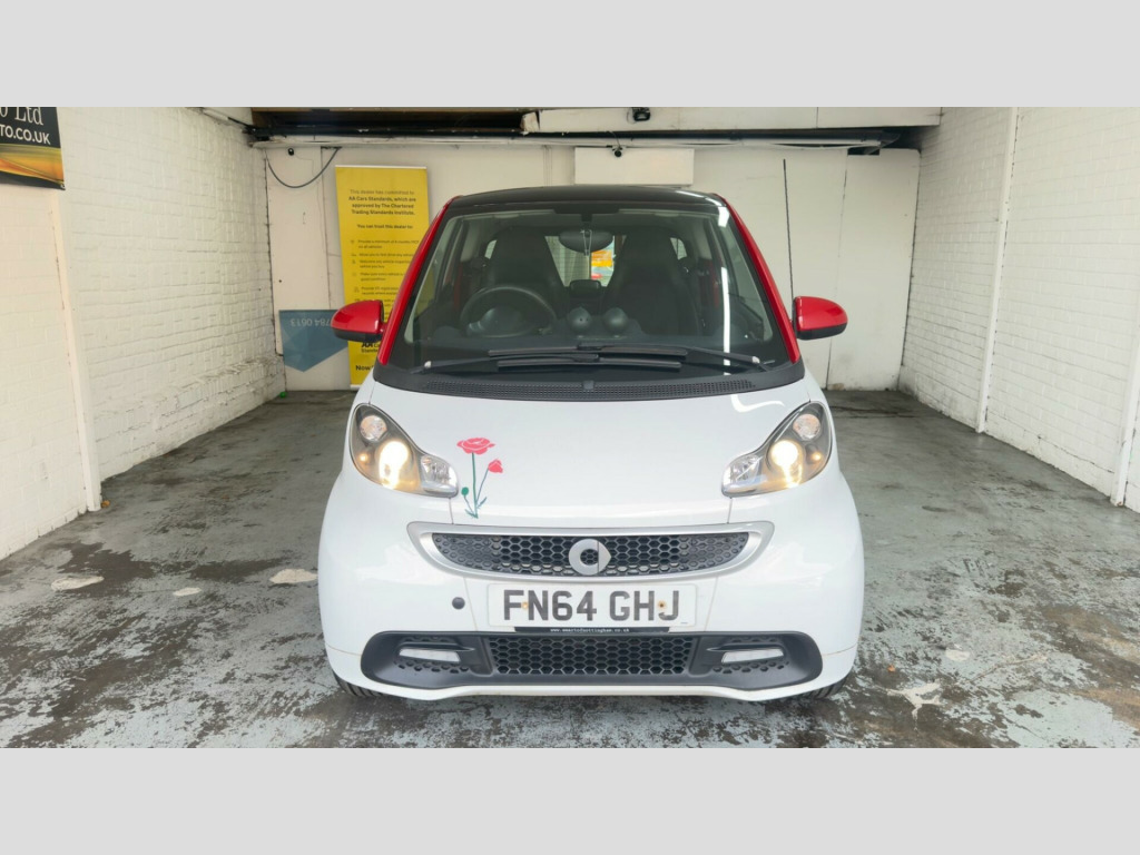 This 2014 Smart Fortwo MHD Grandstyle is a rare find, having been cherished by just one owner from new. This particular model boasts a 1.0 litre petrol engine and comes with a 3 month warranty for your peace of mind. Its MOT is valid until September 2026, and it was last serviced at 64,000 miles. You'll appreciate the convenience of the Bluetooth Hands Free System, the open feel provided by the panoramic sunroof, and the comfort of automatic climate control.The Smart Fortwo MHD Grandstyle offers impressive fuel economy, achieving an outstanding 66 miles per gallon, which is a significant advantage over many other vehicles in its class. Coupled with its low CO2 emissions, this car presents a more economical and environmentally conscious choice. This combination of excellent fuel efficiency and low emissions highlights its superior value and appeal.All vehicles are inspected by trained technicians and are history checked. Test drives and part-exchange are available, and you can choose, buy and drive away the same day. Three months mechanical parts and labour warranty included. Third party extended Warranty (up to 36 months) options are available. Free 12 months AA roadside breakdown Assistance. 5 days drive away Insurance available from £44.99 (term & conditions apply) Our cars are HPI cleared. Competitive finance options are available. NO Admin Fee- NO ADMIN fee on finance application made with us. £300 admin fee apply on finance application made from third party. All Major cards are accepted. Look our website www.focusauto.co.uk for further information. volt socket with cover, 15in alloy wheels - 3-double-spoke gleaming black, 6.5in touchscreen display, abs - anti lock braking system, air conditioning with automatic temperature control, airbag - full size driver, airbag - full size passenger, audio system navigation-multimedia highline, automatic hill start assist on uphill slopes, aux-usb, bluetooth hands-free system, body panel plus package - front-rear apron and side skirts in body panel colour, cd-dvd-sd player, central locking with radio remote control, coin holder, comfort windscreen wipers with speed sensitive interval wiping and automatic wipe-wash, contrast components in pearl black, crash elements at front and rear, crash sensor auto switch-on of hazard warning lights, cup holder, door mirrors - caps in silver, drive lock - automatic door locking when the vehicle is in motion, ebd - electronic brake force distribution, esp - electronic stability programme with hill start assist, electric tailgate release, electric windows, exterior temperature indicator with frost warning, fabric elements on instrument panel-door trim-knee pad, fuel filler cap finished in body panel colour, gear knob - leather, grandstyle logo in mirror triangle, headlight range adjustment, headlights - brabus titanium coloured background, headlights - h7 projection, heated rear window, hydraulic brake assist, hydraulic dual-circuit brake system with servo assistance, immobiliser, indicators with lane-changer function, instrument cluster with multi functional display, interior lighting, led daytime running lights, lockable glove compartment with terminal strip, luggage compartment cover - retractable, net bags in doors and sides of seat backrests, one hand operation of tailgate with electric rear window release, panoramic roof, passenger seat backrest foldable down for through loading, pollen and dust filter, rds radio, rear window release, rear window wiper with interval wiping and automatic wipe/wash function, safety seats with integral seat belts, seat belts with belt tensioners and belt force limiters, silver grille surround, speakers x2, steering wheel - 2-spoke-leather, storage compartment in tailgate, storage compartments on passenger side and next to steering wheel, sunblind, tank cap integrated in the central locking system, third rear brake light, tridion safety cell in silver, white side indicators, ipod interface