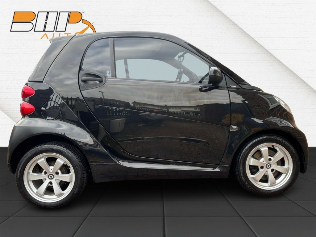 please click other items for full stock list £20 tax BHP AUTOS Are Pleased To Offer This SMART FORTWO PASSION Presented In Black With A FULL BLACK LEATHER INTERIOR with arm rest PAN ROOF SAT NAV fully auto with PADDLE SHIFT and FULL POWER STEERING alloy wheels with two new front tyres 2x remote keys PRIVACY BLUETOOTH Hpi clear LT11 MEV 7 mins from j25 of the m25 taken in part exchange last owner 5 years JUST HAD A NEW CLUTCH FITTED BY US AT A COST OF £500 MOT June 2026 please note this is a genuine POWER STEERING model which is a must have option due in soon £20 tax