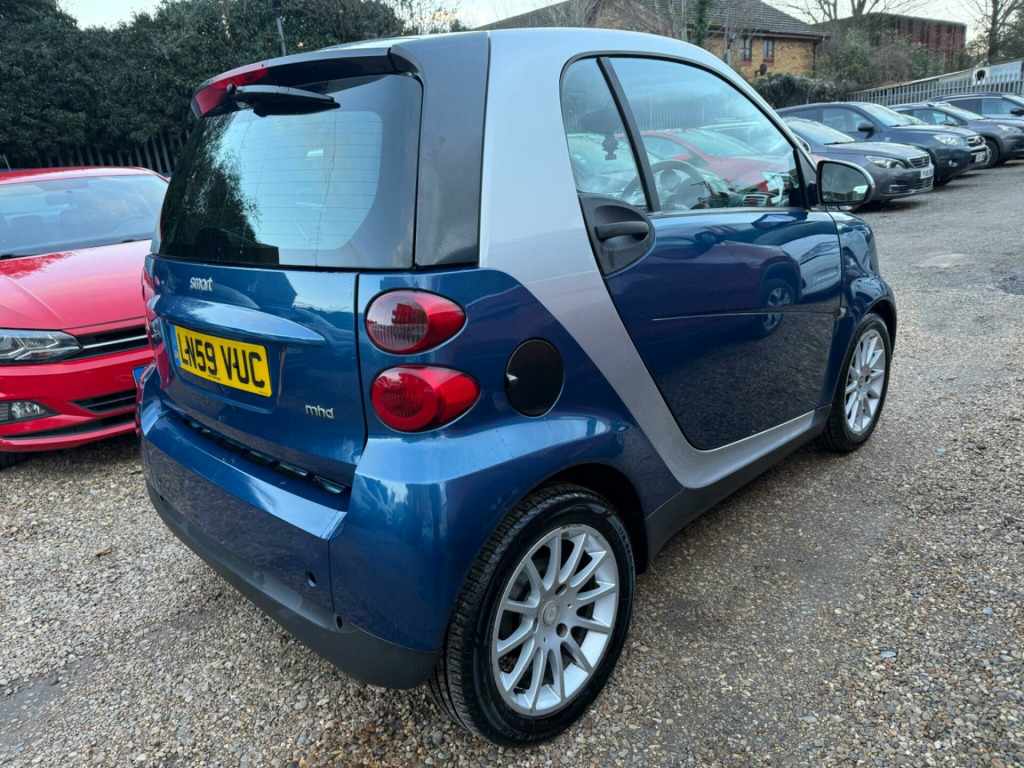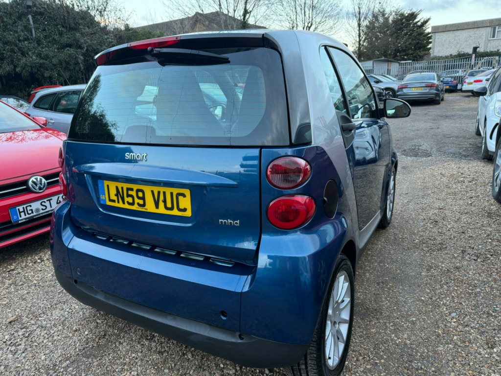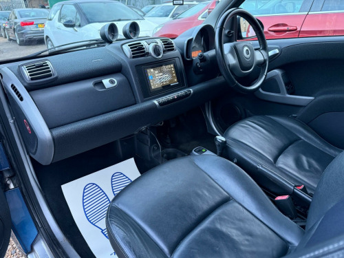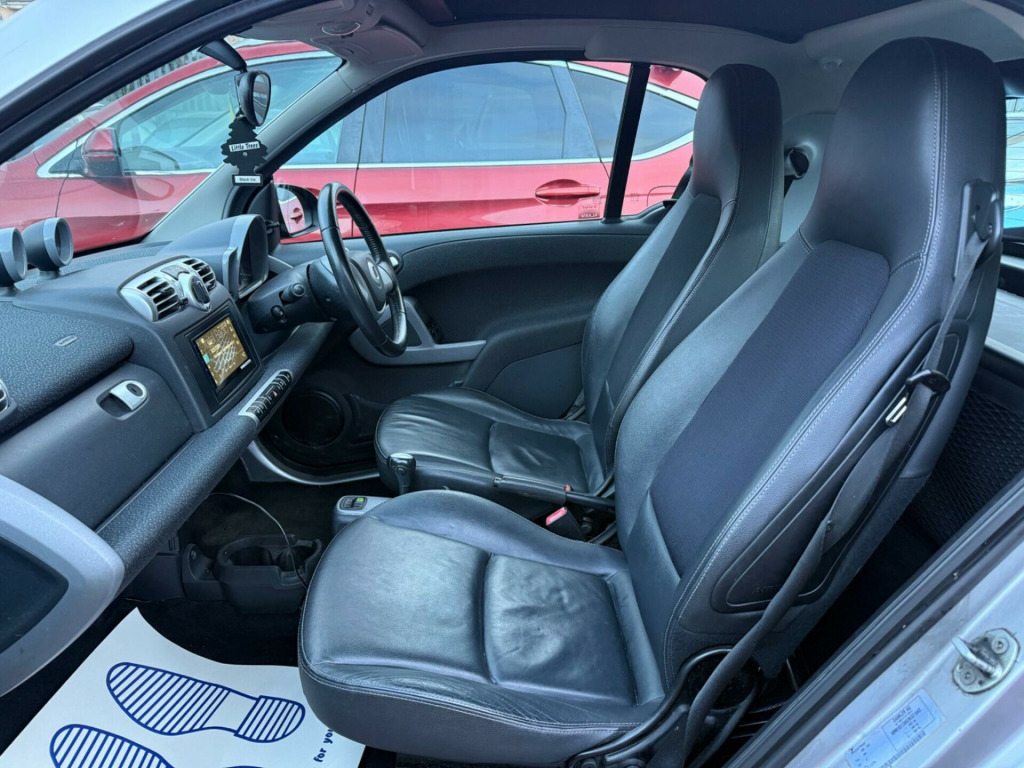 Discover this 2009 Smart fortwo MHD Passion, a compact car that offers an exceptional driving experience. This particular model boasts a 1.0L petrol engine and comes equipped with desirable features such as an anti theft alarm system, heated seats for those chilly mornings, and a lockable glovebox for added security. It also features stylish 15 inch 9 spoke alloy wheels and front fog lights, enhancing both its appearance and practicality.With an impressive fuel economy of 66 mpg, this Smart fortwo MHD Passion stands out from similar vehicles, making it an economical choice for your daily journeys. Its low CO2 emissions further contribute to its appeal as an environmentally conscious option. This car combines efficiency with a comfortable and secure driving environment, perfect for navigating city streets and beyond. ont foglights, anti theft alarm system, 15in 9spoke alloy wheels, heated seats, leather- leather with heated seats- black, leather- leather with heated seats, lockable glovebox, panoramic glass roof with sunblind, 15in 12spoke alloy wheels, 2 speakers, smart radio nine radio & cd player, 2spoke leather steering wheel, paint- solid- solid roof, tridion safety cell door mirror caps & front grille- black, tridion safety cell door mirror caps & front grille- silver