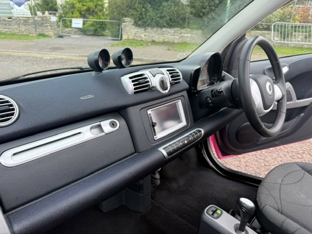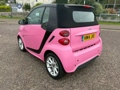 This 2014 Smart Fortwo MHD Passion is a truly exceptional find, Finished in CUSTOM BUBBLEGUM PINK, boasting remarkably low mileage for its age at just 36,000 miles, SERVICE HISTORY X5, and a clear vehicle history check for your peace of mind. MOT 22/05/2026 and comes with our 3 month warranty. Finished in a special tailor made paint, this compact city car is powered by an efficient 1.0L petrol engine. Inside, youll appreciate the convenience of a storage box, air conditioning with automatic temperature control, and a Bluetooth hands free system for seamless connectivity on the go. Experience outstanding efficiency with this Smart Fortwo, achieving an impressive 64 miles per gallon, which is significantly better than many other vehicles in its class. Its low CO2 emissions further contribute to its economical running costs. Despite its compact exterior, youll discover a surprisingly large boot space, making it practical for everyday errands and weekend getaways alike. 2 seats, Pink, 4 owners, Upgrades - Paint - Special Tailor Made Range, Tridion Safety Cell in Black Solid Paint, Fabric - Design Black, Storage Box, Standard Features - Remote Roof Release via 3-Button Key, RDS Radio with 6.5 Touchscreen Display, Audio System Navigation-Multimedia Highline, Bluetooth Hands-Free System, CD-DVD-SD player, Aux-USB, 15in Alloy Wheels - 9-Spoke, Automatic Hill Start Assist on Uphill Slopes, Air Conditioning with Automatic Temperature Control, Electric Windows, Central Locking with Radio Remote Control, Immobiliser, Body Panel Plus Package - Front-Rear Apron and Side Skirts in Body Panel Colour, Airbag - Full Size Driver, Airbag - Full Size Passenger, Steering Wheel - 2-Spoke-Leather and Leather Gear Knob, Gear Knob - Leather, 12 Volt Socket with Cover, Instrument Cluster with Multi Functional Display, Comfort Windscreen Wipers with Speed Sensitive Interval Wiping and Automatic Wipe-Wash, Crash Elements at Front and Rear, Crash Sensor Auto Switch-On of Hazard Warning Lights, Drive Lock - Automatic Door Locking when the Vehicle is in Motion, ABS - Anti Lock Braking System, EBD - Electronic Brake Force Distribution, ESP - Electronic Stability Programme with Hill Start Assist, Headlights - H7 Projection, Make Up Mirror in Passenger Sun Visor, Heated Rear Window, Interior Lighting, Electric Tailgate Release, Luggage Compartment Cover - Retractable, Passenger Seat Backrest Foldable Down For Through Loading, Safety Seats with Integral Seat Belts, White Side Indicators, Silver Grille Surround, Storage Compartment in Tailgate, Third Rear Brake Light, 2 KEYS AND BOOKPACK, Warranty option to upgrade with Warranty Wise, AWARDED HIGHLY RATED FROM AUTOTRADER 2021, 2022, 2023, 2024 and 2025! WE ARE A FAMILY RUN BUSINESS WITH OVER 30 YEARS EXPERIENCE IN THE CAR TRADE, FINANCE AND PART EXCHANGE OPTIONS AVAILABLE,FULL DEALER FACILITIES, CHECK OUR REVIEWS! ONLY 5 MINS FROM BMTH RAIL STATION, WWW.KJPRESTIGE.CO.UK