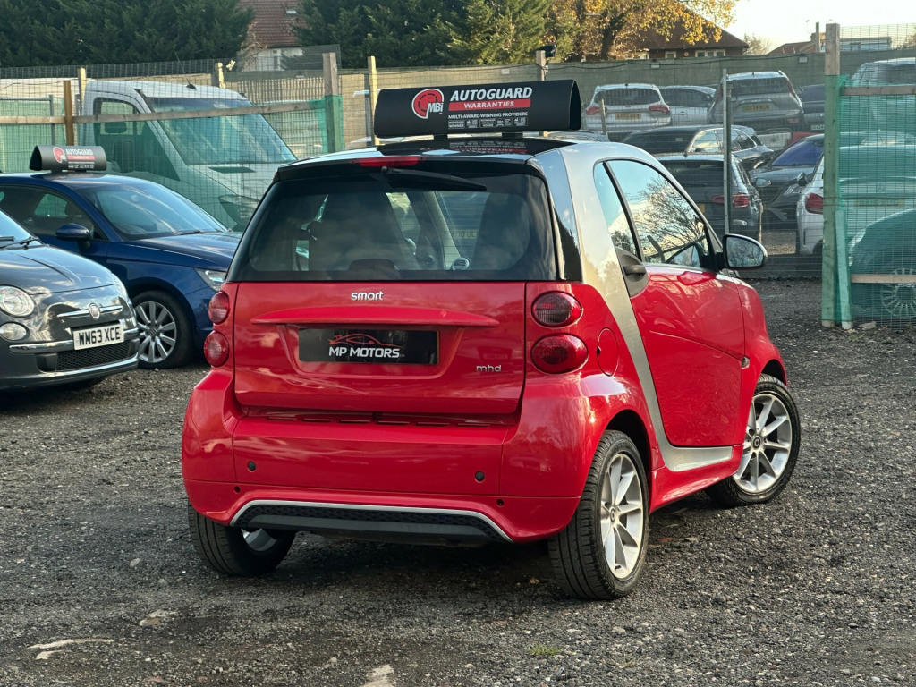 This 2013 Smart fortwo 1.0 MHD Passion Coupe 2dr Petrol SoftTouch Euro 5 (s/s) (71 bhp) Coupe is currently available for £4,495 in London with Petrol engine and Automatic gearbox. For more information or to arrange a viewing, click here to send us an email using form below.