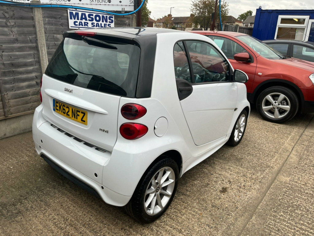 This 2012 Smart fortwo 1.0 MHD Passion SoftTouch Euro 5 (s/s) 2dr Coupe is currently available for £3,495 in Essex with Petrol engine and Automatic gearbox. For more information or to arrange a viewing, click here to send us an email using form below.