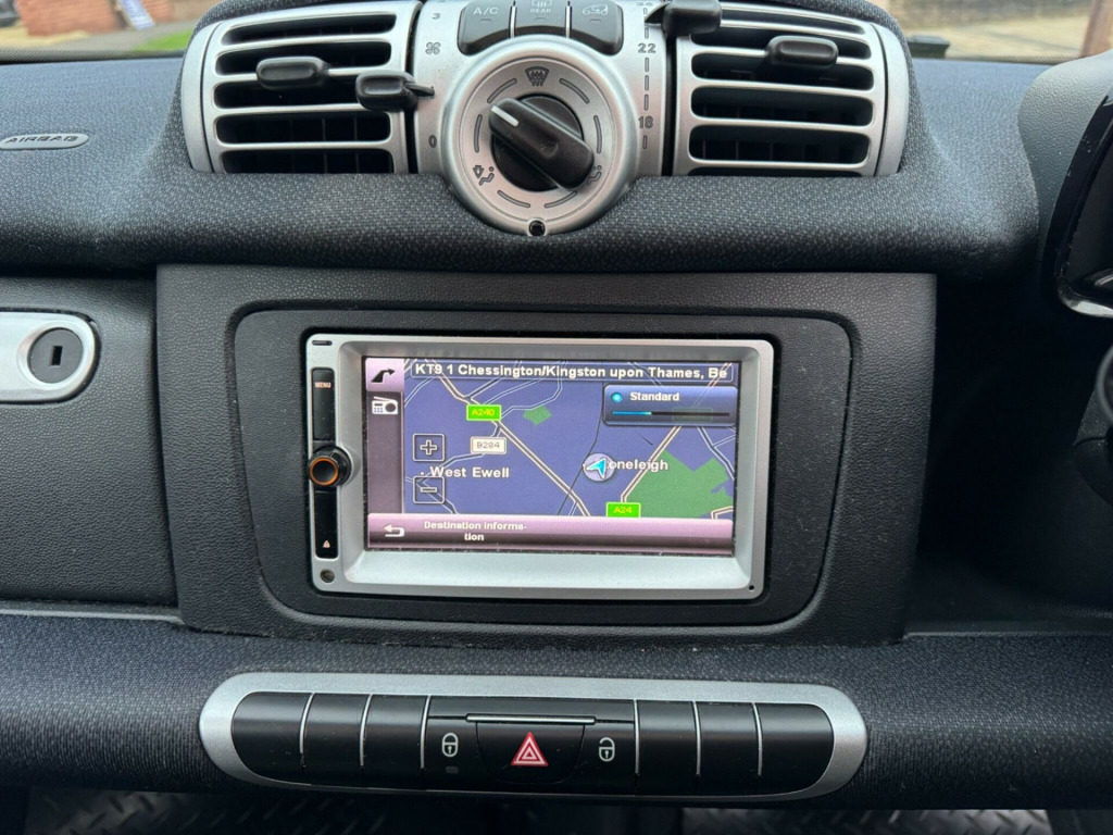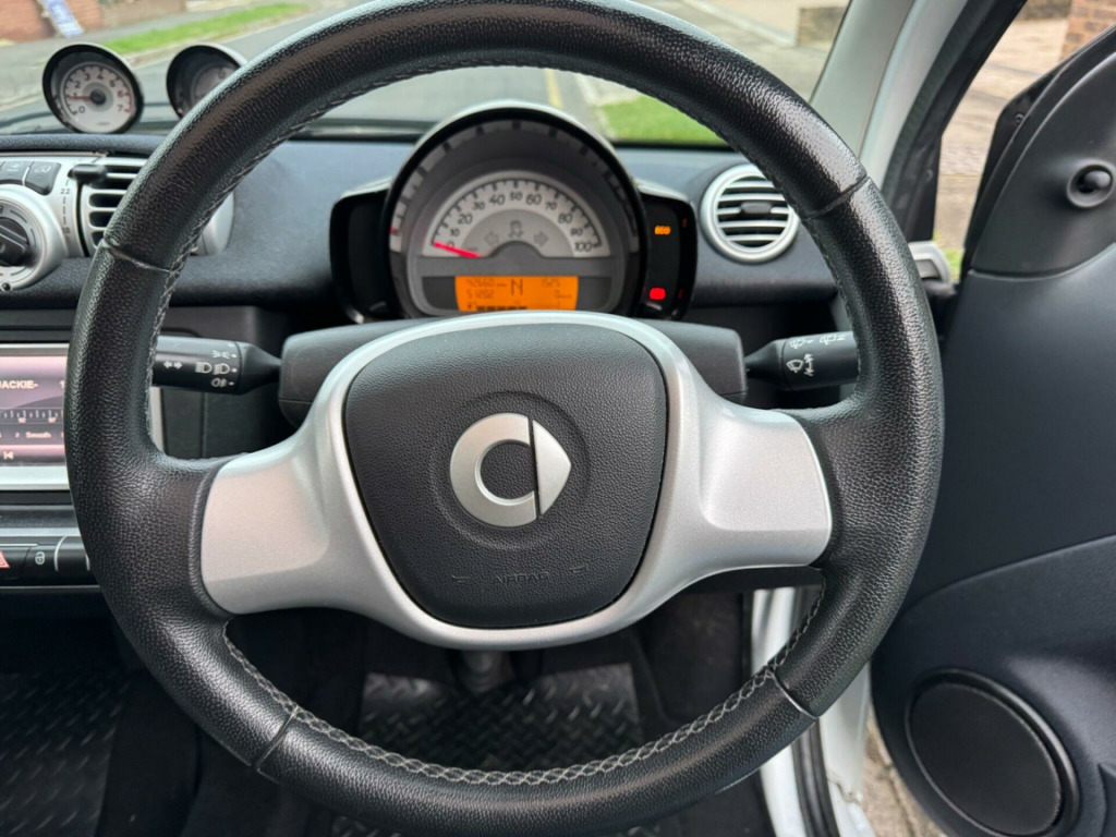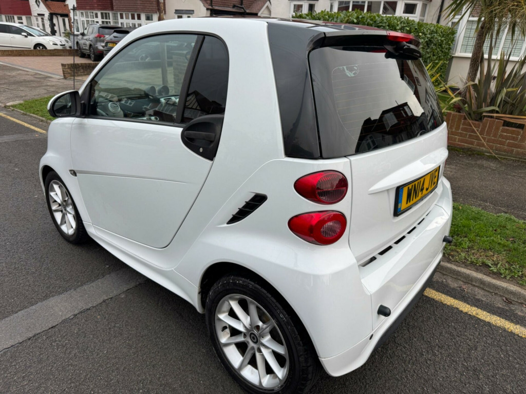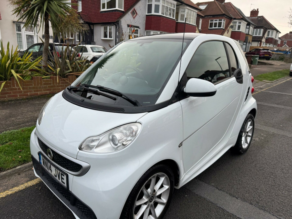 Discover this 2014 Smart Fortwo MHD Passion, a remarkably low mileage example for its year, having covered just 44,000 miles. This compact city car boasts a 1.0L petrol engine and comes in the desirable Passion trim. Inside, you'll appreciate the comfort of air conditioning with automatic temperature control, perfect for any weather. Enjoy the open air with the panoramic roof, which includes an opening sunroof, and stay connected on the go with the integrated Bluetooth hands free system.This Smart Fortwo stands out with its impressive fuel economy, achieving an excellent 66 miles per gallon, and its low CO2 emissions, making it an economical and environmentally conscious choice. These highlights demonstrate its efficiency and cost effectiveness compared to many other vehicles in its class, offering a smart solution for your urban driving needs.Comes with a good service history and a new MOT, and is a lovely little car to drive! volt socket with cover, 15in alloy wheels - 9-spoke, abs - anti lock braking system, air conditioning with automatic temperature control, airbag - full size driver, airbag - full size passenger, audio system navigation-multimedia highline, automatic hill start assist on uphill slopes, aux-usb, bluetooth hands-free system, body panel plus package - front-rear apron and side skirts in body panel colour, cd-dvd-sd player, central locking with radio remote control, comfort windscreen wipers with speed sensitive interval wiping and automatic wipe-wash, crash elements at front and rear, crash sensor auto switch-on of hazard warning lights, door mirrors - caps in silver, drive lock - automatic door locking when the vehicle is in motion, ebd - electronic brake force distribution, esp - electronic stability programme with hill start assist, electric tailgate release, electric windows, exterior temperature indicator with frost warning, gear knob - leather, headlight range adjustment, headlights - h7 projection, hydraulic brake assist, hydraulic dual-circuit brake system with servo assistance, immobiliser, indicators with lane-changer function, instrument cluster with multi functional display, navigation, net bags in doors and sides of seat backrests, one hand operation of tailgate with electric rear window release, panoramic roof, passenger seat backrest foldable down for through loading, rds radio with 6.5 touchscreen display, safety seats with integral seat belts, seat belts with belt tensioners and belt force limiters, steering wheel - 2-spoke-leather and leather gear knob, sunblind, tank cap integrated in the central locking system, third rear brake light, white side indicators, ipod interface