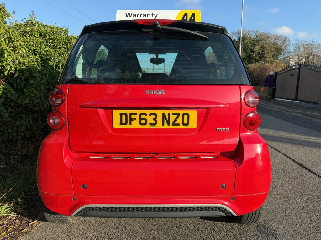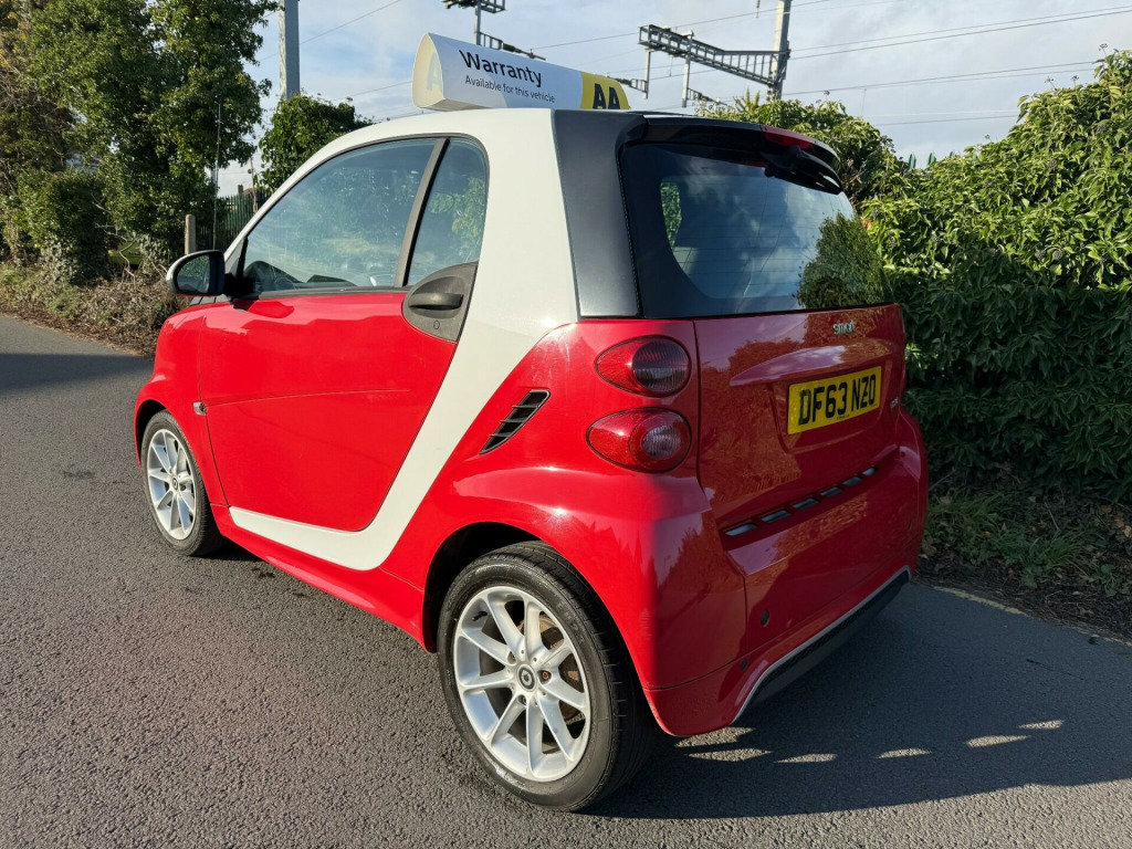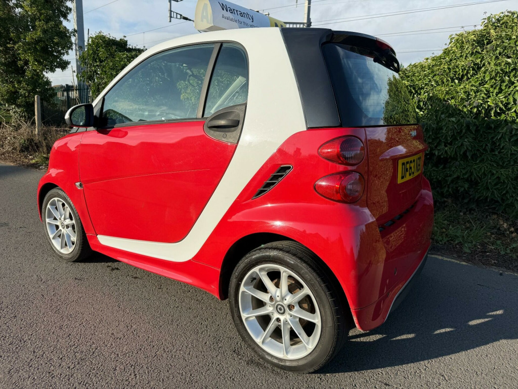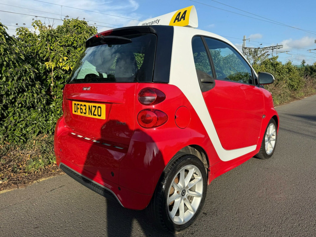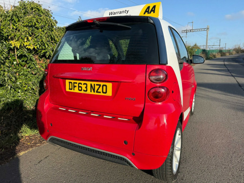 Discover this exceptional 2014 Smart Fortwo MHD Passion, boasting remarkably low mileage for its age at just 39,000 miles. This compact city car is powered by an efficient 1.0L petrol engine and comes in the desirable Passion trim. Enjoy the open air with its panoramic roof, which includes an opening sunroof, and stay connected on the go with the integrated Bluetooth hands free system. For your comfort, it features air conditioning with automatic temperature control, ensuring a pleasant cabin environment no matter the weather.This Smart Fortwo stands out with its impressive fuel economy, achieving an excellent 66 miles per gallon, making it a very economical choice for your daily journeys. Its low CO2 emissions further highlight its efficiency and environmental consideration, setting it apart from many other vehicles in its class. This combination of low running costs, compact size, and thoughtful features makes this Smart Fortwo MHD Passion a compelling option for navigating urban environments with ease and style.. 12 Volt Socket with Cover, 15in Alloy Wheels - 9-Spoke, ABS - Anti Lock Braking System, Air Conditioning with Automatic Temperature Control, Airbag - Full Size Driver, Airbag - Full Size Passenger, Audio System Navigation-Multimedia Highline, Automatic Hill Start Assist on Uphill Slopes, Aux-USB, Bluetooth Hands-Free System, Body Panel Plus Package - Front-Rear Apron and Side Skirts in Body Panel Colour, CD-DVD-SD player, Central Locking with Radio Remote Control, Coin Holder, Comfort Windscreen Wipers with Speed Sensitive Interval Wiping and Automatic Wipe-Wash, Crash Elements at Front and Rear, Crash Sensor Auto Switch-On of Hazard Warning Lights, Door Mirrors - Caps in Silver, Drive Lock - Automatic Door Locking when the Vehicle is in Motion, EBD - Electronic Brake Force Distribution, ESP - Electronic Stability Programme with Hill Start Assist, Electric Tailgate Release, Electric Windows, Exterior Temperature Indicator with Frost Warning, Fabric Elements on Instrument Panel-Door Trim-Knee Pad, Fuel Filler Cap Finished in Body Panel Colour, Gear Knob - Leather, Headlight Range Adjustment, Headlights - H7 Projection, Heated Rear Window, Hydraulic Brake Assist, Hydraulic Dual-Circuit Brake System with Servo Assistance, Immobiliser, Indicators with Lane-changer Function, Instrument Cluster with Multi Functional Display, Interior Lighting, Lockable Glove Compartment with Terminal Strip, Luggage Compartment Cover - Retractable, Make Up Mirror in Passenger Sun Visor, Navigation, Net Bags in Doors and Sides of Seat Backrests, One Hand Operation of Tailgate with Electric Rear Window Release, Panoramic Roof, Passenger Seat Backrest Foldable Down For Through Loading, Passion Logo in Mirror Triangle, Pollen and Dust Filter, RDS Radio with 6.5 Touchscreen Display, Rear Window Release, Rear Window Wiper with Interval Wiping and Automatic Wipe/Wash Function, Safety Seats with Integral Seat Belts, Seat Belts with Belt Tensioners and Belt Force Limiters, Silver Grille Surround, Steering Wheel - 2-Spoke-Leather and Leather Gear Knob, Storage Compartment in Tailgate, Storage Compartments on Passenger Side and Next To Steering Wheel, Sunblind, Tank Cap Integrated in the Central Locking System, Third Rear Brake Light, Tridion Safety Cell in Silver, White Side Indicators, iPod Interface.