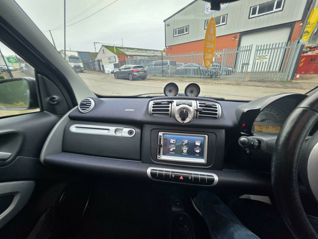PANORAMIC GLASS ROOF !!!! , LOW MILEAGE 47K ONLY !!!! , £20 ANNUAL ROAD TAX , ULEZ COMPLIANCE , SATELLITE NAVIGATION , AIR CONDITION , REAR PARKING SENSORS , FULL SERVICE HISTORY , JUST HAD A FRESH SERVICE , 1 YEAR AND CLEAN MOT , 2 REMOTE KEYS , AUTO, AUX, USB, BLUEOOTH , IN CLEAN CONDITION, 3 to 36 months warranty available , Drive away insurance available, in Greenford Perivale London, all major debit and credit card accepted, finance option available, www.wheels4you.co.uk, All Vehicles Are Subject To A £99.99 Administration Fee, Please give us a call for the delivery options, !! viewing & test drive by appointment only, This 2012 Smart Fortwo MHD Passion is a truly exceptional find, boasting remarkably low mileage for its age at just 47,000 miles. This particular model, powered by an efficient 1.0L petrol engine, comes in the desirable Passion trim. It offers a choice of two panoramic roof options, either a fixed glass roof with a sunblind or an opening panoramic sunroof, allowing you to enjoy the open air. Inside, you'll appreciate the convenience of air conditioning with automatic temperature control and the integrated Bluetooth hands-free system for seamless connectivity on the go.The Smart Fortwo MHD Passion stands out with its impressive fuel economy, achieving an outstanding 66 miles per gallon, which is significantly better than many other vehicles in its class. Furthermore, its low CO2 emissions contribute to a more environmentally friendly drive. This combination of excellent fuel efficiency, low emissions, and thoughtful features makes this Smart Fortwo a smart choice for economical and enjoyable urban motoring. volt socket with cover, 15in 12-spoke alloy wheels, 2 speakers, 2spoke leather steering wheel, air conditioning with automatic temperature control, airbag - full size driver, airbag - full size passenger, anti-lock braking system with electronic brake force distribution, audio system navigation-multimedia highline, automatic hill start assist on uphill slopes, aux-usb, bluetooth hands-free system, central locking with radio remote control, crash elements at front and rear, crash sensor auto switch-on of hazard warning lights, esp - electronic stability programme with hill start assist, electric tailgate release, electric windows, heated rear window, luggage compartment cover - retractable, paint- solid- solid roof, panoramic glass roof with sunblind, panoramic roof, pollen and dust filter, rds radio with 6.5 touchscreen display, tridion safety cell door mirror caps & front grille- black, tridion safety cell door mirror caps & front grille- silver, tridion safety cell, tridion safety cell in silver, ipod interface