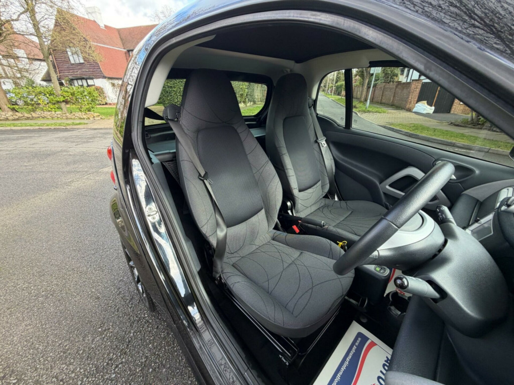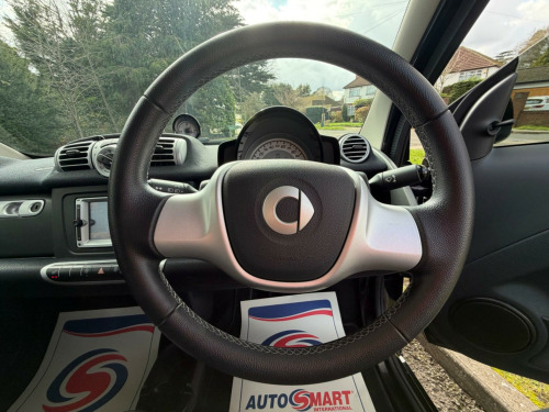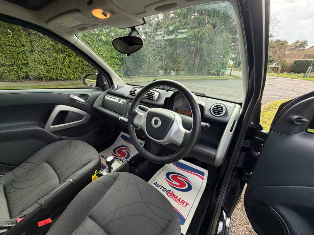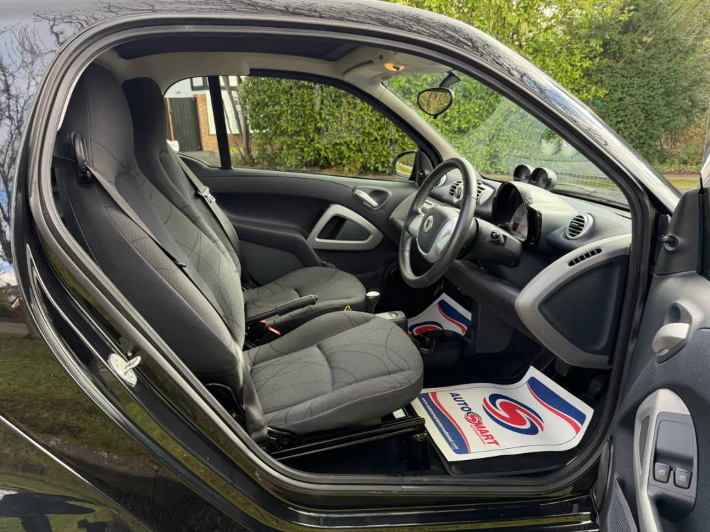 REG NUMBER >(FL62 KVW) This 2012 Smart Fortwo MHD Passion is a truly exceptional find, boasting remarkably low mileage for its age at just 31,750 miles. This particular example, powered by a 1.0L petrol engine, comes in the desirable Passion trim and features a host of premium comforts. Stay cool and comfortable with the air conditioning, complete with automatic temperature and climate control. Enjoy the open air or a bright cabin with the panoramic glass roof, which includes both a fixed sunroof and an opening option, along with a convenient sunblind. For seamless connectivity on the go, the Bluetooth hands free system allows for safe and easy phone calls. The Smart Fortwo MHD Passion stands out with its impressive fuel economy, achieving an outstanding 66 miles per gallon, which is significantly better than many other vehicles in its class. Furthermore, its low CO2 emissions contribute to a more environmentally friendly drive. This combination of excellent running costs and thoughtful features makes this Smart Fortwo a practical and enjoyable choice for navigating city streets and beyond. This car has full service history with the invoices.This vehicle complies with ULEZ regulations in London zones. We offer excellent part-exchange prices, so please Contact us today to book a test drive and find out more about our finance options and warranty options. We offer excellent part-exchange prices, so please contact us before you sell your old car. We also provide nationwide delivery for your convenience. We can arrange video calls with our customers before they visit us in person. We have no hidden fees or charges, and you can check our reviews on our website. Please book an appointment in advance to view our cars, by phone or email, as we operate on an appointment only basis. We look forward to hearing from you.. 12 Volt Socket with Cover, 15in 12-Spoke Alloy Wheels, 2 Speakers, 2Spoke Leather Steering Wheel, Air Conditioning with Automatic Temperature Control, Airbag - Full Size Driver, Airbag - Full Size Passenger, Anti-lock braking system with electronic brake force distribution, Audio System Navigation-Multimedia Highline, Automatic Hill Start Assist on Uphill Slopes, Aux-USB, Bluetooth Hands-Free System, Central Locking with Radio Remote Control, Crash Elements at Front and Rear, Crash Sensor Auto Switch-On of Hazard Warning Lights, ESP - Electronic Stability Programme with Hill Start Assist, Electric Tailgate Release, Electric Windows, Heated Rear Window, Luggage Compartment Cover - Retractable, Paint- Solid- Solid roof, Panoramic Glass roof with sunblind, Panoramic Roof, Pollen and Dust Filter, RDS Radio with 6.5 Touchscreen Display, TRIDION safety cell door mirror caps & Front grille- Black, TRIDION safety cell door mirror caps & Front grille- Silver, Tridion Safety Cell, Tridion Safety Cell in Silver, iPod Interface, Anti theft alarm System, Trip Computer, LED Daytime Running Lights, Alloy Wheel Painting, Cloth- Design- Black, Cup Holder, Heated Seats, Seats - Heated Front, Electric Power Steering, Panoramic roof, Privacy Glass, Touchscreen Satellite Navigation, USB Port, 15in 12spoke R24 Black Alloy Wheels, Tailor Made Large Package, Storage Box. Full service history
