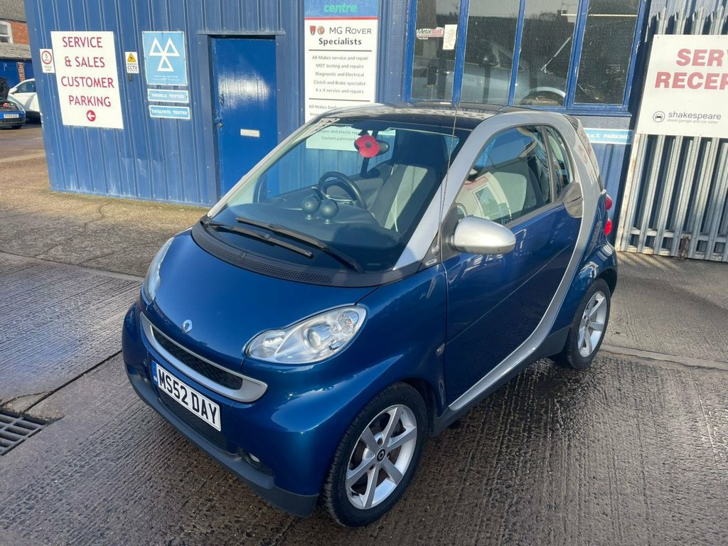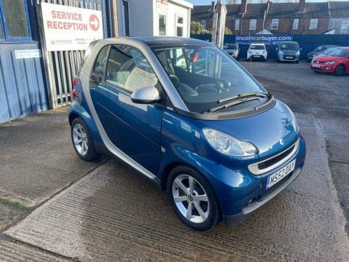 Discover this exceptional Smart Fortwo MHD Pulse from 2010, boasting incredibly low mileage of just 18,786 miles, making it a truly rare find for its age. This particular model is presented in the Pulse trim and features a responsive 1.0L petrol engine. A clear vehicle history check provides peace of mind, confirming its excellent provenance. Maintained with full service history, 2 keys. This Smart Fortwo is designed for efficiency, offering an impressive fuel economy of 63 miles per gallon, which is a significant advantage over many other vehicles. Furthermore, its low CO2 emissions contribute to a more environmentally friendly drive. These highlights demonstrate how this Smart Fortwo stands out, offering both economical running costs and a compact, city friendly driving experience. HPI Clear, Finance is available for most circumstances ask for a no obligation quote. For peace of mind, this car comes with a 3-month Warranty and a comprehensive Pre-Collection Inspection. Serviced recently at 18,066 miles. Local delivery is available. We've been established over 40 years so buy from us with confidence. We are open 5 Days a week - Monday to Friday 8:30 - 6, Saturday/Sunday by Appointment, for full details and to arrange your viewing and test drive please call 01522 523158/01522 543148. All our vehicles must pass an extensive 1-hour check before we purchase into stock. Please feel free to read our 5* reviews from our other happy customers and we look forward to hearing fro Metallic Blue, Front FogLights, Panoramic Glass roof with sunblind, 15in 6Spoke Alloy Wheels, 2 Speakers, Paint- Solid- Solid roof, Smart Radio nine Radio & CD player, TRIDION safety cell door mirror caps &am, TRIDION safety cell door mirror caps &am