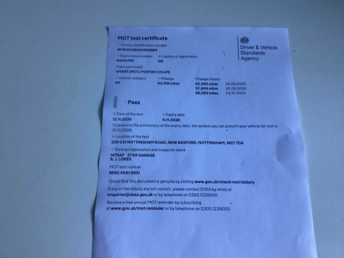 This 2012 Smart fortwo 1.0 MHD Pulse SoftTouch Euro 5 (s/s) 2dr Coupe is currently available for £3,500 in Nottingham Nottinghamshire with Petrol engine and Automatic gearbox. For more information or to arrange a viewing, click here to send us an email using form below.