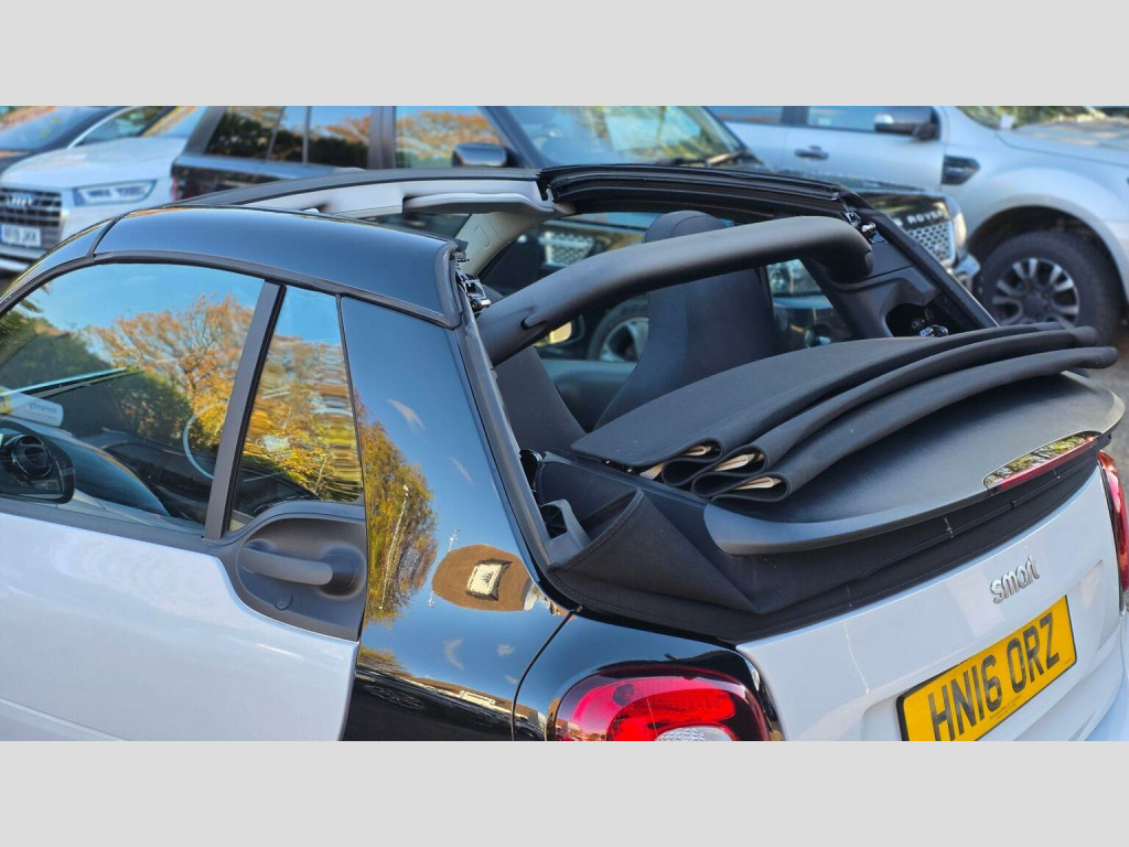 This 2016 Smart fortwo 1.0 Passion Cabriolet Twinamic Euro 6 (s/s) 2dr Convertible is currently available for £8,799 in Epping Essex with Petrol engine and Auto Clutch Manual gearbox. For more information or to arrange a viewing, click here to send us an email using form below.