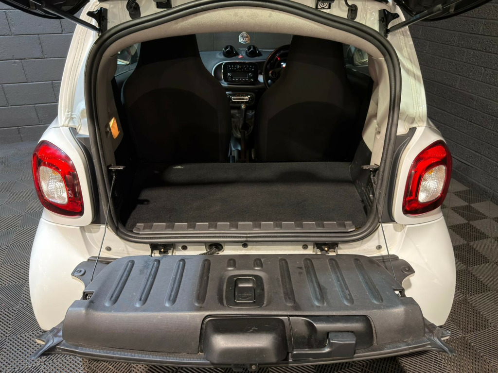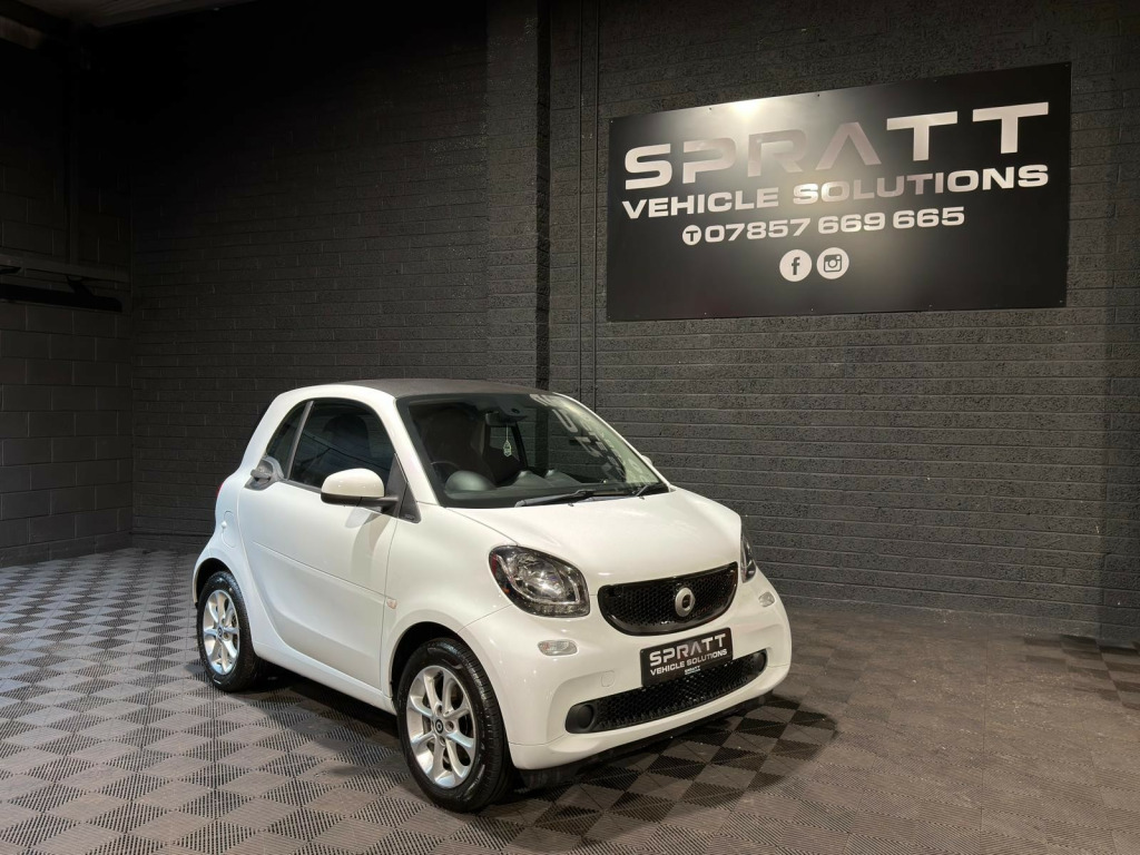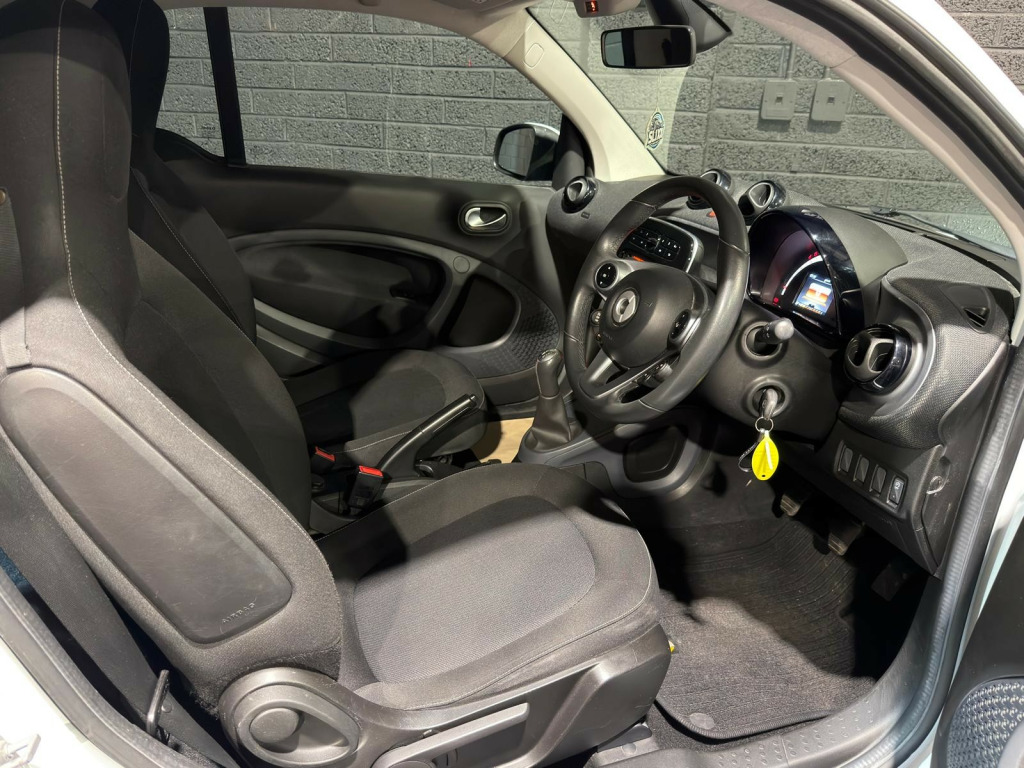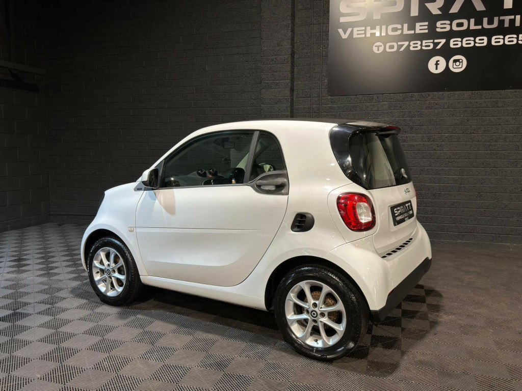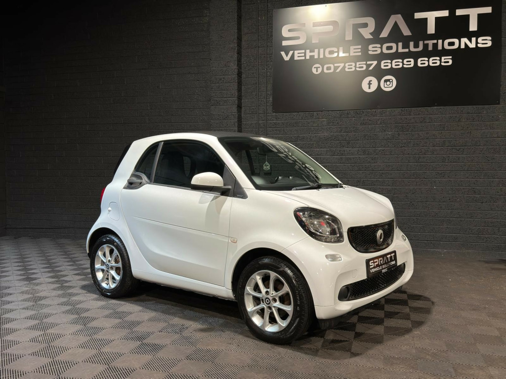 This 2018 Smart Fortwo Passion is the ideal compact runaround - stylish, economical and incredibly easy to drive. Perfect for city driving, commuting or as a second car.Key details:1.0L Petrol EngineUltra Low Running CostsExcellent MPGLow Insurance GroupSpecification:Alloy WheelsTouchscreen Infotainment SystemBluetooth ConnectivityAir ConditioningCruise ControlMultifunction Steering WheelElectric Windows & MirrorsRemote Central LockingPrice - £4,995 or 129.82 p/mSVS FlexiPay - Alloy wheel packages, splitter kits, towbars, roof rails. Spread the cost over 4 months - 0% interestIntroducing SVS Assist - Complete Peace of Mind with Every VehicleAt Spratt Vehicle Solutions, we go beyond just sales and servicing.With SVS Assist, you're covered long after you leave our forecourt.Comprehensive Warranty Cover - Protects you against unexpected repair costsNationwide Breakdown Recovery - 24/7 assistance anywhere in the UKCourtesy Vehicle Options - Keep moving while we handle the restRoadside & Home Start Support - We're there whenever you need usEasy Claims Process - Hassle-free and handled directly through SVSCall the sales team todayAndrew - 07885704784Ryan - 07857669665 volt socket with cover, smart audio-system, 15in alloy wheels - 8-spoke painted in silver, black front grille, breakdown kit with air compressor and sealant, door mirror caps in tridion colour, door mirror with aspherically curved mirror glass on driver side, electric windows, radiator trim - black, rear spoiler, rear windscreen - heated with timer control, tridion safety cell in black solid paint, abs - anti lock braking system, airbag - kneebag for driver, airbags - driver and passenger, airbags - sidebags for driver and front passenger - combined head and thorax, brake assist, central locking with radio remote control - visual locking-verification signal, crash sensor for activation of hazard warning lights, crosswind assist, drive lock - automatic door locking when the vehicle is in motion, esp - electronic stability programme, hill start assist, isofix child seat attachment point on passenger seat, pedestrian impact protection front and side, rear windscreen wiper with intermittent wiper and automatic wipe - wash function, seat belt reminder for driver and passenger, seat belts - three-point with seat belt tensioners and belt force limiters, automatic climate control, central locking with convenience closing features, centre console with pull-out tray and double cup holder, dashboard and door centre panel - black fabric, folding key, gearshift lever - trimmed in leather, inside door opener - matt chrome, instrument cluster with multi functional colour 3.5in display, interior lighting, load-lashing eyes in luggage compartment, lockable glove compartment, lockable service bonnet, luggage compartment cover, luggage compartment lighting, map pocket - driver and passager seatbacks, passenger seat with through - loading function - flat-folding seatback, steering wheel - 3- spoke multi-function - leather, storage compartment in front doors, storage compartment in tailgate, vanity mirror in sun visors with parking ticket holder for driver and passenger, white side indicators, cruise control with speedtronic variable speed limiter, direct-steer system with speed sensitve power assistance and variable steering ratio, exterior temperature indicator with frost warning, onboard computer, tyre pressure monitoring system, voice recognition for smartphones with siri and google, headlights - h4 halogen, led daytime running lights, tail lights, third rear brake light