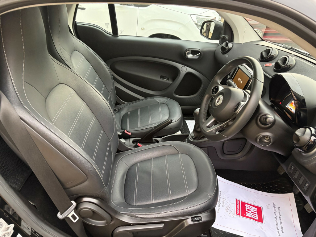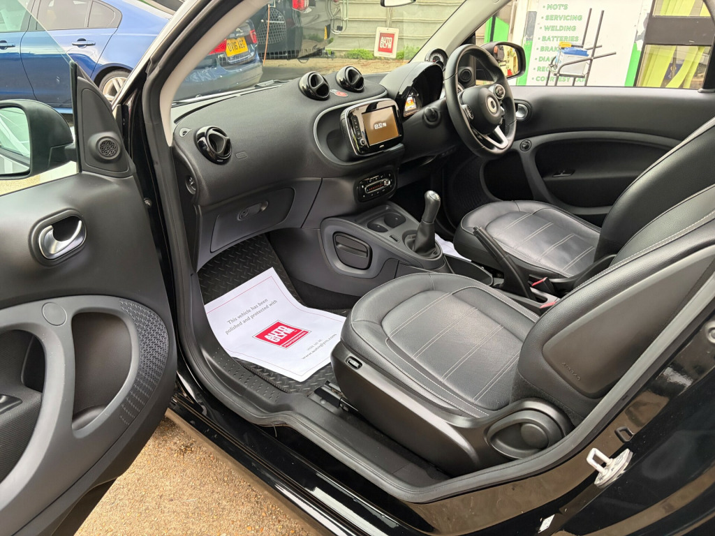 This 2016 Smart ForTwo 1.0 Prime (Premium) Coupe with only 36469 miles on the clock is a sleek and stylish 2-door, 2-seater coupe that runs on petrol and is ULEZ compliant. With MOT valid until 09/11/2026, this Euro 6 (s/s) engine with 71 ps is not only efficient but also powerful. The exterior features 15in Alloy Wheels and a Black Front Grille, while the interior comes with a 12 Volt Socket, Breakdown Kit with Air Compressor and Sealant, and Door Mirror Caps in Tridion Colour. Whether you're cruising around the city or embarking on a long drive, this Smart ForTwo is a reliable and luxurious choice for any driver seeking comfort and style on the road. volt socket with cover, 15in alloy wheels - 5-twin-spoke painted in black with a high-sheen finish, black front grille, breakdown kit with air compressor and sealant, door mirror caps in tridion colour, door mirror with aspherically curved mirror glass on driver side, electric windows, panoramic roof with sun protection, radiator trim - black, rear spoiler, rear windscreen - heated with timer control, tridion safety cell in black solid paint, abs - anti lock braking system, airbag - kneebag for driver, airbags - driver and passenger, airbags - sidebags for driver and front passenger - combined head and thorax, brake assist, central locking with radio remote control - visual locking-verification signal and folding key, crash sensor auto switch-on of hazard warning lights, crosswind assist, drive lock - automatic door locking when the vehicle is in motion, esp - electronic stability programme, hill start assist, isofix child seat attachment point on passenger seat, pedestrian impact protection front and side, rear windscreen wiper with intermittent wiper and automatic wipe - wash function, seat belt reminder for driver and passenger, seat belts - three-point with seat belt tensioners and belt force limiters, automatic climate control, centre console with pull-out tray and double cup holder, cool and audio package with automatic climate control, dashboard instruments with cockpit clock and rev counter, dashboard and door centre panel - black fabric, gearshift lever - trimmed in leather, grab handle for front passenger, heated seats for driver and front passenger, instrument cluster with multi functional colour 3.5in display, interior door handle - matt chrome, interior lighting, load-lashing eyes in luggage compartment, lockable glove compartment, lockable service bonnet, luggage compartment cover, luggage compartment lighting, map pocket - driver and passager seatbacks, passenger seat with through - loading function - flat-folding seatback, premium equipment line, steering wheel - 3- spoke multi-function - leather, storage compartment in front doors, storage compartment in tailgate, sunglasses holder, vanity mirror in sun visors with parking ticket holder for driver and passenger, white side indicators, cruise control with speedtronic variable speed limiter, direct-steer system with speed sensitve power assistance and variable steering ratio, exterior temperature indicator with frost warning, onboard computer, tyre pressure monitoring system, headlights - h4 halogen, led daytime running lights, tail lights, third rear brake light