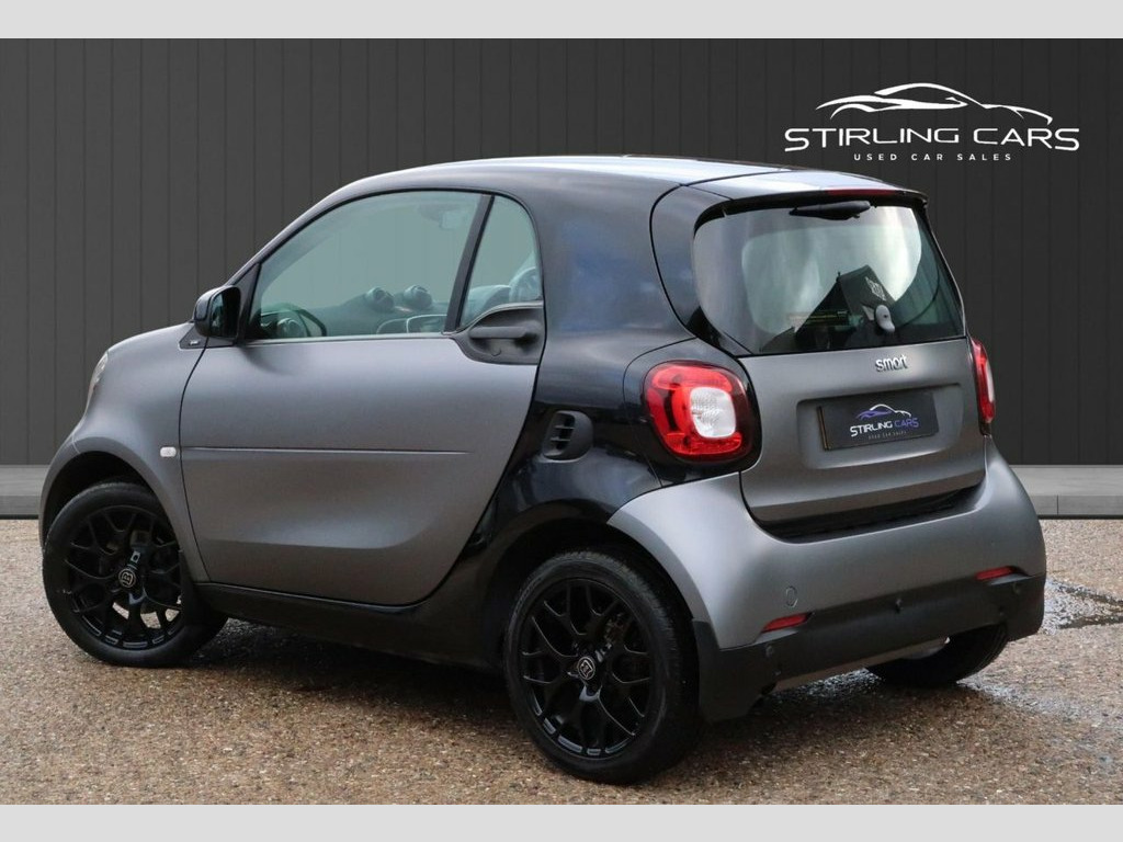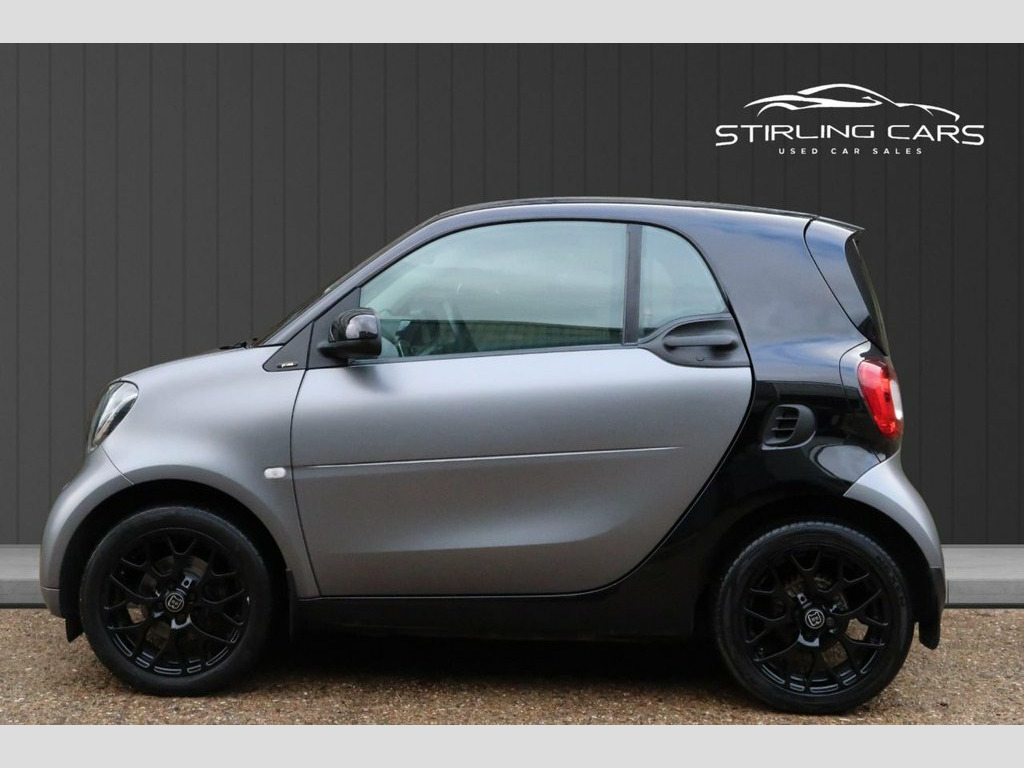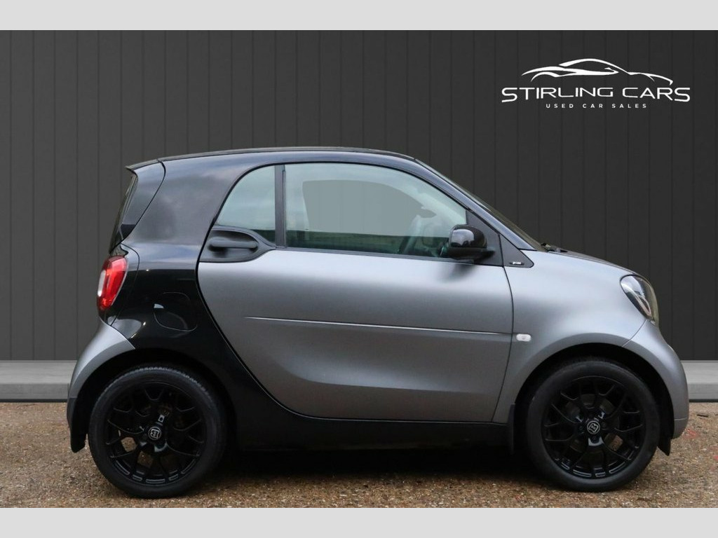 2018 (18) Smart Fortwo 1.0 Prime Premium Twinamic, Euro 6, 71 ps. Finished in factory Matt Grey with gloss black alloys and Brabus alloy centre caps, giving the car a distinctive and sporty look. Comes with two keys, two previous owners, MOT, warranty and recent maintenance including new pads and discs. This example is well equipped with a panoramic roof, heated leather seats, cruise control, DAB radio, Bluetooth, media system and rear parking sensors, making it ideal for both city use and everyday driving. The Twinamic automatic gearbox provides smooth, effortless performance, and the compact size ensures easy parking and manoeuvrability. A stylish and well-kept Smart Fortwo in a sought-after colour combination with premium features throughout. Excellent fuel economy, low running costs and ready to drive away. DAB - Digital Radio, 12 Volt Socket with Cover, 15in Alloy Wheels - 5-Twin-Spoke Painted, ABS - Anti Lock Braking System, Airbag - Kneebag for Driver, Airbags - Driver and Passenger, Airbags - Sidebags for Driver and Front , Automatic Climate Control, Black Front Grille, Brake Assist, Breakdown Kit with Air Compressor and Se, Central Locking with Convenience Closing, Central Locking with Radio Remote Contro, Centre Console with Pull-Out Tray and Do, Comfort Package, Crash Sensor for Activation of Hazard Wa, Crosswind Assist, Cruise Control with Speedtronic Variable, Dashboard Instruments with Cockpit Clock, Dashboard and Door Centre Panel - Black , Direct-Steer System with Speed Sensitve , D