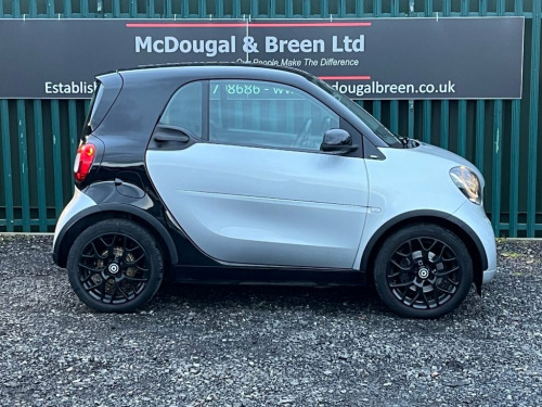 Experience urban driving at its finest with the SMART FORTWO 1.0 Prime Sport Premium, now available at McDougal & Breen. This sleek, compact city car combines eye-catching sporty style with premium comfort, featuring a refined interior, advanced tech, and agile handling perfect for navigating tight streets or making a bold statement on the open road. With its efficient 1.0-litre engine, impressive maneuverability, and top-tier build quality, the Prime Sport delivers both fun and practicality in one standout package. Visit McDougal & Breen today and discover how big personality fits into a beautifully small design. You can buy with confidence when visiting this family run business! We offer a no pressure relaxed experience for your next big purchase at our site in Benton. Pay us a visit, read the reviews, you won't be disappointed. All vehicles receive/come with: 125 Point Pre Delivery Inspection as Part of our - AA Promise 12 Months Free AA Assistance 3 Months - McDougal and Breen Ltd Repair Agreement (12 Month Extended Warranty Available) 6 Months or more MOT (Less than 6 months receives a new MOT) All MOT Advisories taken care of Serviced Up to Date Amazing rates of Finance on Our Hire Purchase and PCP Products All vehicles FULLY prepared in our State of The Art Facilities with OE Spec Branded Parts Full Valet Give us a call or pop in, you won't be disappointed. After you discover how good our service is you will never buy a car anywhere else! K 12 Volt Socket with Cover, 16in Alloy Wheels - 8-Y-Spoke Painted Bl, 3-Spoke Multi-Function Sports Steering W, ABS - Anti Lock Braking System, Airbag - Kneebag for Driver, Airbags - Driver and Passenger, Airbags - Sidebags for Driver and Front , Automatic Climate Control, Black Front Grille, Brake Assist, Breakdown Kit with Air Compressor and Se, Brushed Stainless Steel Sports Pedals wi, Central Locking with Convenience Closing, Central Locking with Radio Remote Contro, Centre Console with Pull-Out Tray and Do, Comfort Package, Crash Sensor for Activation of Hazard Wa, Crosswind Assist, Cruise Control with Speedtronic Variable, Dashboard Instruments with Cockpit Clock, Dashboard and Door Cen