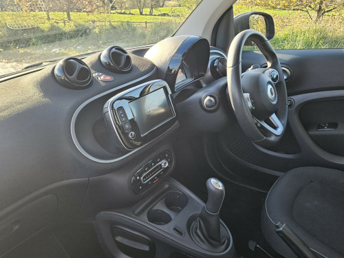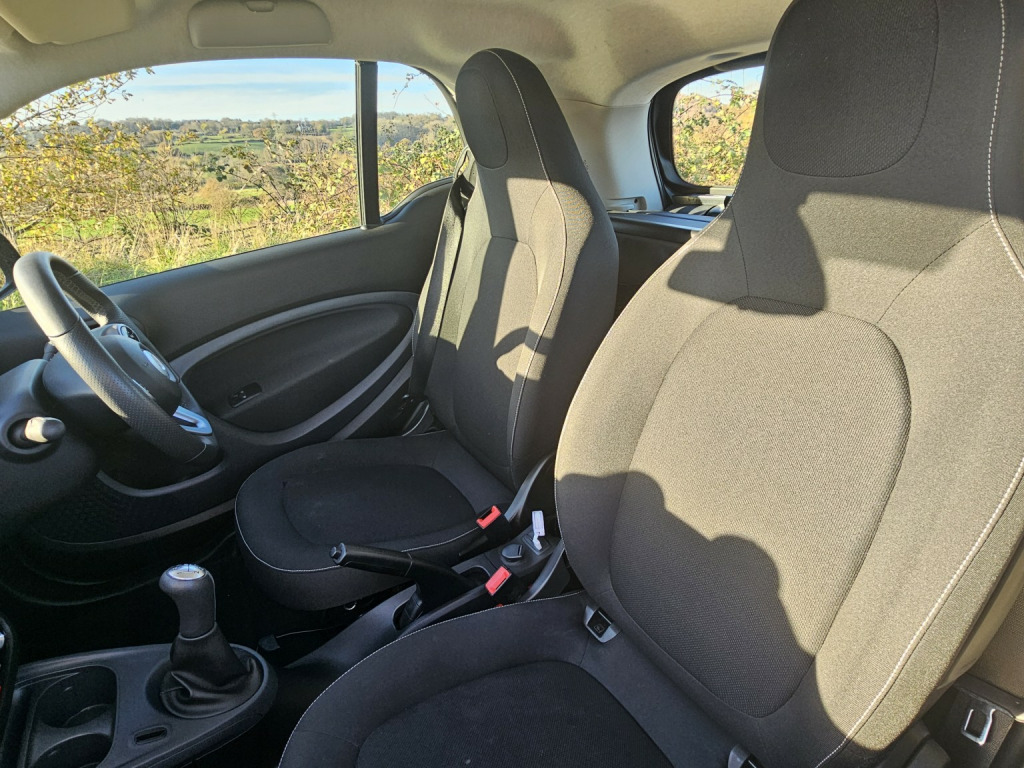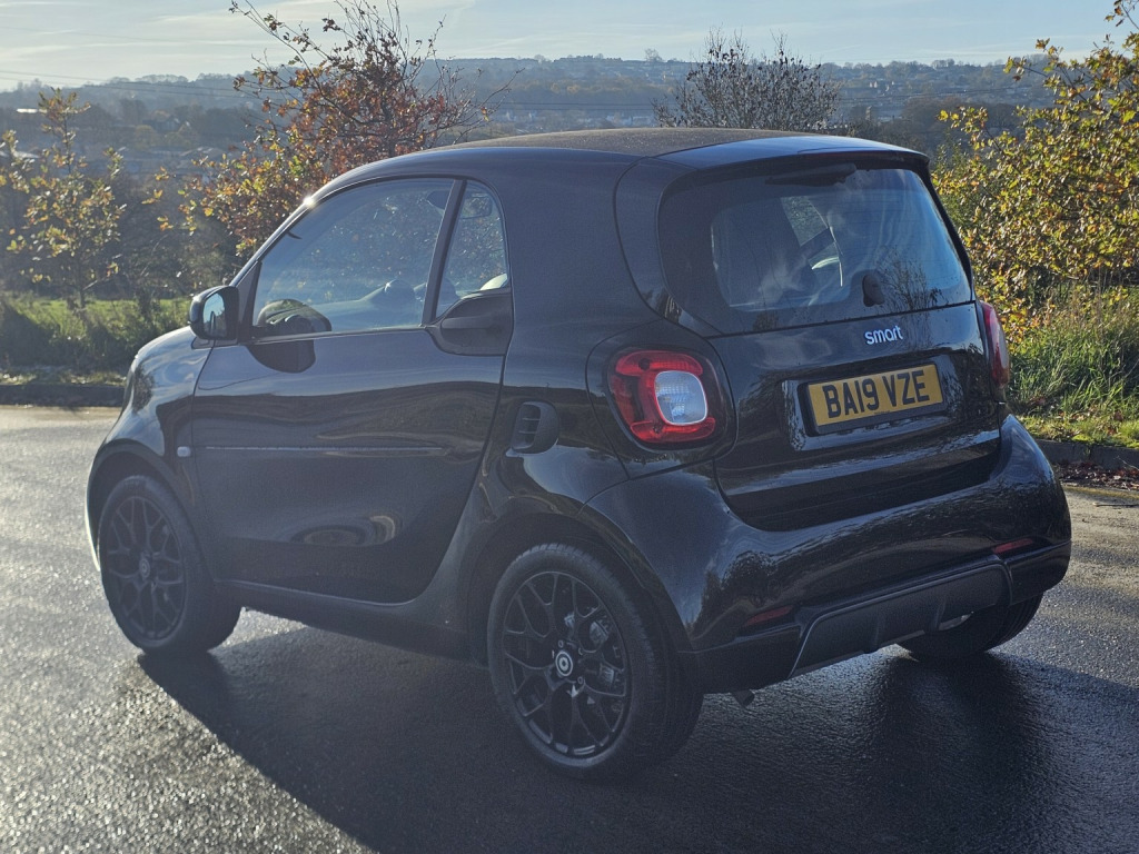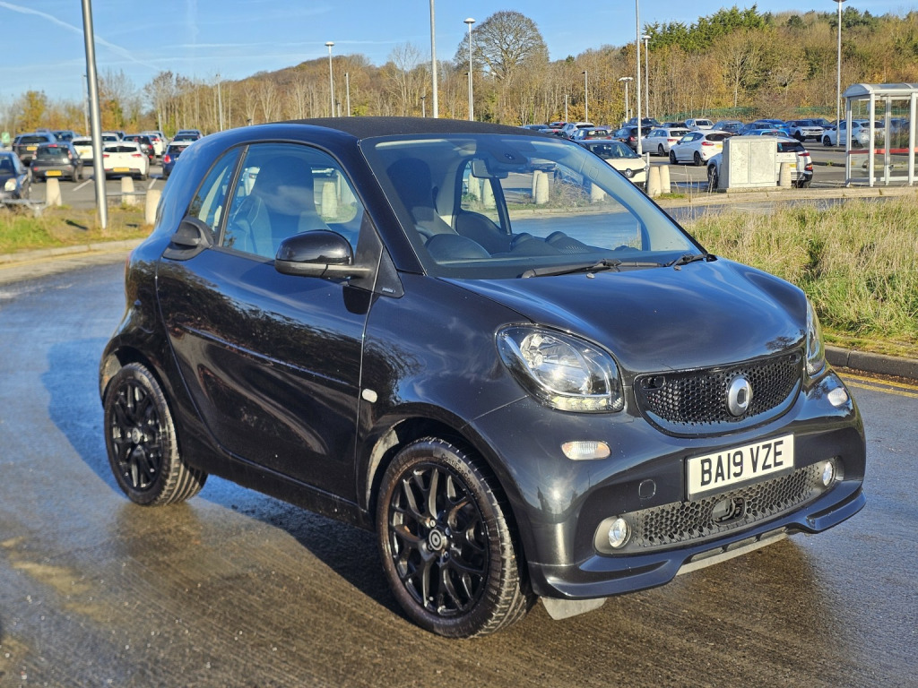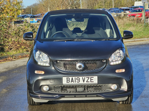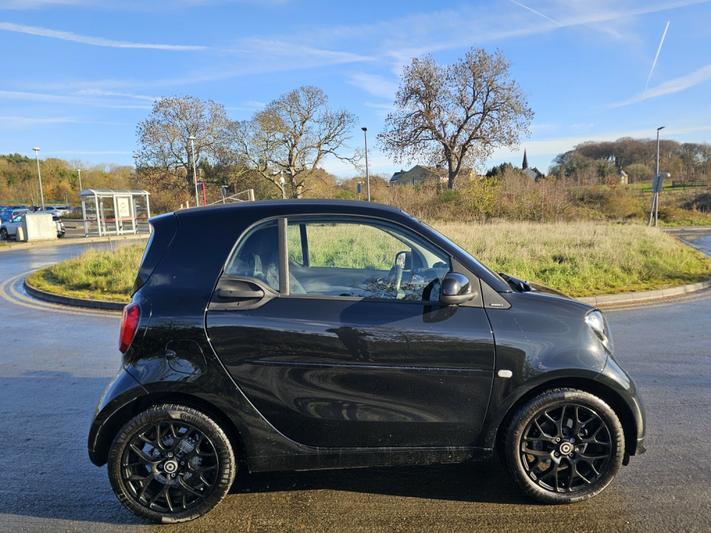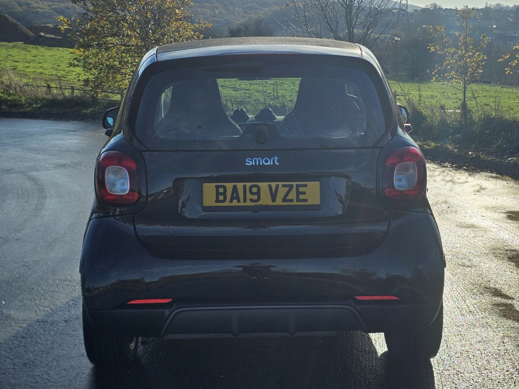 * Smart for two, * 1.0 Urban shadow Edition, * 2019 19 plate, * Only 7600 miles, * Air conditioning,, * Turning Circle: 6m, * 16-inch 8-Y-spoke alloy wheels painted black, * Black radiator trim, * Electric windows & mirrors, * Bluetooth phone / DAB, * Rear spoiler, and a black Tridion safety cell. * 3-spoke multi-function leather steering wheel, * Black fabric on the dashboard and door centre panel, * Smart Media-System with a 7-inch multitouch display, * Front fogs, * Passenger isofix seat, * Service history , * 1 owner
