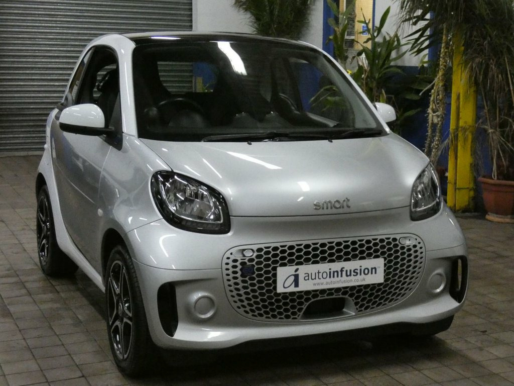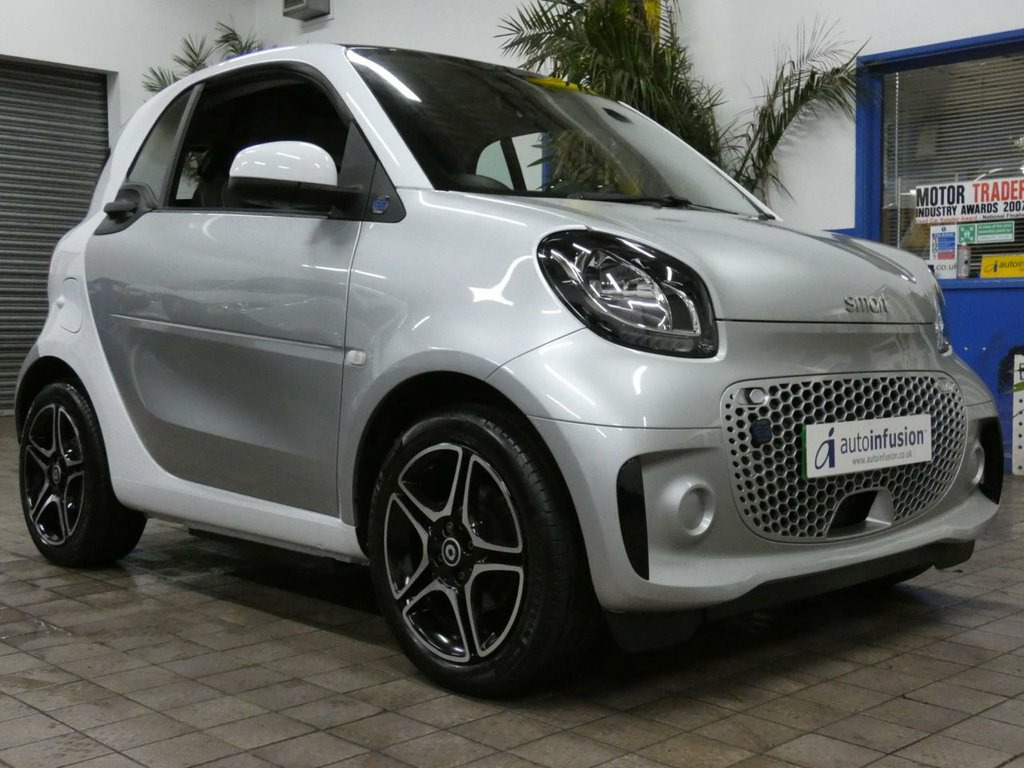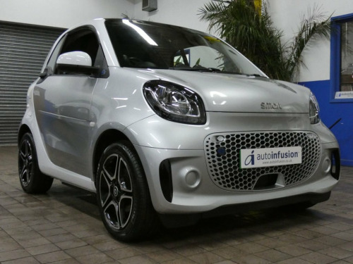 This 2021 Smart Fortwo Premium electric vehicle presents an exceptional ownership proposition with its remarkably low mileage of just 7109 miles, a testament to its careful use by its single owner. This compact electric car boasts a 18 kWh battery offering a maximum range of 81 miles when new, and benefits from a convenient full home charging time of only 3 hours and 46 minutes using a 7kW charger. For your peace of mind, the MOT is valid until September 2026, Service history 2 services to 5, 879 miles Nov 2024. Inside, you'll find a host of desirable features designed to enhance your driving experience. The Smart Media System seamlessly integrates your smartphone with Android Auto and Apple CarPlay, while Bluetooth connectivity keeps you connected on the go. Stay comfortable in all conditions with Automatic Climate Control and enjoy the open air with the Panoramic Roof and its accompanying Sun Blind. Both driver and front passenger can appreciate the comfort of Heated Seats. Navigating tight spaces is made easier with the Rear Parking Aid, which includes an acoustic warning and a reversing camera. These features collectively highlight how this Smart Fortwo Premium offers a superior and more convenient driving experience compared to other vehicles in its class. Autoinfusion Ltd, is a family run business with over 30 years motoring experience. On our website you will find our vehicles are generally advertised with upto 100 exterior and interior pictures, 360 interior im 12 Volt Socket with Cover, 16in Alloy Wheels - 5-Twin-Spoke Painted, 22kW Onboard Charger, 3-Spoke Multifunction Sports Steering Wh, ABS - Anti-Lock Braking System with Elec, Access to Smart EQ Control - 3 Years Fro, Acoustic Presence Indicator, Active Brake Assist with Autonomous Brak, Airbag - Kneebag for Driver, Airbag - Side Airbags for Driver and Fro, Airbag - Window - Driver and Passenger, Airbags - Driver and Passenger, Automatic Climate Control, Backrest Adjustment with One-Touch Funct, Boot Lighting, Breakdown Kit with Air Compressor and Se, Brushed Stainless Steel Sports Pedals wi, Central Locking with Radio Remote Contro, Centre Console with Roller Cover and Cen, Charging Cable -