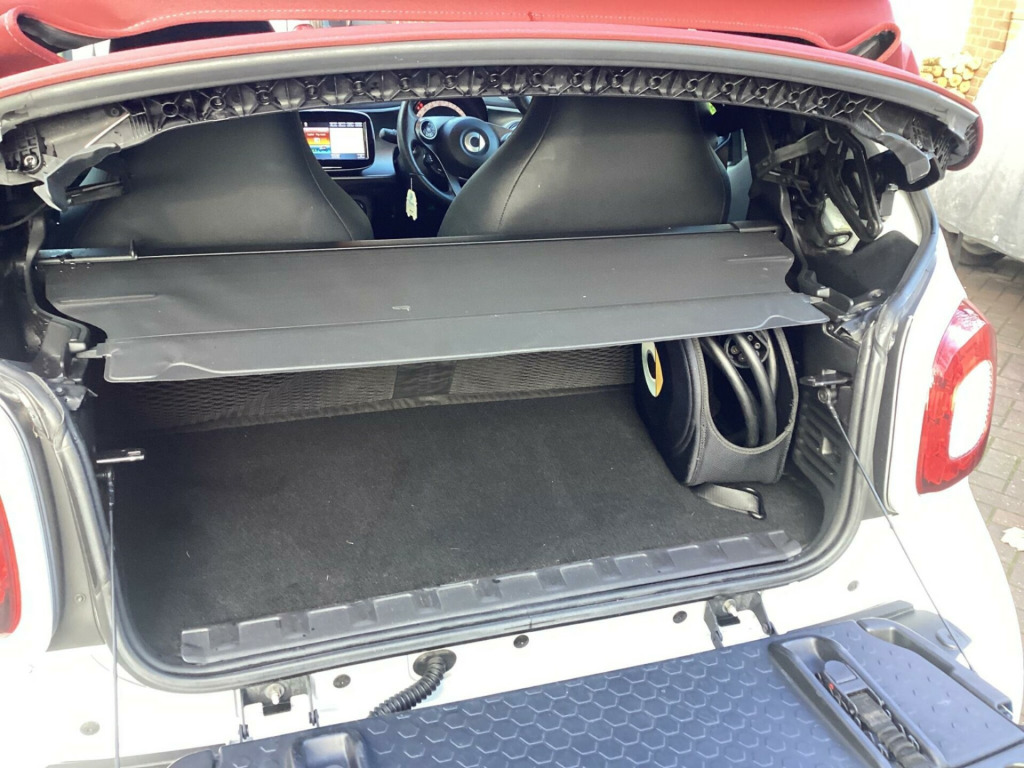 Lovely clean car inside and out, the car has clearly been cherished and not abused. Top Specification car. Seven services . Two keys. Six months Momentum warranty with free breakdown recovery. Please read my Autotrader reviews and buy with confidence. More available Smarts on my website. volt socket with cover, 15in alloy wheels - 5-twin-spoke painted in black with a high-sheen finish, 22kw onboard charger, abs - anti-lock braking system with electronic brake force distribution, active brake assist with autonomous braking function, airbag - kneebag for driver, airbags - driver and passenger, airbags - sidebags for driver and front passenger - pelvis-thorax bag, ambient lighting, breakdown kit with air compressor and sealant, central locking with radio remote control - visual locking-verification signal and immobiliser, centre armrest, centre console with drawer and double cupholder at front - cupholder at rear, charging cable - household socket, charging cable - wallbox-public charging stations, charging cable bag, charging cable package, comfort windscreen wipers with intermittent wiper control and automatic wipe-wash function, crash sensor for activation of hazard warning lights, crosswind assist, cruise control with limiter - variable speed limitation, dab - digital radio, dashboard instrument - battery charge status and power indicator, dashboard and door centre panels in black fabric and accent trim parts in black-grey, direction indicators with lanechanger function, door mirror caps in tridion colour, door mirror with aspherically curved mirror glass on driver side, door mirrors - electrically adjustable and heated - drivers, drive lock - automatic door locking when the vehicle is in motion, esp - electronic stability programme, electric power steering, electric tritop fabric soft top in black - fully automatic with glass rear window and inside roof lining in black, electric windows with convenience feature and obstruction sensor, exterior temperature indicator with frost warning, front fog lamps with cornering function, front passenger seat with through-loading function - fully-folding backrest, gearshift lever knob in leather - chrome, headlamp range adjustment - manual, headlamps with led light guide and led tail lights, heated seats for driver and front passenger, height adjustable steering column, hill start assist, inside door opener - matt chrome, instrument cluster with 3.5-inch colour tft display and trip computer, interior lighting, lockable glove compartment, mirrorlink, multifunction steering wheel in leather in a 3-spoke design steering wheel bezel in anthracite, painted door handles - body colour, parking assistance - rear, parking assistance - rear view camera, radiator trim - grained black, rain-light sensor, reading light for driver and passenger, rear windscreen wiper with intermittent wiper and automatic wipe - wash function, seat belt reminder for driver and passenger, seat belts - three-point with seat belt tensioners and belt force limiters, smart control, smart media-system, smart road assistance, storage compartment in front doors, storage compartment in tailgate, storage net on console and handbag attachment point on front passenger seat, summer tyres, sun visor for driver with parking ticket holder and front passenger, sunglasses holder, third brake light featuring led technology, tyre pressure monitoring system, vanity mirror in sun visor for driver and front passenger, white side indicators, window bag, i-size child seat attachment system on front passenger seat with manual airbag deactivation