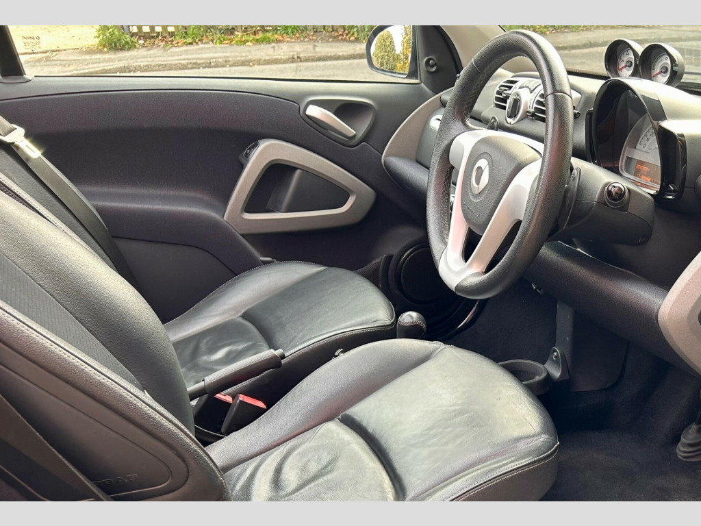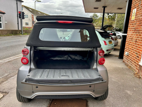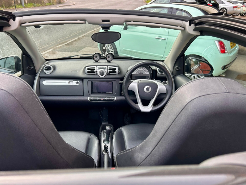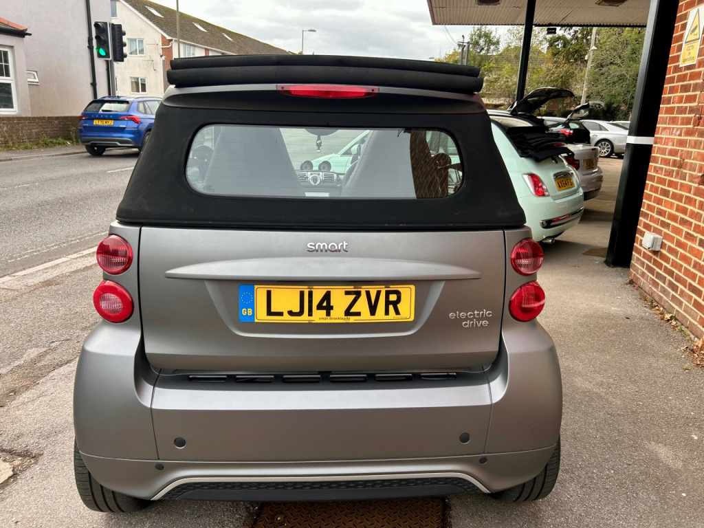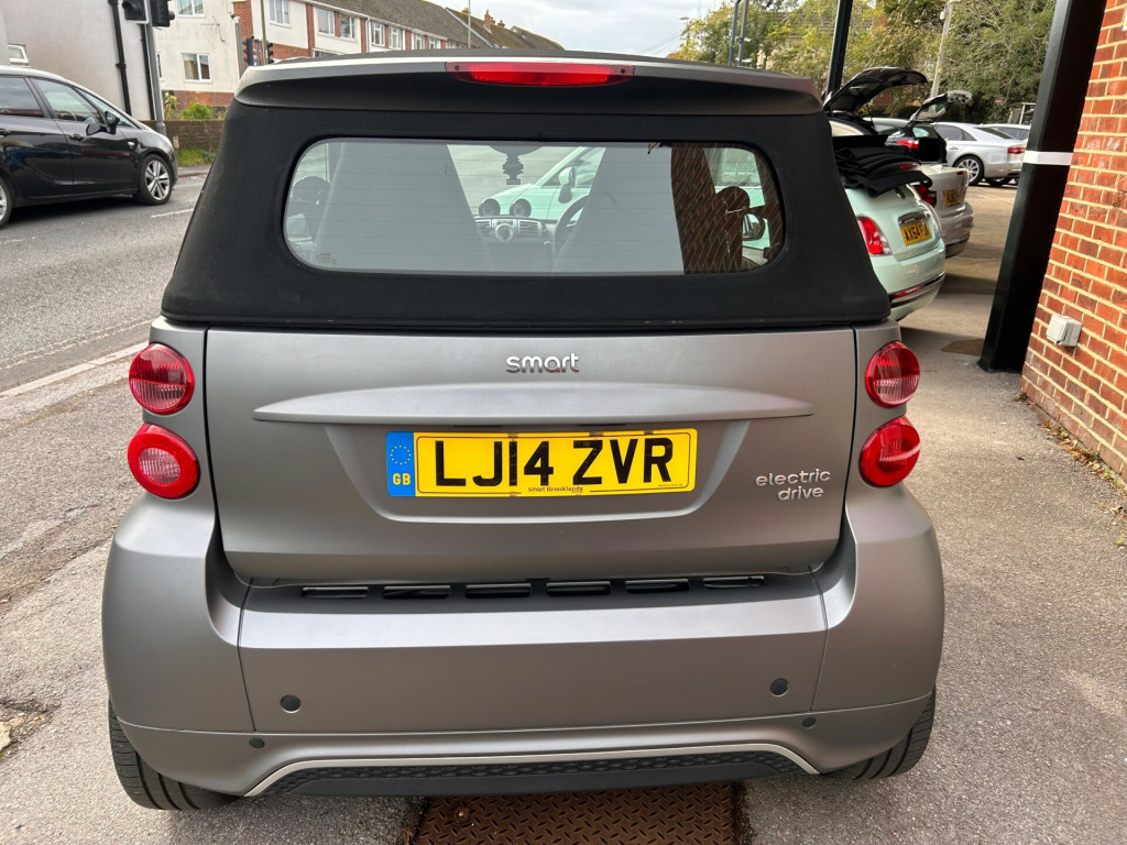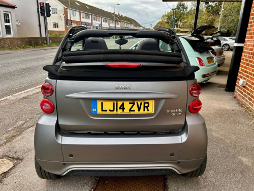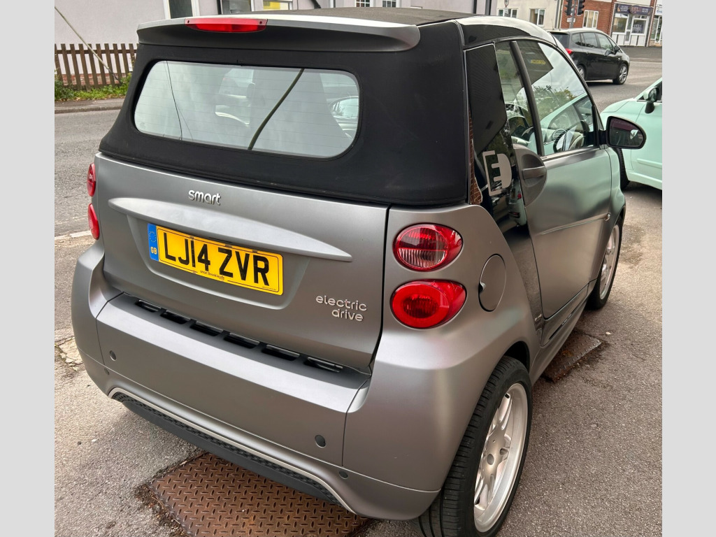 This 2014 Smart ForTwo Electric Drive Cabriolet with 27000 miles on the clock is the perfect choice for eco-conscious urban drivers, offering a fun and stylish way to get around town. With its electric motor and convertible top, this 2-seater is not only ULEZ compliant but also a joy to drive. The MOT is valid until 25/07/2026, giving you peace of mind. Its sleek design is complemented by features such as a 6.5-inch touchscreen display, audio system navigation, Bluetooth hands-free system, and a 12-volt socket with cover for added convenience. With 2 doors and an efficient 74 bhp electric auto engine, this Smart ForTwo is a smart choice for city living. Or just for fun!   volt socket with cover, 6.5in touchscreen display, audio system navigation-multimedia highline, aux-usb, bluetooth hands-free system, cd-dvd-sd player, rds radio, speakers x2, vehicle networking via communication module - information and control various functions, ipod interface, 15in alloy wheels - 9-spoke, body panel plus package - front-rear apron and side skirts in body panel colour, door mirrors - caps in silver, electric drive logo in mirror triangle and rear cap, electric windows, fuel filler cap finished in body panel colour, headlight range adjustment, headlights - h7 projection, heated rear window, silver grille surround, tritop roof in black, abs - anti lock braking system, airbag - full size driver, airbag - full size passenger, airbag - manual deactivation, airbag - side for head-thorax, automatic hill start assist on uphill slopes, central locking with radio remote control, crash elements at front and rear, crash sensor auto switch-on of hazard warning lights, drive lock - automatic door locking when the vehicle is in motion, ebd - electronic brake force distribution, esp - electronic stability programme with hill start assist, hydraulic brake assist, hydraulic dual-circuit brake system with servo assistance, isofix child seat fastener, immobiliser, safety seats with integral seat belts, seat belts with belt tensioners and belt force limiters, tank cap integrated in the central locking system, tridion safety cell in silver, air conditioning with automatic temperature control, comfort windscreen wipers with speed sensitive interval wiping and automatic wipe-wash, contrast components in pearl black, electric tailgate release, fabric elements on instrument panel-door trim-knee pad, gear knob - leather, indicators with lane-changer function, instrument cluster with multi functional display, interior lighting, lockable glove compartment with terminal strip, luggage compartment cover - retractable, net bags in doors and sides of seat backrests, passenger seat backrest foldable down for through loading, pollen and dust filter, pre-entry climate control of the interior during charging process, remote roof release via 3-button key, steering wheel - 2-spoke-leather, storage compartment in tailgate, storage compartments on passenger side and next to steering wheel, white side indicators, charging cable - household socket, charging cable - wallbox-public charging stations, electric power steering, exterior temperature indicator with frost warning, mode 2 charging cable - household socket, mode 3 charging cable - wallbox-public charging stations, trip computer, third rear brake light