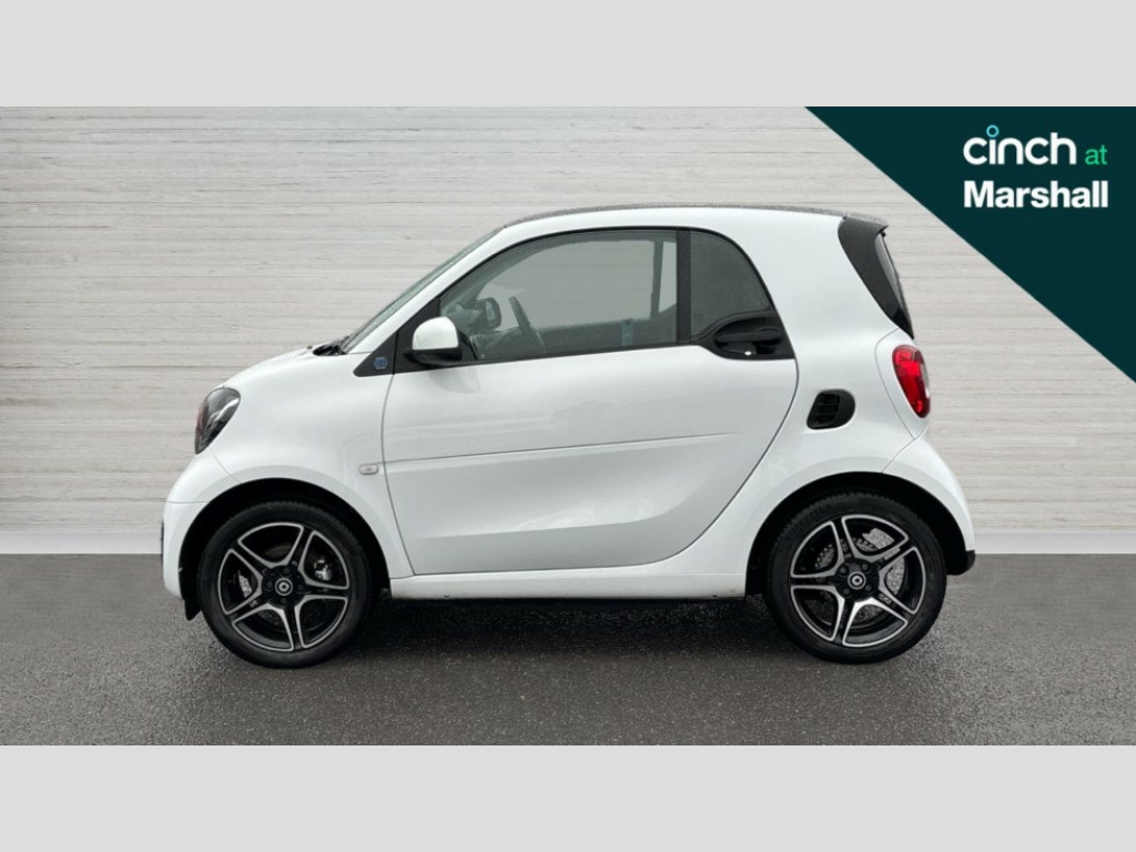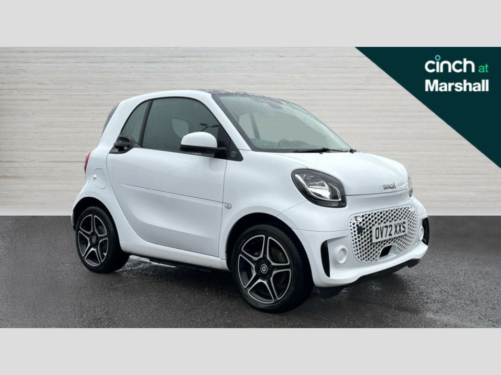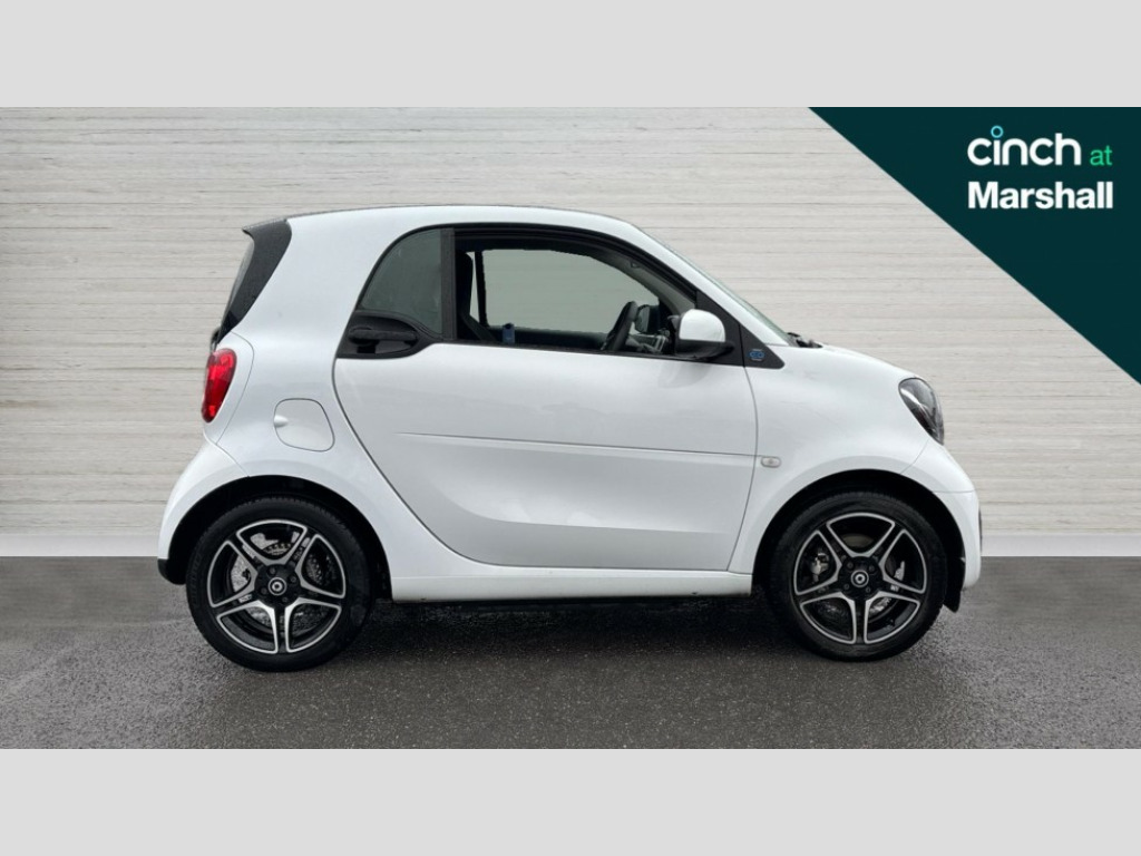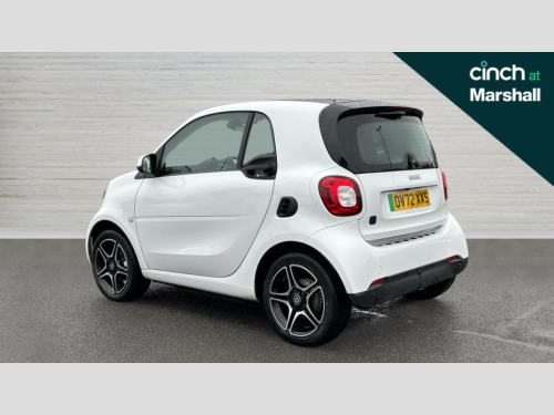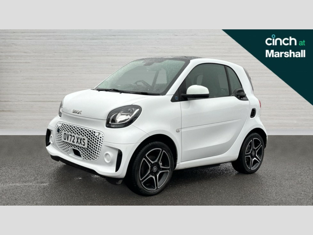 Smart Fortwo Coupe 60kW EQ Pulse Premium 17kWh 2dr Auto [22kWCh] Acoustic presence indicator, Crosswind Assist, Cruise control with speedtronic variable speed limiter, Dashboard instrument with battery charge status and power indicator, Electric power steering, Exterior temperature indicator with frost warning, Instrument cluster with multifunctional 3.5 inch colour TFT display and trip computer, Rear park assist, Rear view camera, 22kW onboard charger, Charging cable for household socket, Charging cable for wall box/charging stations, Single speed transmission, Smart Connect Media-System, 8" touchscreen display, Bluetooth audio streaming with hands-free, Android Auto/Apple CarPlay, DAB, AUX/USB, 2 speakers, Body colour radiator grille, Comfort front windscreen wiper with intermittent wiper control and automatic wipe/wash function, Door mirror with aspherically curved mirror glass on the driver's side, Driving mirrors in tridion colour, Electric front windows with convenience feature and obstruction sensor, Electrically adjustable and heated door mirrors, Fixed panoramic roof with sun protection, H4 halogen headlamps with integrated LED daytime driving lights, Heated rear window, Lockable service cover, Manual headlamp range adjustment, Rear window wiper with intermittent wiper control and automatic wipe/wash function, Roof antenna, Third brake light featuring LED technology, Tritop fabric soft top - Black, White side indicators, 12V socket with cover, 3 spoke leather multifunction Sports steering wheel with anthracite bezel, Automatic climate control, Backrest adjustment with one-touch function for driver and front passenger, Black leather gear lever knob, Boot light, Brushed stainless steel sports pedals with rubber studs, Centre console with roller cover and folding front armrest, Charge cable bag, Dashboard and door centre panel in black fabric and accent trim in black/grey, Driver/front passenger reading lights, Driver/front passenger sunvisors with ticket holder, Fabric upholstery with white double stitching, Front head restraints, Front passenger seat item retaining strap, Front passenger seat with through loading function with fully folding backrest, Glasses compartment for driver and front passenger, Height adjustable driver seat, Height adjustable steering column, Isofix child seat attachment, Lockable glove compartment, Luggage compartment roller cover with mesh bag, Matt chrome interior door opener, Roof lining- black, Storage compartment in front doors, Storage compartment in tailgate, Stowage net on centre console, Vanity mirrors, Winter pack - ForTwo, Active brake assist with autonomous braking function, Airbag deactivation switch, Airbags - kneebag for driver, Airbags - sidebags for driver and front passenger (combined pelvis/thorax airbags), Airbags - windowbags, Anti-lock Braking System (ABS) with Electronic brake force distribution, Crash sensor for activation of hazard warning lights, Driver/Front Passenger airbags, Electronic Stability Programme, Hill start assist, Seat belts - Three-point, with seat belt tensioners and belt force limiters, Tyre pressure monitoring system, Central locking with radio remote control + visual locking verification signal and immobiliser, Drive lock - automatic door locking when driving, Folding key with remote control (Second key with fixed bit), 16" 5 twin spoke alloy wheels painted in black with high sheen finish, Breakdown kit with air compressor and sealant back, Summer tyres