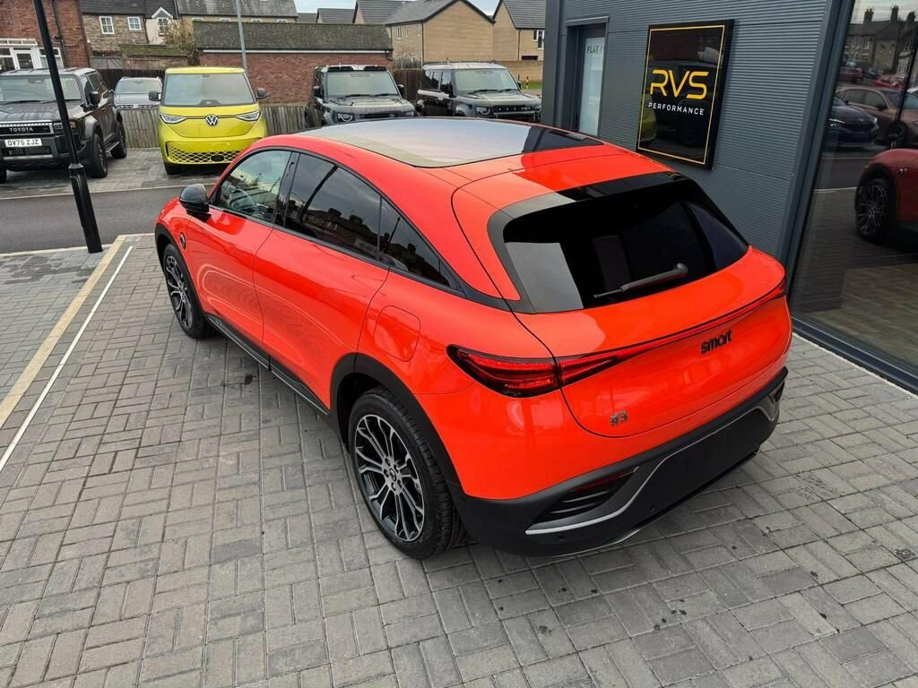 This 2024 Smart #3 Premium is a standout electric vehicle, having been cherished by just one owner and boasting a remarkably low mileage of only 8000 miles for its age. As an electric model, it offers a substantial 66 kWh battery capacity, providing a maximum range of 283 miles. This Premium trim also comes equipped with desirable features such as driver and passenger seat heating, automatic two zone climate control for personalised comfort, and advanced blind spot detection to enhance safety. Navigating tight spaces is made effortless with front and rear parking sensors, totalling 12, and you can seamlessly integrate your smartphone with Apple CarPlay and Android Auto. Experience exhilarating performance with this Smart #3, capable of accelerating from 0 to 62mph in a swift 5.8 seconds, a pace that sets it apart from many other vehicles in its class. Furthermore, its electric powertrain allows for rapid recharging, with the ability to reach 80% charge from empty in just 34 minutes at a public charging station. These highlights demonstrate the vehicle's superior capabilities and thoughtful design, offering a compelling blend of efficiency, technology, and driving enjoyment. 10in Head Up Display, 12.8in Central Display Touchscreen, 12V Port - Front, 12V Port - Trunk, 19in Alloy Wheels - Torque, 2 Key Fobs, 360 Degree Camera, 40-60 Split Rear Seat, 6 Way Powered Front Seats with Lumbar Su, 9.2in HD Instrument Cluster, ABS - Anti Lock Braking System, Active Grille Shutters - AGS, Adaptive Cruise Control with Stop and Go, Adaptive High Beam Assist, Air Filter Plus, Air Quality System (AQS), Airbag - Driver and Passenger, Airbag - Side Airbags for Driver and Fro, Ambient Lighting Plus, Anti Theft Immobiliser, Anti Theft Internal Monitor, Anti Theft Steering Wheel Lock, Anti-Roll System, Anti-Theft Alarm System, Apple CarPlay and Android Auto, Autohold, Automatic 2 Z