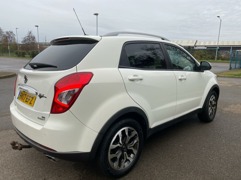 6 months warranty parts and labour nationwide and can be extended up to 24 months . Video call is available, Fresh Mot and serviced on sale. full valet to a high standard. driveway insurance optional, all major cards accepted, Delivery available all over the UK, viewing is by appointments only. HPI CLEAR .BUY WITH FULL CONFIDENCE AND FEEL FREE TO ASK ANY QUESTIONS ABOUT CARS. we take all sorts of cars and vans in part exchange including non runners. for more variety of stock please visit our This 2017 SsangYong Korando D ELX offers a robust and versatile driving experience, perfect for those seeking a reliable vehicle. Powered by a 2.2 litre Euro 6 diesel engine and featuring a capable Four Wheel Drive system, this ELX trim model is built to handle various conditions. Inside, you'll find a host of comfort and convenience features, including heated front and rear seats, automatic air conditioning for a pleasant cabin temperature, and Bluetooth connectivity for seamless audio and calls. The inclusion of a rear view camera further enhances parking ease and safety.The SsangYong Korando D ELX stands out with its practical design, notably offering generous boot space for all your luggage and shopping needs. The combination of heated seats, both front and rear, and climate control ensures comfort for all passengers, regardless of the weather outside. These features, alongside the advanced rear view camera and Bluetooth system, demonstrate a thoughtful approach to driver and passenger convenience, setting this Korando apart from others in its class. in alloy wheels - diamond cut, 6 speakers, abs - anti-lock braking system, arp - active rollover protection, airbags - curtain, airbags - driver, airbags - front passenger, airbags - passengers off switch, alarm and immobiliser, automatic air conditioning, automatic dipping rear view mirror, bluetooth connection, central locking - remote keyless entry, cruise control, daytime running lights - led, door handles interior - chrome, door mirrors - automatic power folding, door mirrors - puddle lights, drivers seat lumbar support, ebd - electronic brake distribution, eps - electric power steering, esp - electronic stability programme, electric windows - front and rear, exhaust - chrome twin pipes, front fog lights, front grille - piano black with bright insert, gear knob - leather, hsa - hill start assist, headlights - levelling system, heated windscreen, isofix child seat anchorage, kick plates - front stainless steel, luggage cover and net, parking sensors - rear, privacy glass - rear doors and tailgate, rds radio, rear spoiler with led stop lamp, rear view camera, roof mounted antenna, roof rails, satellite navigation - tomtom, seatbelt pre-tensioners, seats - 60-40 split folding rear, seats - drivers electric adjustment, seats - drivers height adjustment, seats - heated front, seats - heated rear, side airbags, spare wheel - space saver, steering wheel - audio controls, steering wheel - leather, steering wheel - reach and rake adjustment, touch screen 7in, traction control, trip computer, tyre pressure monitoring system, ipod connection, leather - black, spare wheel - 18in alloy