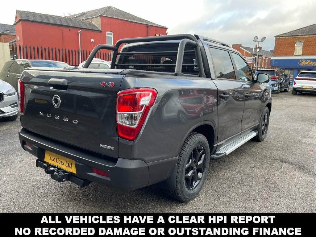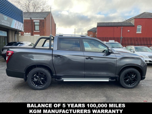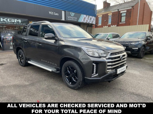 CLAIM YOUR VAT BACK IF YOU ARE VAT REGISTERED ON OUR VERY OWN PRE REGISTERED MUSSO PICK UP, WITH OVER £2700 OF FACTORY FITTED ACCESSORIES. BALANCE OF 5 YEAR 100,000 KGM FACTORY WARRANTY. SAVE A FORTUNE ON THE NEW RRP. This 2025 KGM Musso Saracen presents an exceptional opportunity with an incredibly low mileage of just 500 miles, having had only one owner from new. This four wheel drive, 2.2 litre diesel model, compliant with Euro 6 emissions standards, offers a refined driving experience. Inside, you'll find comfortable heated rear seats complementing the already heated front seats, ensuring comfort for all passengers. For enhanced safety and convenience, it includes blind spot detection with assistance, a rear parking camera, and automatic dual-zone air conditioning. Stay connected on the go with seamless Bluetooth telephone connectivity. The KGM Musso Saracen stands out with its comprehensive suite of features designed to elevate your journeys. The inclusion of blind spot detection and a rear parking camera provides added confidence when navigating busy roads or parking. The automatic dual-zone air conditioning allows everyone to set their preferred temperature, making every trip more pleasant. These thoughtful additions, combined with the vehicle's minimal use and single ownership, demonstrate a level of care and specification that sets this Musso apart from others you might consider. 12.3in HD Screen, 12.3in Supervision Cluster with Colour T, 18in Alloy Wheels - Black - 255/60 Tyres, 6 Speakers, 6-Way Power-Adjustable Front Passenger S, 8-Way Power-Adjustable Drivers Seat with, A-Pillar Grab Handles, ABS with Electronic Brakeforce Distribut, Air Vents for Rear Seat Passengers, Anti-Theft Alarm with Immobiliser, Apple CarPlay and Google Android Auto, Automatic De-Misting System, Automatic Dual-Zone Air Conditioning, Automatic Headlight Control and Rain-Sen, Black and Silver Roof Rails, Black and Silver Side Steps, Black Finish Door Mirrors - Belt Line an, Blind Spot Detection, Bluetooth Telephone Connectivity, Brake Assist System - BAS, Childproof Safety Locks, Chrome Lad
