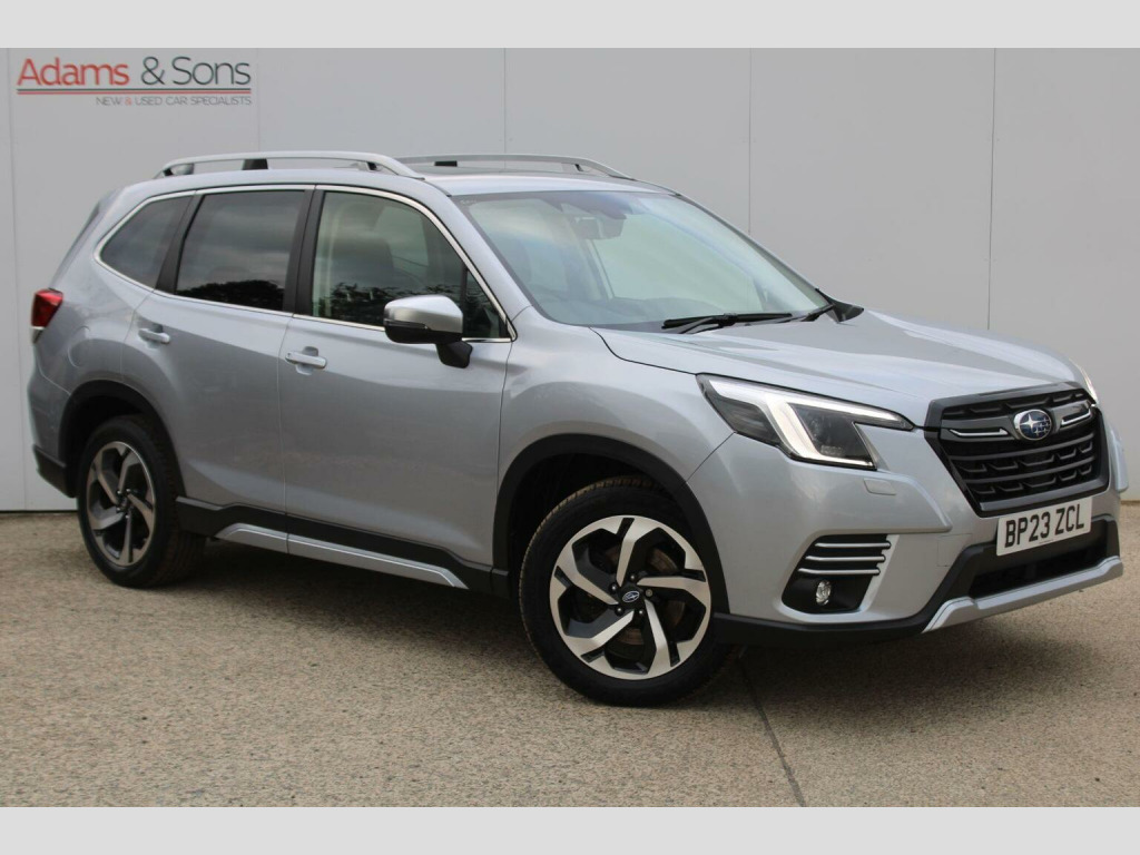 Adams & Sons are pleased to present this 2023 (23 plate registered) Subaru Forester 2.0 petrol i e-Boxer XE Premium is a superb example finished in desirable Ice Silver metallic against black heated leather interior. Having had only one owner since new matched to three documented services this Forester has been clearly well cared for. It boasts a responsive 2.0 litre petrol hybrid engine, paired with Subarus renowned Four Wheel Drive system for confident all weather capability matched to world famous Subaru dependability. This top spec Premium model features some desirable equipment including; electric sunroof, a practical reversing camera, and the added safety of Subaru Rear Vehicle Detection, which acts as blind spot assistance, enhanced by heated rear seats and a heated steering wheel for those colder journeys. Satellite navigation is also included, apple carplay with Andriod auto, keyless entry, adaptive cruise control and diamond turned alloy wheels. The generous boot space offers ample room for luggage or shopping, making it a versatile choice for families or those with active lifestyles. These features, combined with its single owner provenance, set this Forester apart, offering a refined and capable driving experience. Low rate HP/PCP funding plans and extended warranties available upon request. Here at Adams and sons we do not charge any dealer administration fees and pride ourselves on paramount customer service. All our cars are price checked daily to ensure you get the right car at the right price- Established business since 1932. Adams & Sons make every effort to ensure vehicle details on this listing are correct. However, the vehicle specifications can sometimes differ from that shown. Please satisfy yourself that a vehicle has a specific feature that is important to you before purchasing. Our staff will be happy to assist you.