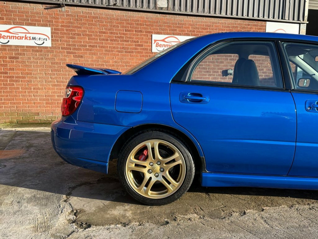 This stunning 2005 (04.03.2005) Subaru Impreza 2.0 WRX Saloon is finished in the iconic World Rally Blue with freshly refurbished gold alloy wheels, and presents beautifully throughout. With just 2 owners from new, this is a rare, well-preserved example of a much-loved performance icon. Originally supplied by Adam Brothers Subaru in Bucks, the car was fitted with the Pro Performance Pack as a factory option. The first keeper owned the car for an incredible 17 years, meticulously maintaining it before part-exchanging it at a BMW main dealer. The car was in such outstanding condition that the BMW dealer retailed it directly — where it was sold to its second owner at 64,732 miles. We purchased the car directly from the second owner, who added just 6,600 miles over 3 years. It now shows only 71,300 miles, supported by a full service history with 20 stamps — either from Subaru main dealers or respected Japanese specialists. It's been serviced every year, regardless of mileage, and comes complete with two keys and all original book packs. Mechanically, the car is stock apart from the Pro Pack, and we've been advised it produces around 265 BHP. It drives beautifully — tight, smooth, and responsive, with no knocks, bangs, or signs of age on the road. The drive back from Birmingham to Hull was a joy. The bodywork is exceptional for its age, with no major marks or fading, and the interior is just as impressive — a credit to both former owners. This Adjustable Steering Column/Wheel, Air Bag Driver, Air Bag Passenger, Air Bag Side, Air-Conditioning, Alarm, Alloy Wheels (17in), Anti-Lock Brakes, Body Coloured Bumpers, Central Door Locking, Centre Rear Seat Belt, Deadlocks, Electric Windows (Front/Rear), Front Fog Lights, Head Restraints, Immobiliser, In Car Entertainment (Radio/Cassette/CD), Mica Paint, Mirrors External, Power-Assisted Steering, Seat Height Adjustment, Side Protection Mouldings, Spare Wheel (Space Saver), Speakers, Upholstery Cloth