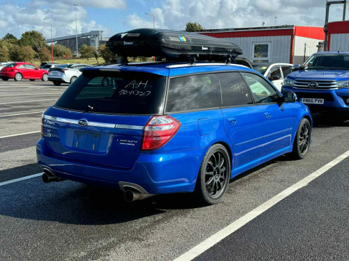 Just arrived from Japan, awaiting prep/UK registration , , June 2006 Subaru Legacy STi BP5 2.0 GT Spec B Tuned By STI, , Factory 2.0L Twin scroll turbocharged engine (280 bhp stock) with 5 speed auto box and choice of flappy paddle shift or manual trip-tonic shift, , Genuine 139,000kms (86,000 miles), ULEZ compliant, Factory facelift model, Rare factory blue colour, , Tuned by STI edition built in limited numbers for the Japanese market. Only 600 were ever produced which were a mixture of saloon and estate body styles, , Differences with this model over stock include:, , - Bilstein STi tuned suspension including pillow ball rear links, - STi front and rear spoilers, - Brembo brake package with braided hoses, - Exclusive STi Stitched logo Leather/Alcantara seating with red stitching, - STi electro-luminescent gauge pack with 260K speedometer, - STi badging, , Modifications include:, , Aftermarket black insert front headlights, Genuine Works 18 alloy wheels, HKS Exhaust system, Roof rails and roof box, , Other factory spec includes:, , 5-seater with large boot space (Rear seats fold flat for extra space), Factory privacy glass, Factory Wind deflectors, Factory HIDs, Electric drivers front seat, All wheel drive with option of 3 different driving modes SI drive, Full genuine 5 piece mat set, Climate control, A/C, Central locking, electric folding mirrors etc, On arrival from Japan vehicle will undergo full sales preparation including the following:, , - Full mechanical and overall inspection, - Full service completed (if required), - Full interior and exterior detail/valet, - Rear foglight installation and 12 months MOT, - Full UK registration, , On completion of prep over 60 detailed pictures and walk around video will be provided, , Price includes all of the above, alternatively can be sold unregistered at a reduced price (relevant paperwork for registration will be included and all Nova/duties etc will be paid for), , Delivery service available throughout the UK, please provide us your postcode for an instant quote (full payment required beforehand), , Please contact us with any questions or enquiries