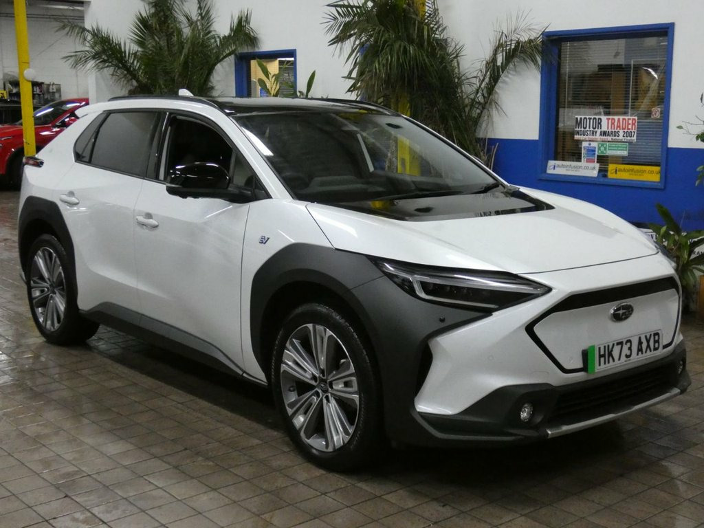 This 2023 Subaru Solterra Touring 4x4 is a superb example, having had only one owner since new service history 1 service at 8k miles, new service will be carried out at point of sale, Subaru warranty till Nov 2026. This electric vehicle boasts a Four Wheel Drive system and a 71 kWh battery, offering a maximum range of 257 miles on a full charge. Recharging at home with a 7kW charger takes approximately 9 hours, while rapid public charging can take the battery from empty to 80% in just 25 minutes. Inside, you'll find a host of convenient features designed to enhance your driving experience. Leather interior with heated seats and steering wheel. Enjoy wireless phone charging and wireless Apple CarPlay, keeping you connected effortlessly. The Dual Zone Automatic Air Conditioning system with an Anti Dust Filter ensures a comfortable cabin environment for all occupants. Subaru Safety Sense, including Blind Spot Assistance and Adaptive Cruise Control, adds an extra layer of security. Furthermore, the Fixed Panoramic Roof with an Electric Sunblind brings an open and airy feel to the interior, setting this Solterra apart from others. Autoinfusion Ltd, is a family run business with over 30 years motoring experience. On our website you will find our vehicles are generally advertised with upto 100 exterior and interior pictures, 360 interior images, exterior panoramic views and web video showcasing our stock. As an AA approved garage, prior to sale, the majority of our vehicles a 12.3in Multifunction Colour Touchscreen , 20in Alloy Wheels, 60-40 Split Folding Rear Seats, 7in Digital Instrument Cluster, ABS - Anti-lock Braking System, Adaptive High Beam System - AHS - 12x In, Airbags - Central SRS - Between Driver a, Airbags - Curtain Side SRS, Airbags - Front SRS, Airbags - Front Side SRS - Driver and Fr, Auto On-Off Headlights, Auto Vehicle Hold, Bluetooth, Charging Cable - Type 2 to Type 2, Charging Cable - Type 2 to UK Domestic P, DAB - Digital Radio, Daytime Running Lights - LED, Digital Rear View Camera with Washer, Door Mirrors - Memory Function, Driver Monitoring System, Driver Seat - Electric, Driving Modes - Eco - Normal - Power, Dual Zone Automatic Air Cond
