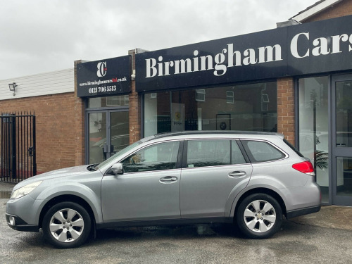 Subaru Outback 2.0D SE 4WD Euro 5 5dr (SNavPlus), | 2010 (10) | 82,000 miles | Diesel | Manual | Grey | 5 Owners, Heres a tidy example of the ever-reliable Subaru Outback 2.0D SE 4WD, the perfect mix of comfort, practicality, and all-weather ability. Finished in metallic grey, this car looks great for its age and drives spot-on. It comes with a strong service history, showing its been well cared for, with services recorded at 11k, 21k, 35k, 43k, 48k, 52k, 60k, 63k, and 72k miles. The cars clearly been looked after and is nice and clean inside and out — a genuine credit to its previous owners. The 2.0 diesel engine delivers plenty of torque while keeping running costs sensible, and Subarus legendary Symmetrical All-Wheel Drive gives you confidence in all conditions. Ideal for long trips, towing, or just getting around whatever the weather throws at you. Highlights:, Full-Time 4WD, Satellite Navigation (SNavPlus), Cruise Control, Alloy Wheels, Heated Seats, Dual-Zone Climate Control, Electric Windows & Mirrors, A great all-rounder and a real bargain for the money. Secure this car for just £100 (telephone holding deposit, subject to terms). Visit www.birminghamcarsltd.co.uk, for more great-value cars and 4x4s.