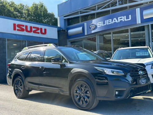 This Stunning Outback Field is Finished in Crystal Black with a Synthetic Leather Interior. It is brand new in stock. The Outback is fantastic as it comes in just under the £40k tax rise so it qualifies for Low Road Tax. Crystal Black, Water-repellent Synthetic Leather - Grey, 11.6in Tablet-like Infotainment Screen, 12v DC Power Socket - Row 1, 12v DC Socket in Boot Space, 18in Alloy Wheels - Dark Metallic, 60-40 Split Folding Rear Seats, 8-Way Power Adjustable Drivers Seat with, ABS - Anti-lock Braking System, Active Torque Vectoring, Adaptive Driving Beam, Air Vents - Rear, Airbags - Curtain SRS, Airbags - Front SRS, Airbags - Front Side SRS - Driver and Fr, Aluminium Pedals, Analogue Reversing Camera with Washer Je, Android Auto - Wireless, Apple CarPlay - Wireless, Auto Vehicle Hold, Auto-Dimming Rear View Mirror, Automatic Headlights, Auxiliary Audio Input Jack, BAS - Brake Assist System, Black Colour P