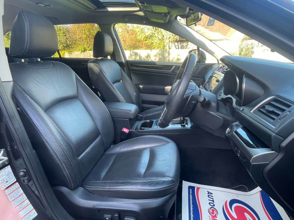 THIS STUNNING TWO OWNER SUBARU OUTBACK 2.5 SE PREMIUM LINEARTRONIC 4WD EURO 6 IS PRESENTED IN OUTSTANDING CONDITION THROUGHOUT AND IS A REALLY WELL CARED FOR AND MAINTAINED EXAMPLE WITH A FULLY DOCUMENTED SUBARU SERVICE HISTORY....Looks great in gleaming metallic grey with unmarked alloys and a contrasting full black leather interior....We are RAC dealers therefore this car comes with 6 months RAC warranty and 12 months RAC membership free of charge....The Subaru Outback is well known for being safe and reliable and of course very well built. This car drives as new and is great on fuel and is cheap to tax and insure. Comes with all handbooks and paperwork and 2 sets of keys. Every car is carefully selected, valeted and PDI checked. Evening viewings are welcomed as all of our cars can be viewed in the dry with plenty of lighting. Part exchange a pleasure, v power socket - centre console, 18in alloy wheels - aluminium, 7in vga centre display for satellite navigation, active torque vectoring, adaptive cruise control, airbags - curtains, airbags - driver srs, airbags - front side srs, airbags - knee srs, airbags - passenger srs, airbags - rear curtain srs, anti dust filter, automatic on-off headlights, auxiliary audio input socket in centre console, bas - brake assist system, bluetooth audio, bluetooth handsfree phone compatibility, box sub-trunk - under cargo storage, brake override, cargo hooks x4, centre console box, centre tray, climate control - dual zone, daytime running lights, defrosters - front and side, door mirrors - power folding and heated with built in led turn signal, door pockets with bottle holders, driver and passenger illuminated vanity mirrors with lid, driver and passenger seatback pockets, eco gauge, electric rear window defogger with timer, electro-luminescent gauges with 5in full colour display, electronic parking brake, eyesight, front cup holders, front fog lights, front seatbelts with pretensioners and load limiters, headlights - auto-leveliser, heated front seats, height adjustable front seatbelts, hill descent control, hill start assist, isofix adapted child seat anchors with tether anchors, interior fuel lid lock release, keyless access and push button start system, led headlights, lane sway and departure warning, luggage compartment light, luggage hooks x2, lumbar support - driver, map lights, one-touch lane changer, overhead cascade lighting, paddle shift, pop-up headlight washers, power sliding tilt-adjustable glass sunroof, power steering - electric, power tailgate, pre-collision braking system, pre-collision throttle management, push button start system, radio with rds function, rear child proof door locks, rear cup holders x2 in rear centre armrest, rear privacy glass, rear seat centre armrest, rear ventilation system, rear vision camera system, retractable luggage cover, roof end spoiler, roof rails, si-drive - subaru intelligent drive, safety pedal system, satellite navigation - sd card type, seat - 8-way power adjustable - passenger, seat - 8-way power adjustable driver, seatbelt indicator, seats - 60-40 split fold rear, seats - drivers memory, seats - front electric height adjustment, seats - rear one touch folding reclining, side sill covers - stainless, single cd tuner with rds - mp3 and wma, speakers x6, steering wheel - leather, steering wheel - tilt and telescopic adjustment, steering wheel mounted audio control switches, subaru vehicle dynamics control with on/off switch, thatcham category 1 perimeter alarm and immobiliser, traction control system, tyre pressure monitoring system, tyre repair kit, usb-ipod socket and control, uv protection glass - windscreen-front and rear side windows, voice recognition system, welcome lighting - side lights - tail lights - license plate, windows - power with pinch protection on drivers side, windscreen wipers - automatic rain sensing, x-mode
