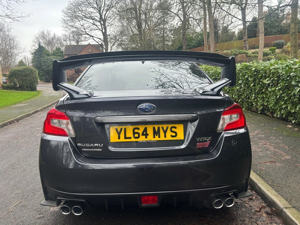 With only two owners and a full service history, this 2014 Subaru WRX STI Type UK presents a compelling proposition for discerning drivers. This four wheel drive, 2.5 litre petrol model boasts a Euro 6 emission class and has covered a low mileage of just 52,440 miles. It comes with a 12 month MOT provided on purchase and a 3 month warranty for your peace of mind. Notable features include keyless access with push button start, Bluetooth handsfree phone compatibility, LED headlights, and a dual zone automatic air conditioning system with an anti dust filter. The Subaru WRX STI Type UK stands out with its impressive acceleration, achieving 0-62mph in a swift 5.2 seconds, a performance that places it ahead of many comparable vehicles. The last service was completed at 49,986 miles on 1st November 2025, further underscoring its excellent provenance. This combination of low ownership, comprehensive servicing, and dynamic performance makes this WRX STI a truly exceptional example. 12V Power Outlet in Instrument Panel and Centre Console Box,18in Alloy Wheels - Aluminium - Dark Gunmetallic,6-Way Manually Adjustable Drivers Seat,ABS - Anti-lock Braking System,Active Torque Vectoring,Airbags - Driver SRS,Airbags - Front Side SRS,Airbags - Front and Rear Curtain SRS,Airbags - Knee SRS,Airbags - Passenger SRS,Aluminium Pedals,Anti Dust Filter,Bluetooth Handsfree Phone Compatibility,Brake Override,CD-Radio,Carbon Dash and Centre Console Trim with Red Accents,Centre Console Box,Centre Tray,Cruise Control,DCCD - Multi-Mode Drivers Control Centre Differential,Daytime Running Lights,Defrosters - Front and Side,Door Mirrors - Power Folding and Heated with Built in LED Turn Signal,Door Pockets with Bottle Holders,Driver and Passenger Seatback Pockets,Dual Zone Automatic Air Conditoning System with Anti Dust Filter,EBA - Emergency Brake Assist,EBD - Electronic Brake-force Distribution,Electric Boot Opener,Electric Rear Window Defogger with Timer,Electro-luminescent Gauges with 3.5in Full Colour Display,Front Cup Holders in the Centre Console x2,Front Fog Lights,Front Map Reading Lights,Headlights - Auto-Leveliser,Heater Ducts for Rear Passengers,High-grade Type Multi Function Display with Boost Pressure Meter,Hill Start Assist,ISOFIX Child Seat Restraint Mechanism in Rear x2,Interior Fuel Lid Lock Release,Keyless Access and Push Button Start System,LED Headlights,Leather Wrapped Gearshift Knob,One-touch Lane Changer,Pop-Up Headlight Washers,Power Steering - Quick Ratio,Rear Child Proof Door Locks,Rear Diffuser,Rear Privacy Glass,Rear Seat Headrests for 3 Seating Positions,Rear Spoiler,Remote Control Key System,SI-Drive - Subaru Intelligent Drive,Safety Pedal System,Satellite Security Tracker,Seatbelt Indicator,Seats - 60-40 Split Fold Rear,Shark-Fin Antenna,Side Door Reinforcement Beams - Front and Rear,Side Sill Covers - Stainless,Side Under Spoilers,Space Saver Spare Wheel,Speakers x6,Sports Front Seats,Steering Column Support Beam,Steering Wheel - Dippled Leather Wrapped D-shaped,Steering Wheel - Red Stitching,Steering Wheel - Tilt and Telescopic Adjustment,Steering Wheel Mounted Audio Control Switches,Tail Lights - LED,Thatcham Category 1 Perimeter Alarm and Immobiliser,Trip Computer,Twin Exhaust,Tyre Pressure Monitoring System with OFF Switch,USB and Auxilliary Audio Input Jack in the Centre Console Box,VDC - Multi-mode Vehicle Dynamics Control System,Vanity Mirrors with Covers - Driver and Front Passenger,Whiplash Reducing Front Seats,Windows - Electric Front and Rear,Windscreen Wiper De-Icer