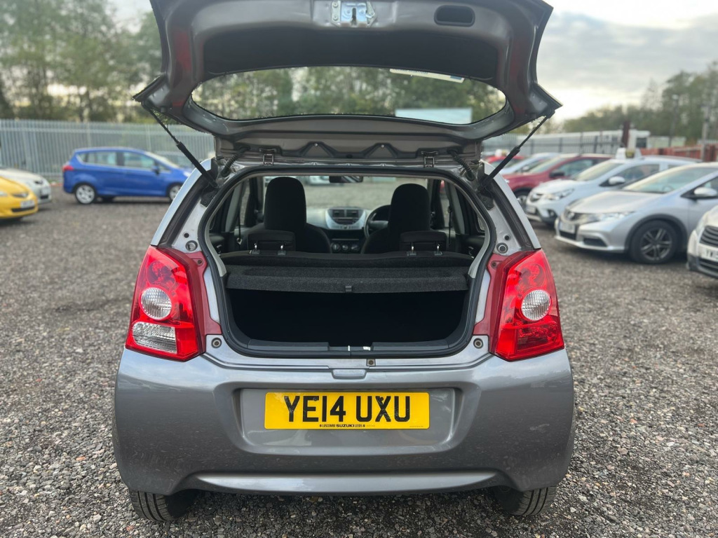 Discover this 2014 Suzuki Alto SZ, a compact car that offers exceptional value and efficiency. Powered by a responsive 1.0 litre petrol engine, this model is designed for economical driving. Its SZ trim level ensures you have a well equipped and comfortable experience.This Suzuki Alto SZ stands out with its impressive fuel economy, achieving a remarkable 66 miles per gallon. Furthermore, it benefits from a low insurance group, making it an affordable choice for many drivers. Its low CO2 emissions also contribute to its appeal, indicating a more environmentally conscious performance compared to similar vehicles. v accessory socket, 14in steel wheels with full wheel caps, 2 x front cup holders, abs - anti-lock braking system, airbag - driver, airbag - front passenger, bottle holders - 2x rear, brake assist function, central door locking, centre cabin light, child seat tether anchorages x 2, childproof rear door locks, digital clock, door ajar warning light, drivers seatbelt warning light and alarm, ebd - electronic brakeforce distribution, electric front windows, foot protecting brake and clutch pedals, green tinted glass, halogen multi-reflector headlights with levelling, high mounted brake light, isofix child seat anchorages, immobiliser, internal tailgate opener, lights-on and key-in reminder, low fuel warning light, luggage area cover, mp3-wma compatible cd tuner, manually adjustable door mirrors, passenger side storage pocket, power steering, rear window demister, remote fuel lid opener, roof mounted antenna, silver coloured inside door opener, silver coloured side louvre bezels, single folding rear seat with 60:40 split, single speed rear wiper, speakers x2, steering wheel - 3 spoke, steering wheel - tilt-adjustable, storage pockets in front doors, ticket holder - on drivers sun visor, two speed front wiper with intermittent single speed rear wiper, vanity mirror - on drivers sun visor