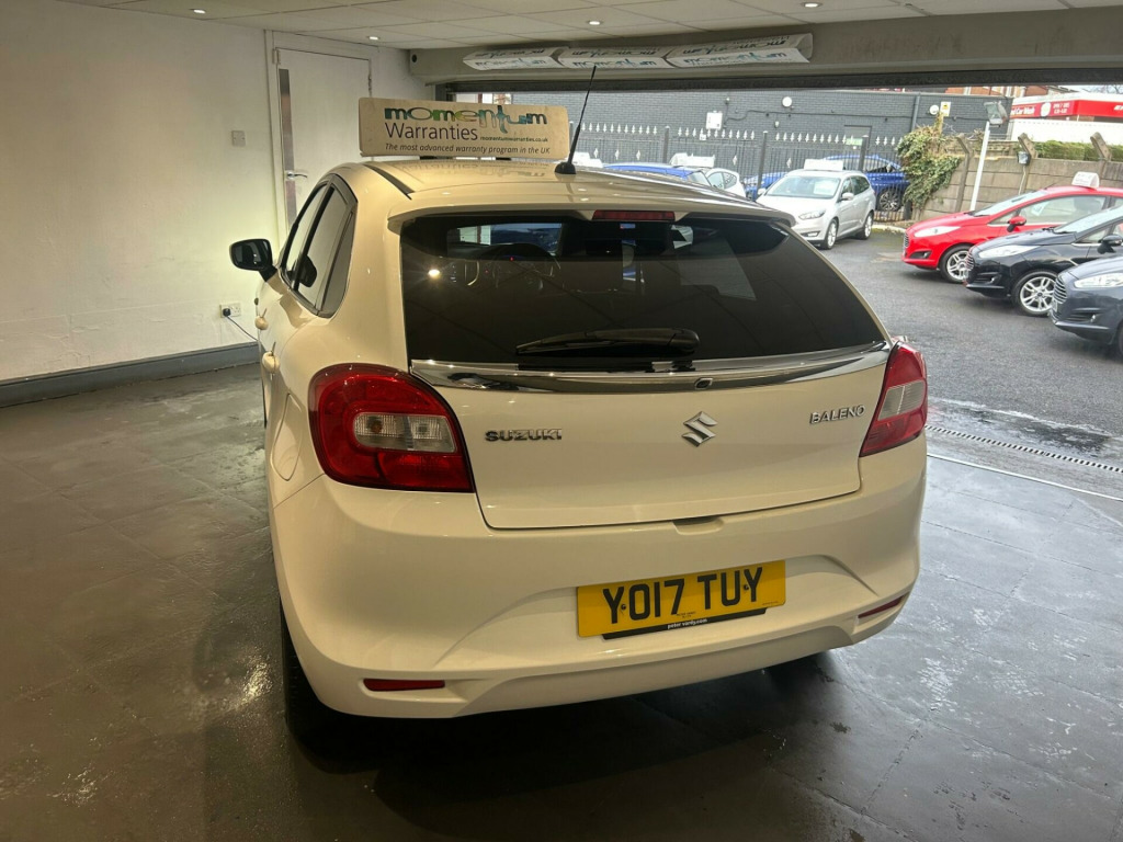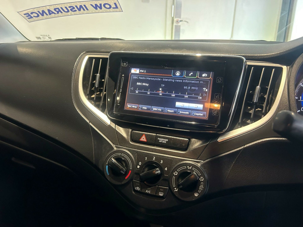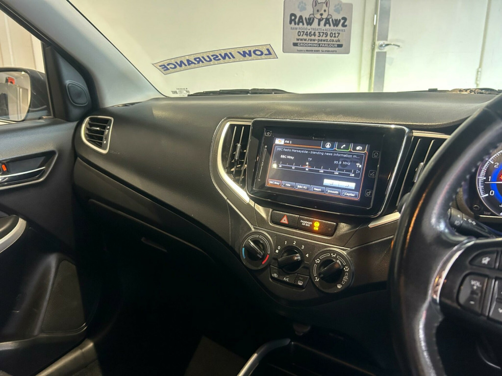 FINANCE AVAILABLE.. 2 KEYS.. BLUETOOTH.. 5 DOOR.. NEW CLUTCH.. SERVICE HISTORY.. PART EXCHANGE WELCOME.. 0151 245 9165 This 2017 Suzuki Baleno SZ-T presents a superb ownership history, having been cared for by only two owners and boasting a clear vehicle history check. Under the bonnet, you'll find an efficient 1.0 litre petrol engine that meets Euro 6 emissions standards. This SZ-T model comes equipped with a range of useful features, including automatic headlamps with HID projector headlights for enhanced visibility, and integrated Bluetooth for seamless phone connectivity. Parking is made easier with a rear parking camera, and you can stay comfortable with manual air conditioning.The Suzuki Baleno SZ-T stands out with its impressive fuel economy, achieving an excellent 64 miles per gallon, which indicates it is more economical than many other vehicles in its class. Furthermore, its low CO2 emissions highlight its environmental consideration. Practicality is also a strong point, with generous boot space making it ideal for shopping trips or luggage.. 12V Accessory Socket, 16in Alloy Wheels, 2 x Front Cup Holders, 4 Speakers and 2 Tweeters, ABS - Anti-Lock Braking System with EBD - Electronic Brakeforce Distribution Function, Assist Grips, Automatic Headlamps, Black Coloured A and B Pillars, Bluetooth Integrated into Audio Unit, Body Coloured Exterior Door Handles, Bottle Holders, Brake Assist Function, Cabin Lights, Centre Console Box, Centre-Lower Box, Child Seat Tether Anchorages, Childproof Rear Door Locks, Chrome Interior Door Handles, Cup Holder - Rear, DAB Digital Radio, Daytime Running Lights - LED, Deadlocks, Digital Clock, Drivers Footrest, ESP - Electronic Stability Program, Electric Front Windows, Electrically Adjustable and Heated Door Mirrors, Emergency Flat Tyre Repair Kit, Fabric Door Trim Insert Front, Freewheeling Key Cylinders, Front 3-Point ELR Seatbelts with Pretensioners - Force Limiters and Shoulder Height Adjusters, Front Fog Lights, Front Grille - Black with Chrome Accent, Front Passenger Airbag Deactivation System, Front Sun Visors with Vanity Mirrors and Ticket Holders, Fuel Consumption and Range Display, Gear Shift Indicator, Green Tinted Windows, Guide Me Home Light Function, HID Projector Headlights, High Mounted Brake Light, ISOFIX Child Seat Anchorages, Immobiliser, Luggage Area Board, Luggage Area Cover, Luggage Area Light, Manual Air Conditioning, Outside Temperature Display, Pollen Filter, Power Steering, Rear 3-Point ELR Seatbelts with Pretensioners - Force Limiters x2 and 3-Point ELR Seatbelt for Centre Seat, Rear Combination Lights - Standard, Rear Parking Camera, Rear Privacy Glass, Remote Central Door Locking, Remote Fuel Lid Opener, Roof-End Spoiler, SRS Curtain Airbags, SRS Front Dual Airbags, SRS Side Airbags, Satellite Navigation, Shift Knob Black with Chrome-Silver Accent, Smartphone Linkage Display Audio, Steering Wheel - 3-Spoke Leather Covered, Steering Wheel - Tilt-Adjustable, Storage Pockets in Front Doors, TPMS - Tyre Pressure Monitoring System, Tachometer, Tailgate Trim - Chromed, Traction Control, USB and AUX Connectors.