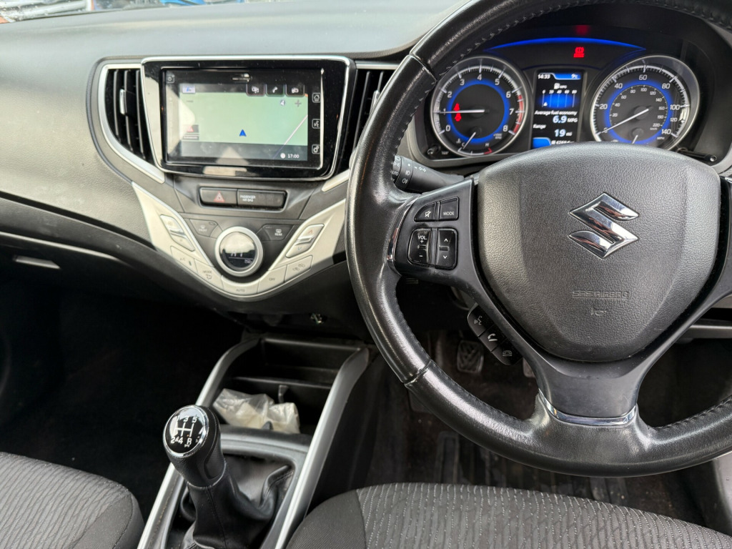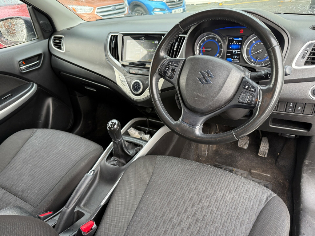This 2017 Suzuki Baleno 1.0 Boosterjet SZ5 Hatchback with 103000 miles on the clock is a reliable and fuel-efficient vehicle perfect for city driving. The hatchback has 5 doors, 5 seats, and runs on petrol, making it ULEZ compliant and a great choice for urban commutes. Its MOT is valid until 16/06/2026, giving you peace of mind. Equipped with a 4.2in Colour LCD Display, Bluetooth Integrated into Audio Unit, and 4 Speakers and 2 Tweeters, this car provides a comfortable and connected driving experience. Powered by a Euro 6 (111 ps) engine, this Suzuki Baleno is practical, spacious, and stylish, making it an ideal choice for anyone in the market for a reliable hatchback. v accessory socket, 4 speakers and 2 tweeters, 4.2in colour lcd display, bluetooth integrated into audio unit, colour trip display, dab digital radio, satellite navigation, smartphone linkage display audio, usb and aux connectors, 16in alloy wheels, chrome beltline mouldings, chrome exterior door handles, door mirrors with built-in turn signal lamps, electric front windows, electric rear windows, electrically adjustable and heated door mirrors, emergency flat tyre repair kit, front grille - black with chrome accent, green tinted windows, rear combination lights - high, rear privacy glass, roof-end spoiler, tailgate trim - chromed, 2 x front cup holders, assist grips, automatic air conditioning, black coloured a and b pillars, bottle holders, cabin lights, centre console box with armrest, centre-lower box, chrome interior door handles, drivers footrest, fabric door trim insert front, fabric door trim insert rear, front sun visors with vanity mirrors and ticket holders, luggage area board, luggage area cover, luggage area light, pollen filter, remote fuel lid opener, shift knob black with chrome-silver accent, steering wheel - 3-spoke leather covered, storage pockets in front doors, tilt and telescopic adjustable steering wheel, abs - anti-lock braking system with ebd - electronic brakeforce distribution function, brake assist function, child seat tether anchorages, childproof rear door locks, deadlocks, esp - electronic stability program, freewheeling key cylinders, front 3-point elr seatbelts with pretensioners - force limiters and shoulder height adjusters, front passenger airbag deactivation system, isofix child seat anchorages, immobiliser, keyless entry with engine start button, radar brake support, rear 3-point elr seatbelts with pretensioners - force limiters x2 and 3-point elr seatbelt for centre seat, srs curtain airbags, srs front dual airbags, srs side airbags, traction control, adaptive cruise control, digital clock, fuel consumption and range display, gear shift indicator, outside temperature display, power steering, rear parking camera, tpms - tyre pressure monitoring system, tachometer, automatic headlamps, daytime running lights - led, front fog lights, guide me home light function, hid projector headlights, high mounted brake light, led rear lights